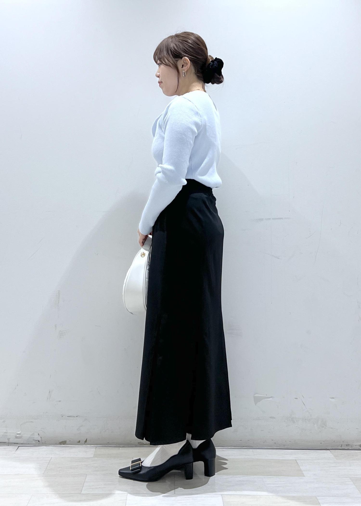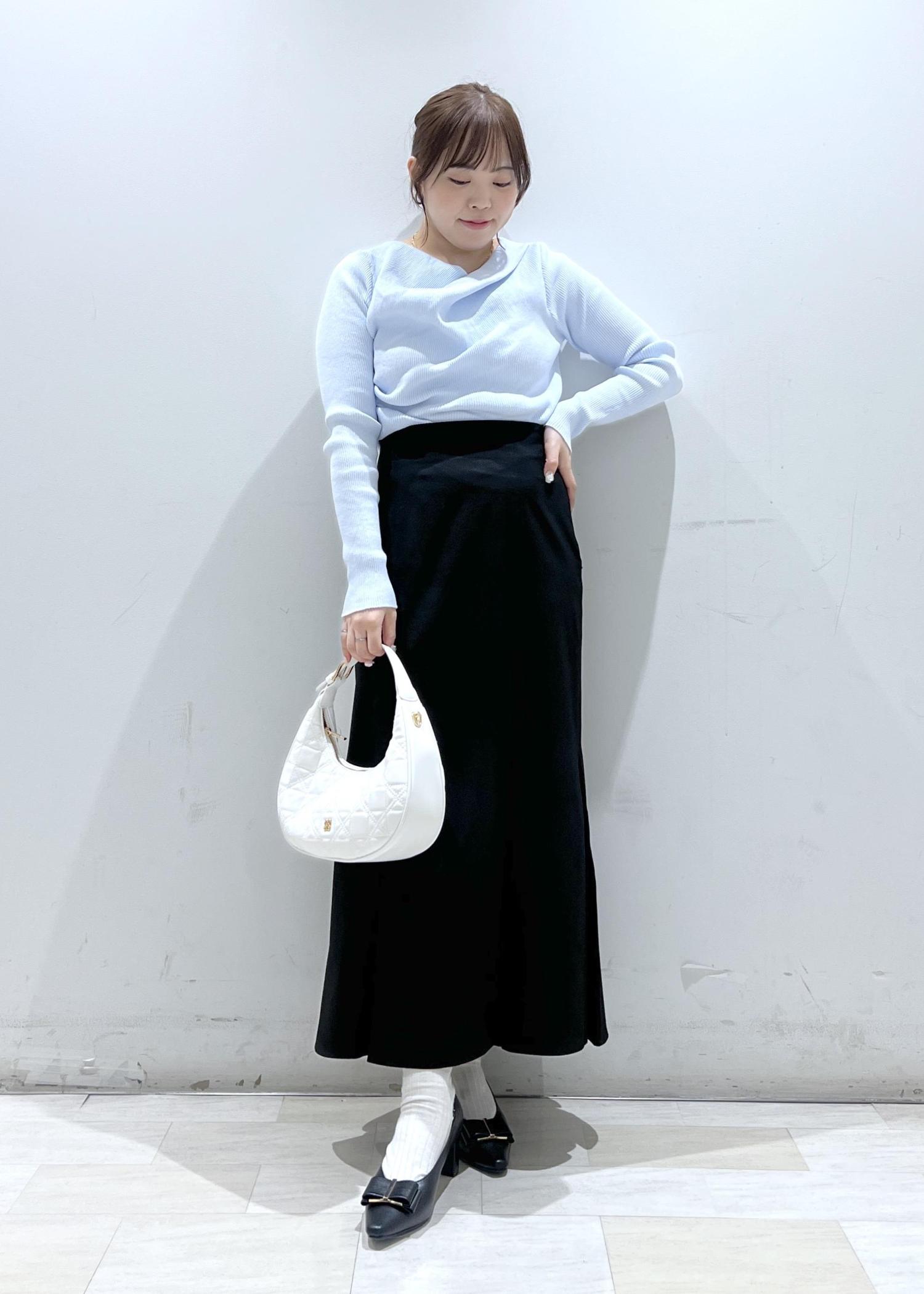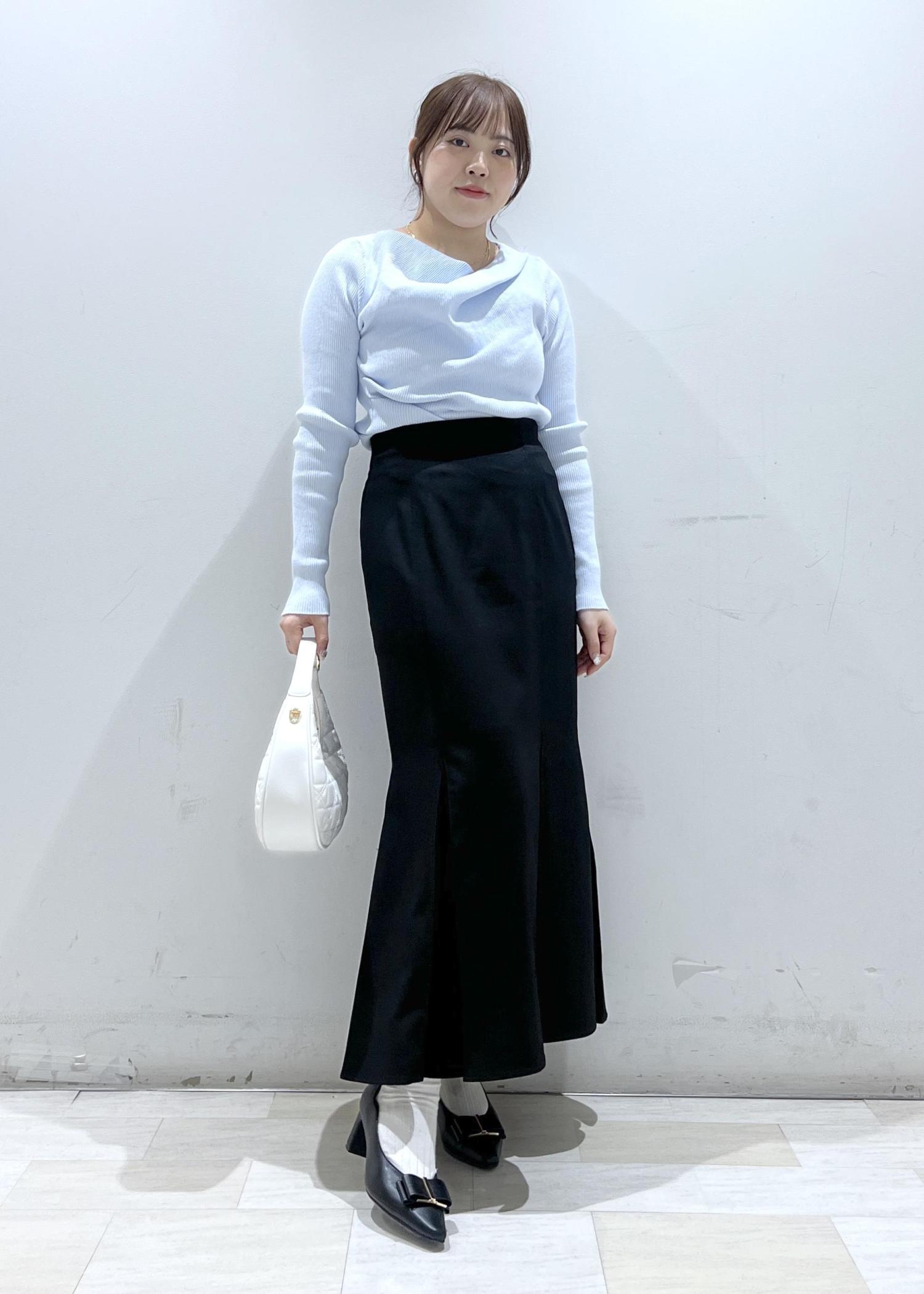 さらっとしたスプリングニットになっておりボディラインを拾いすぎず着やすい素材感です◯