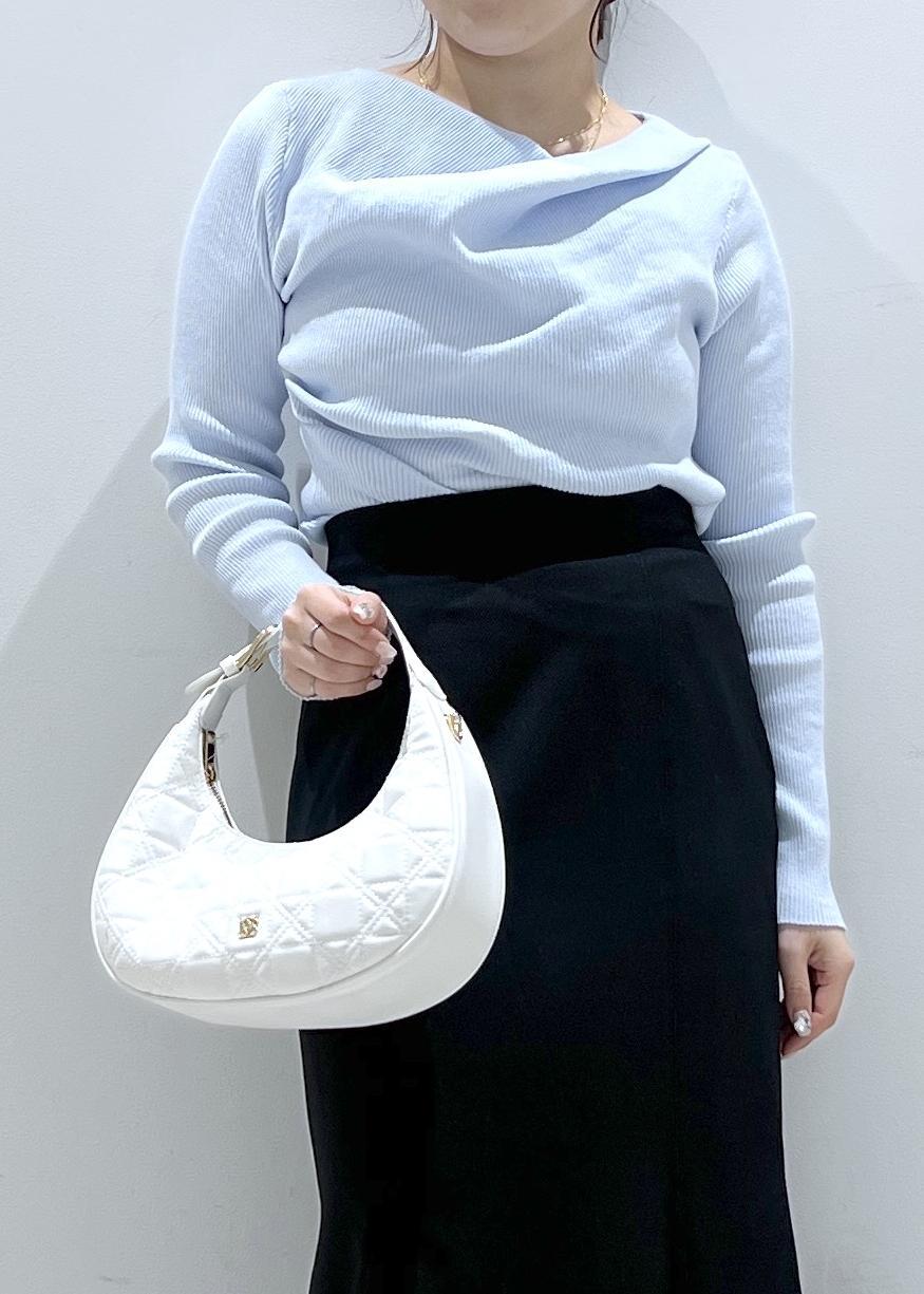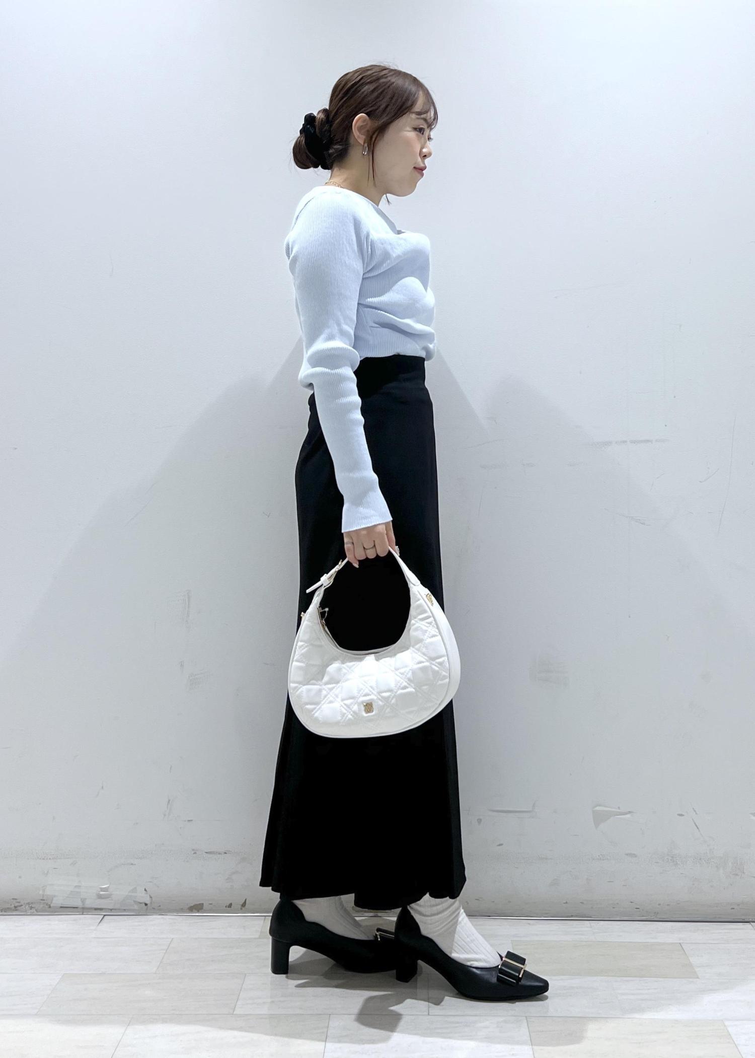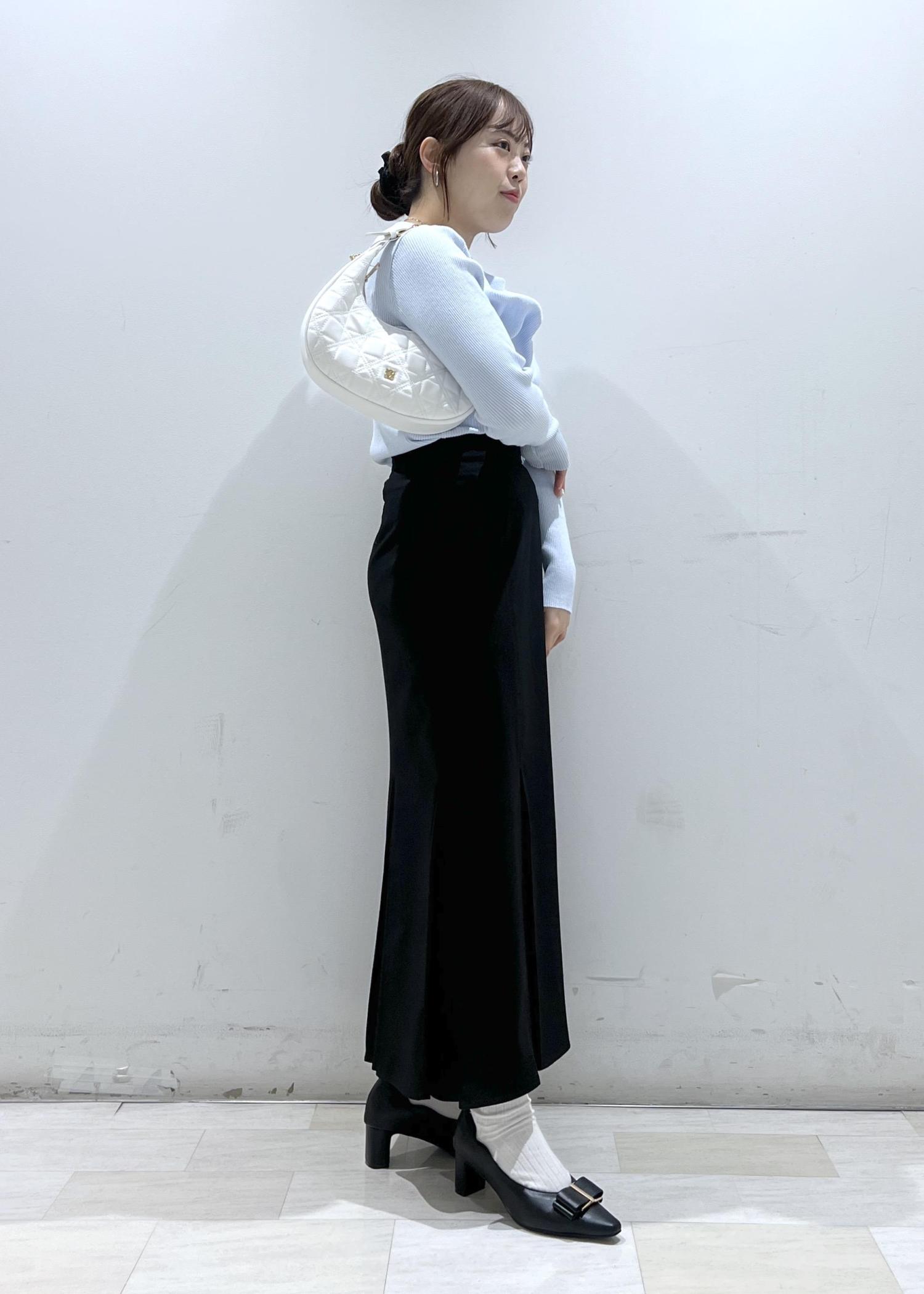 さらっとしたスプリングニットになっておりボディラインを拾いすぎず着やすい素材感です◯