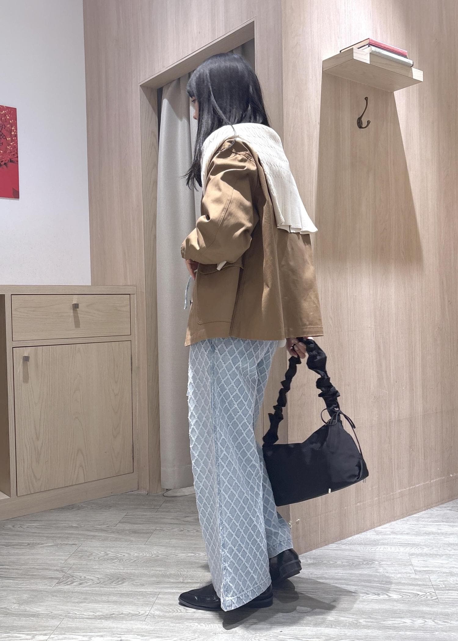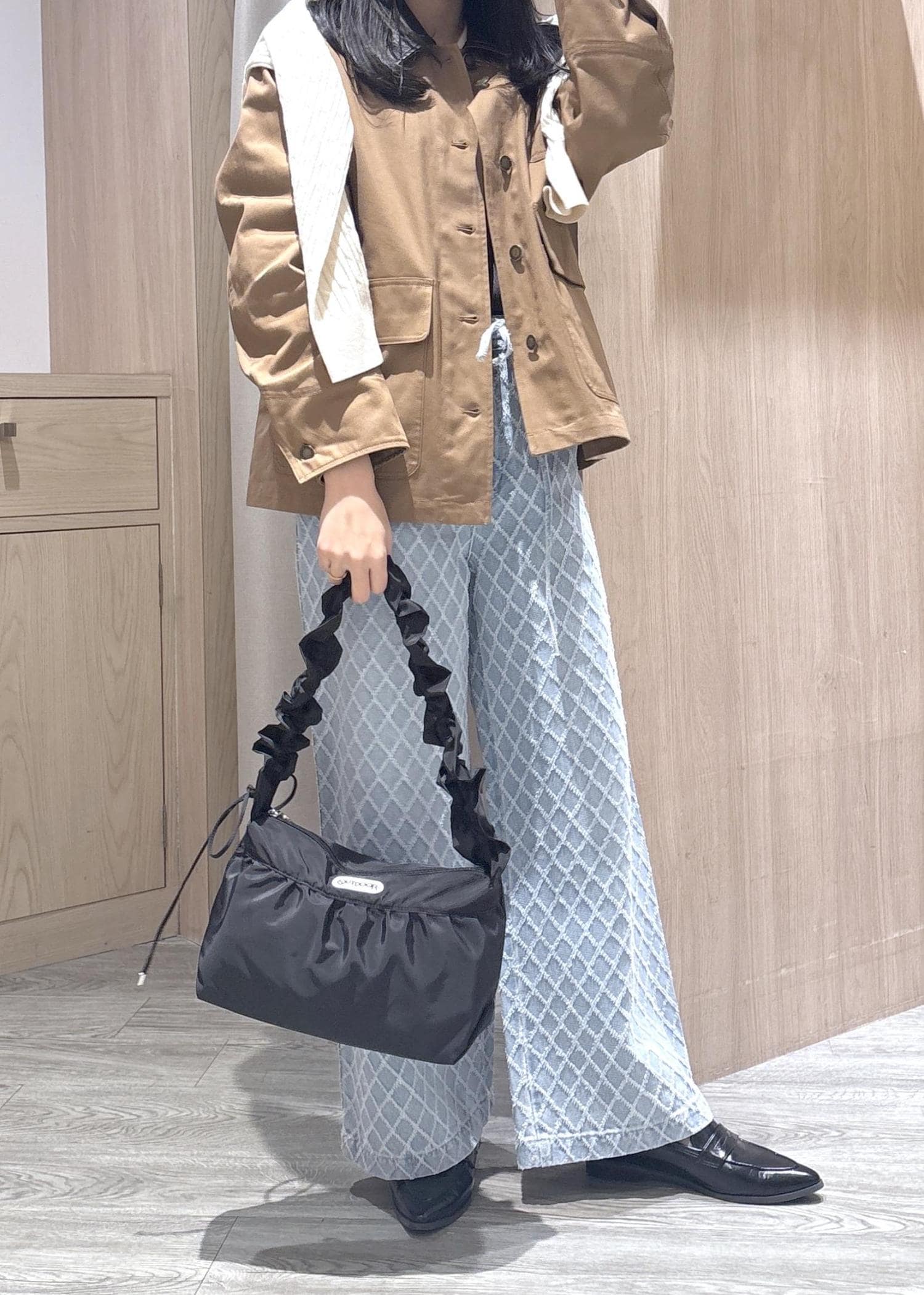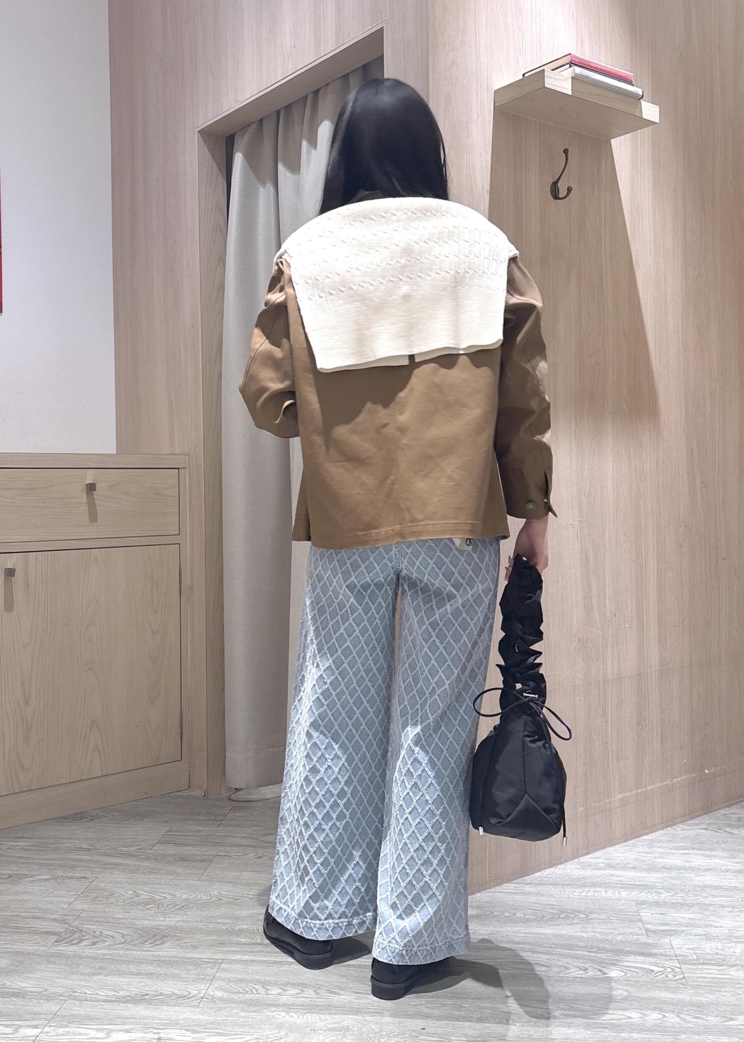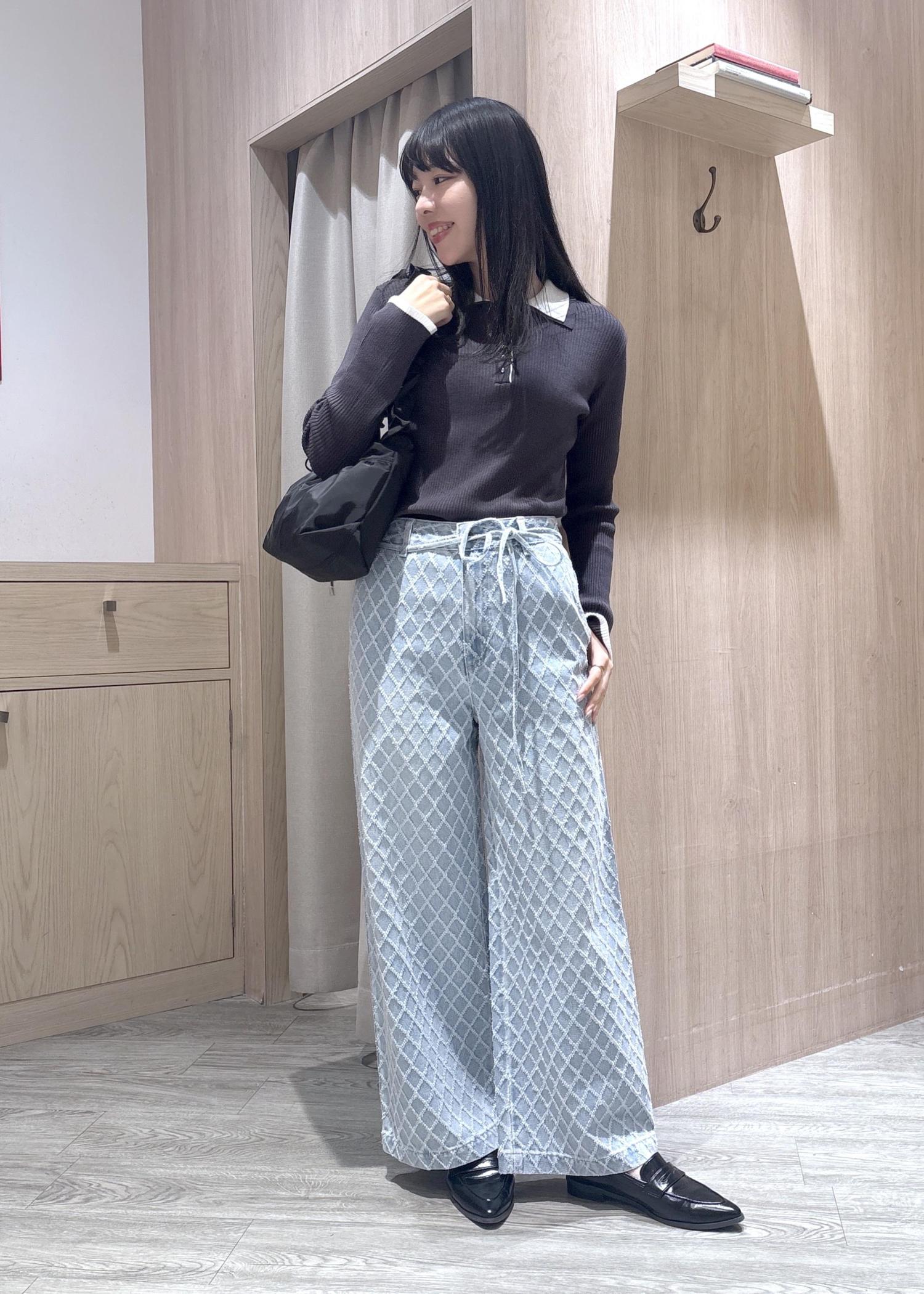 ワイドデニムなので体のラインをひろいずらく足を長く見せてくれます。