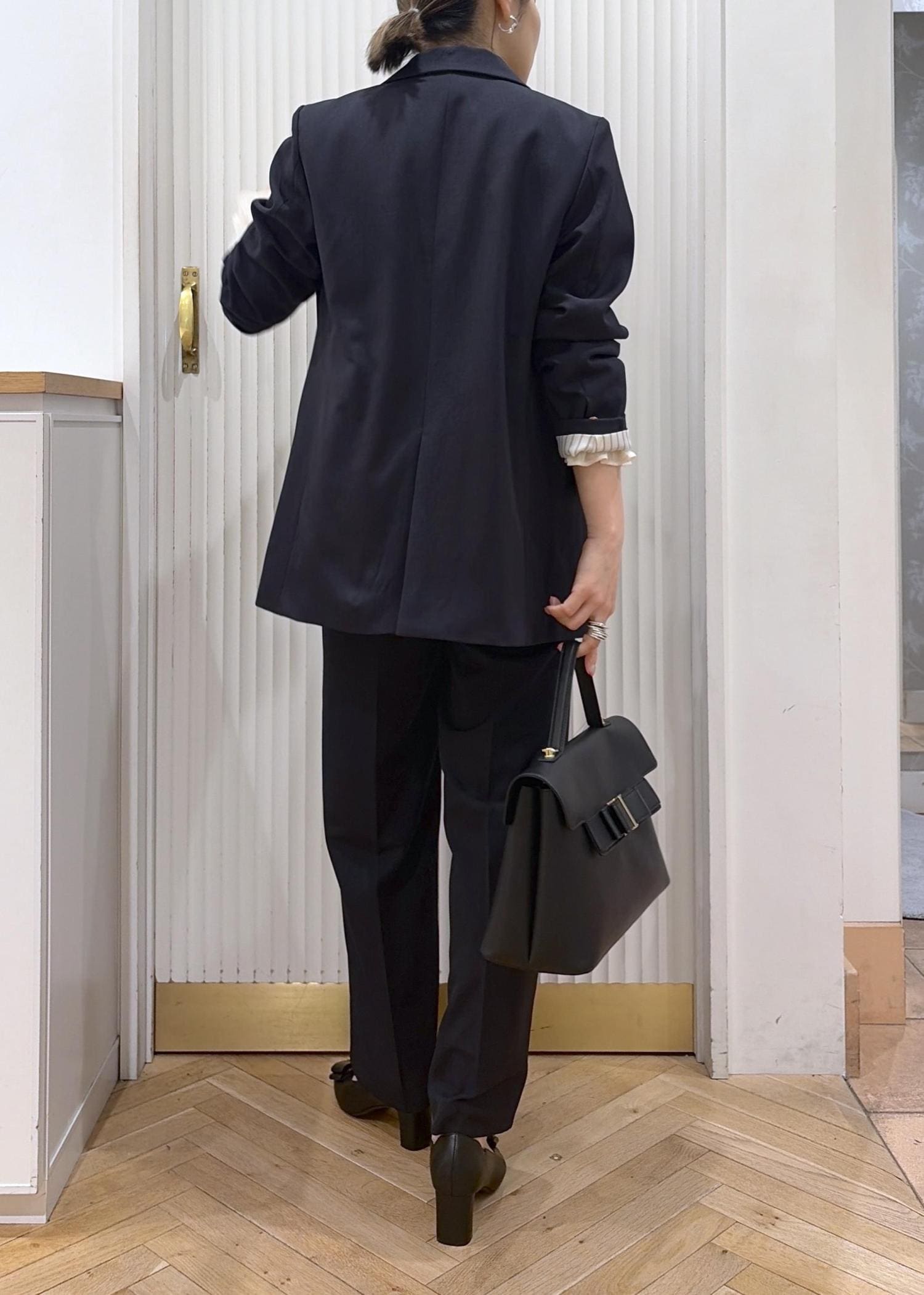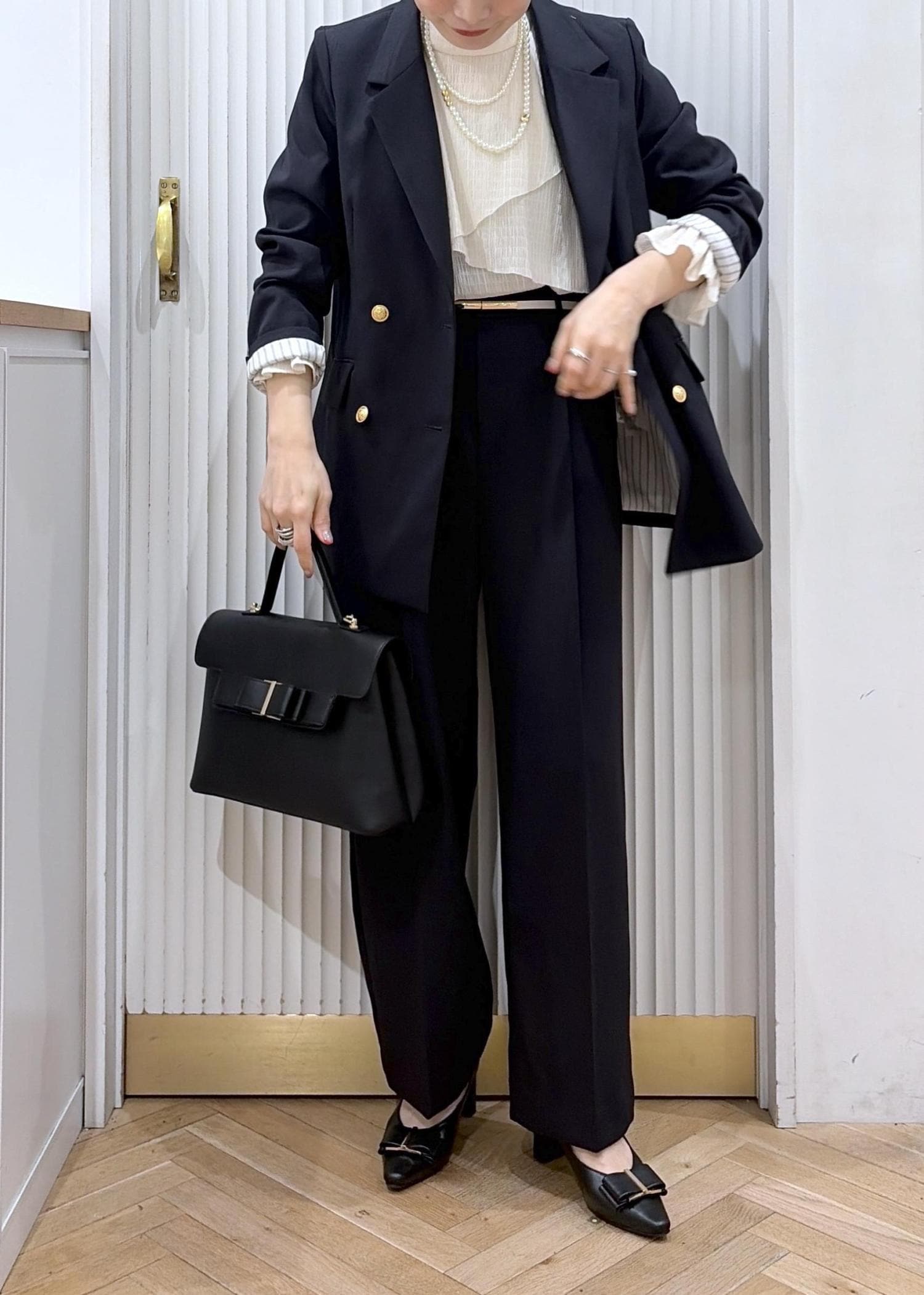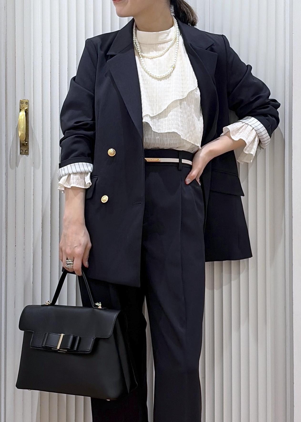 ティアードブラウスで上品フェミニンセットアップコーデ