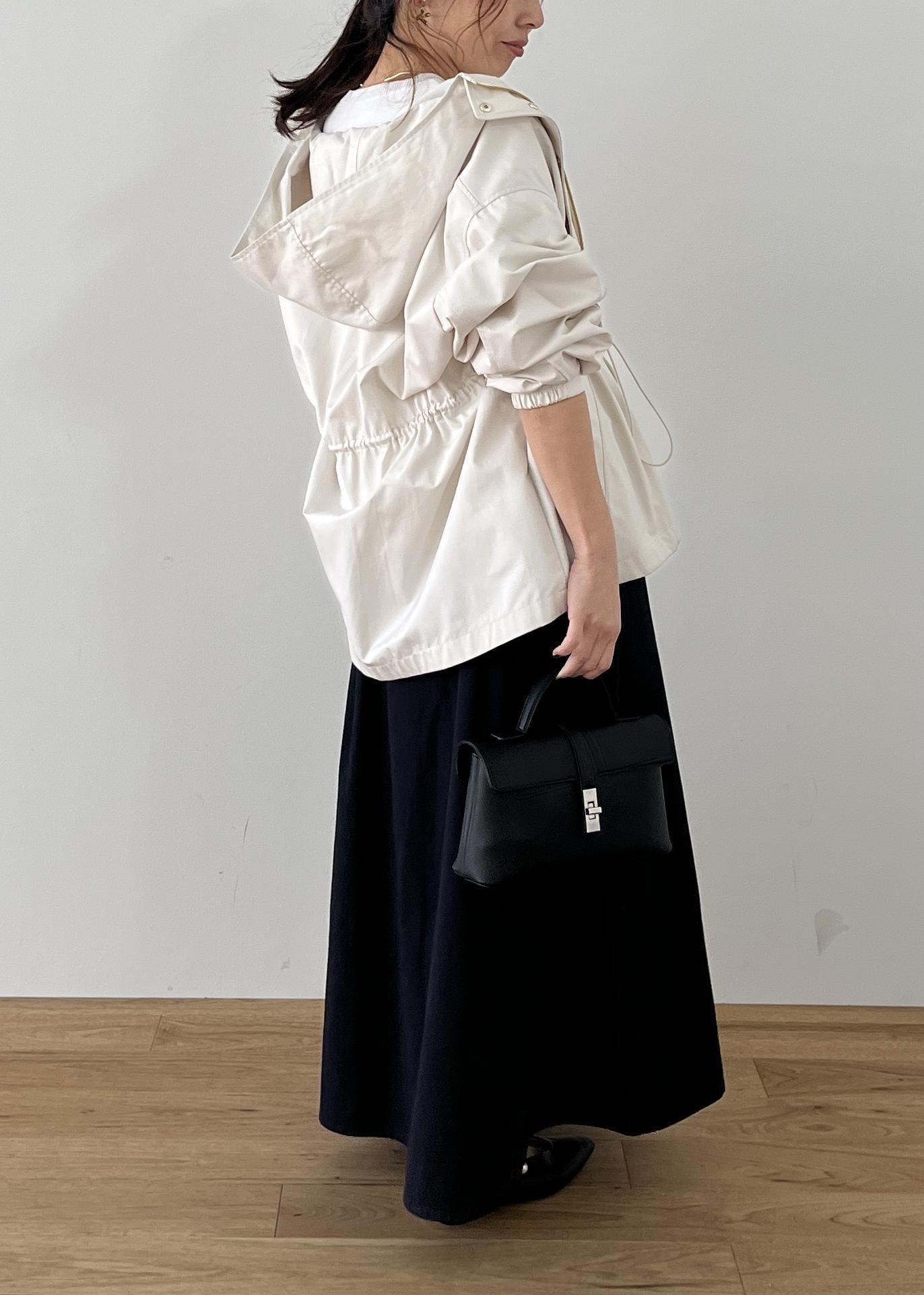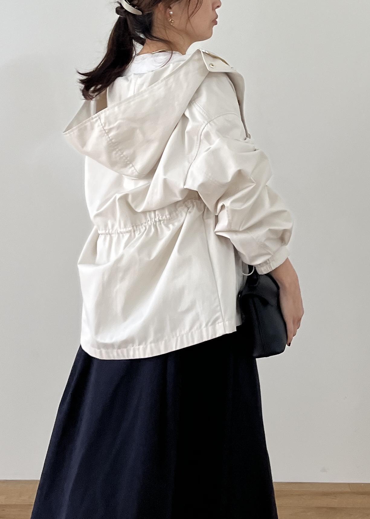 VISウエストマークナイロンジャケット/スプリングマウンテンパーカーオフホワイト / F¥8,899レビュー152cmでFサイズ着用し、着丈はお尻が隠れるくらいの丈。ややオーバーサイズでゆったりめ。ウエストが絞れるので大きすぎることなく着られ、スタイルアップも叶います。春先に大活躍間違いないアウター。シワにもなりにくいのでお手入れも楽ちんです。後ろに抜いて着ると小柄さんはバランスがとりやすいと思います!