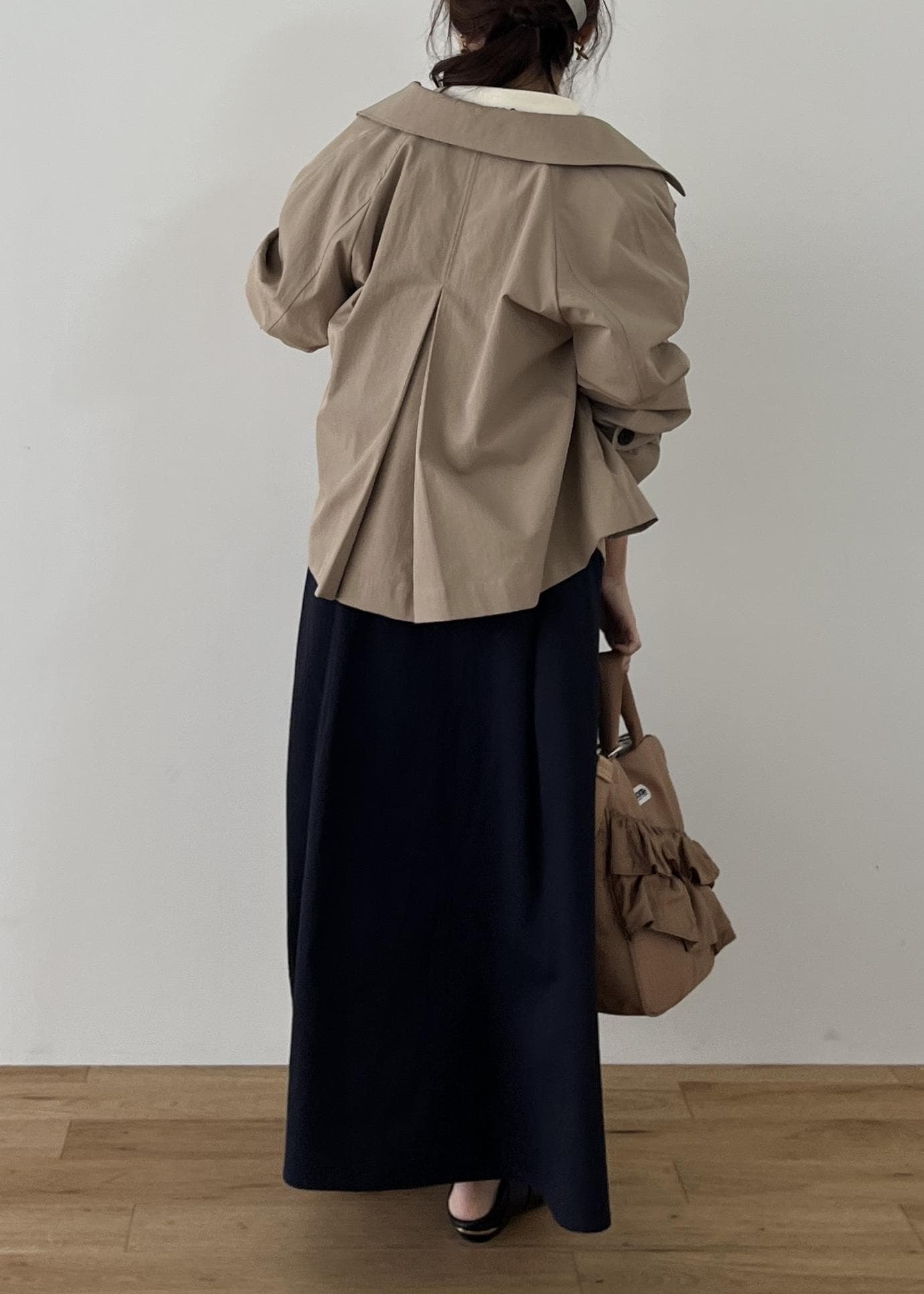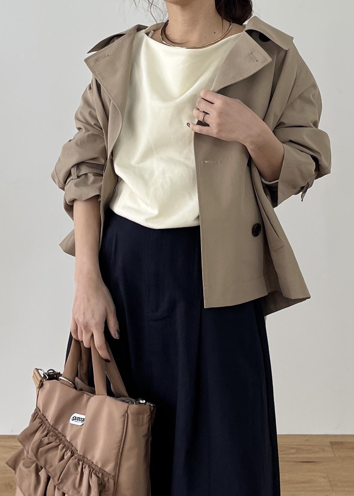 軽やかなベージュアウターに、