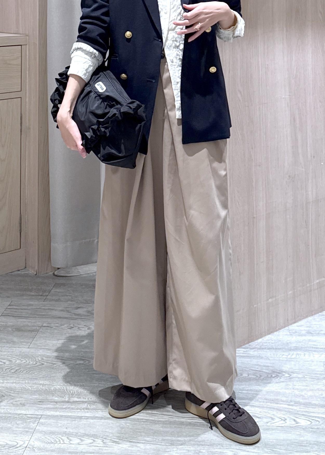 太めのタック入りで、ウエストから緩やかに広がるシルエットが大人っぽくかっこよく決まります!!