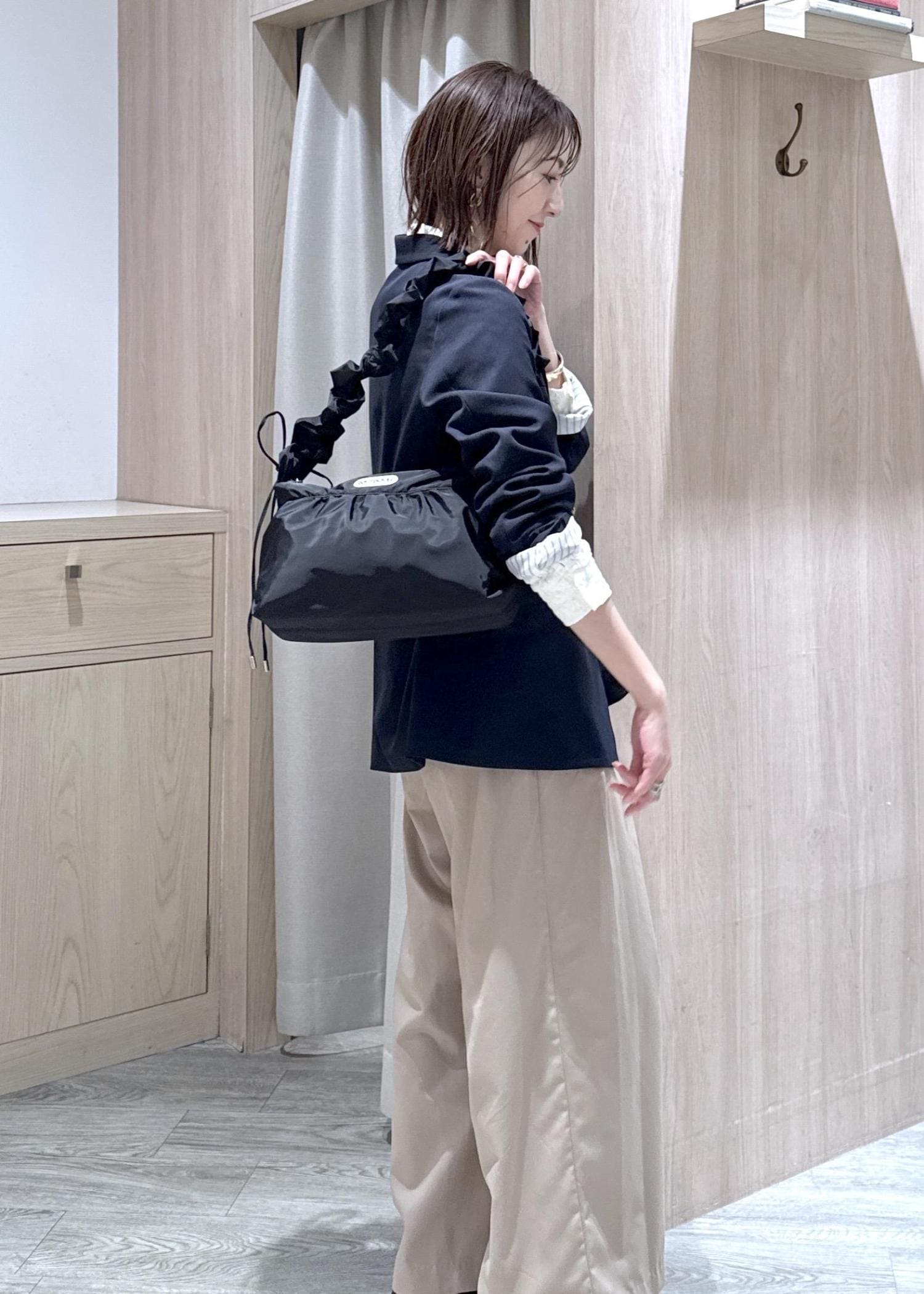 持ち手の部分はドロストコードで調節可能&クシュクシュ具合も調節できます◎