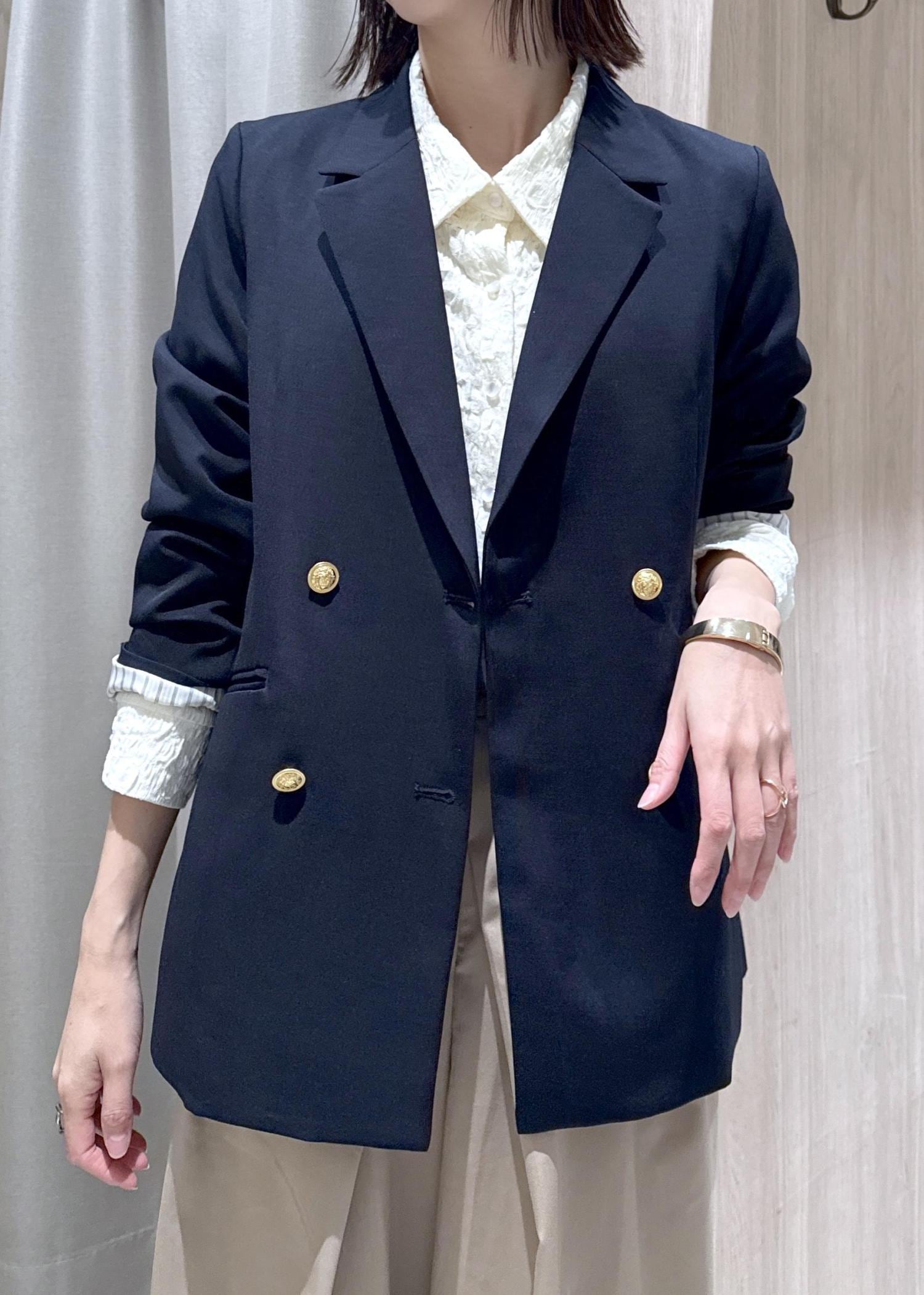 シワになりにくい、ややハリ感のある生地のジャケットです!