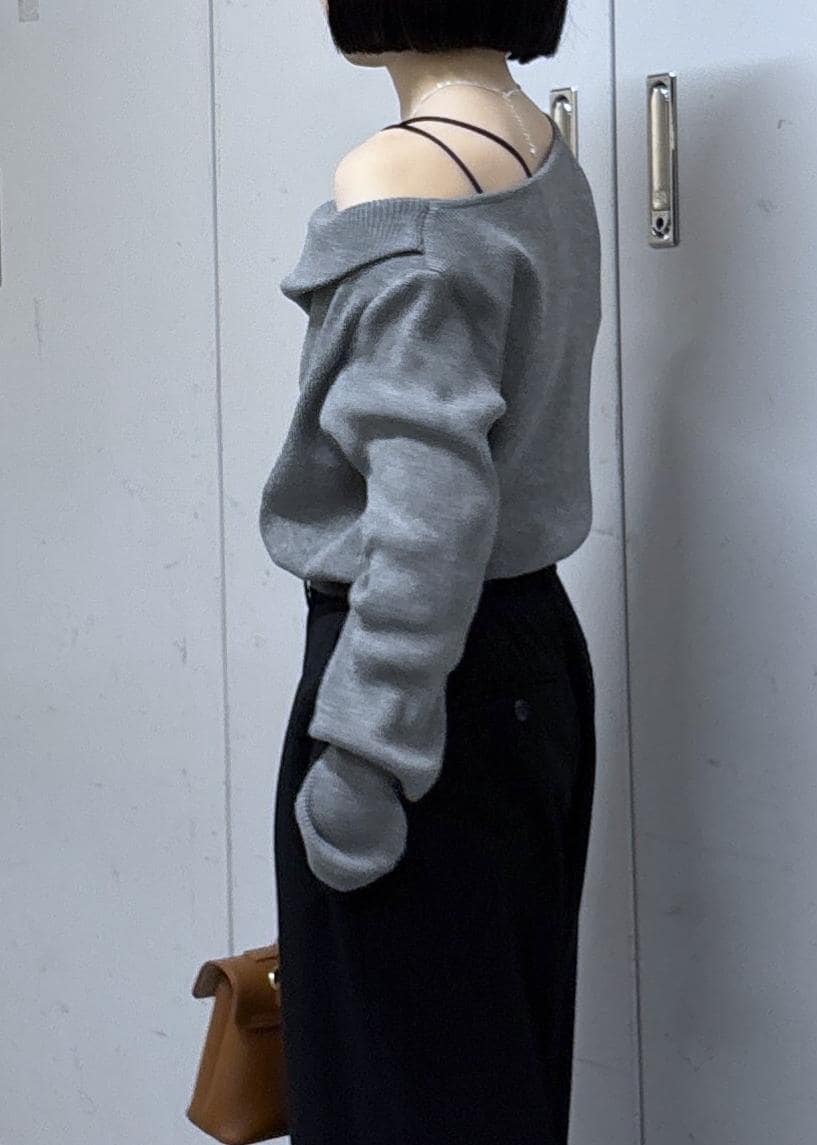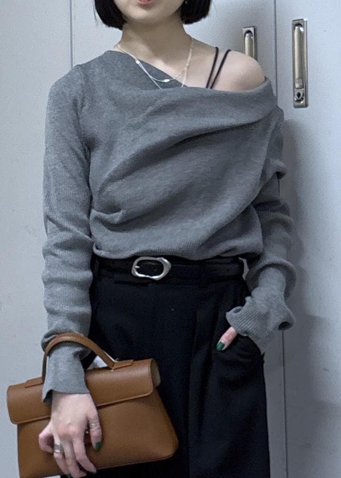 NEW!VISドレープオフショルダーリブニット/イージーケアグレー / F¥4,389レビュー人気アイテムの春仕様!