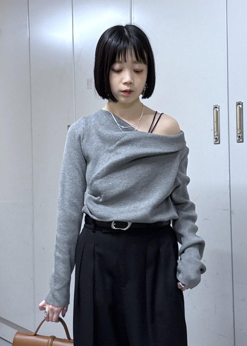 片方をオフショルにして着るとデコルテが綺麗に見えていい感じ!