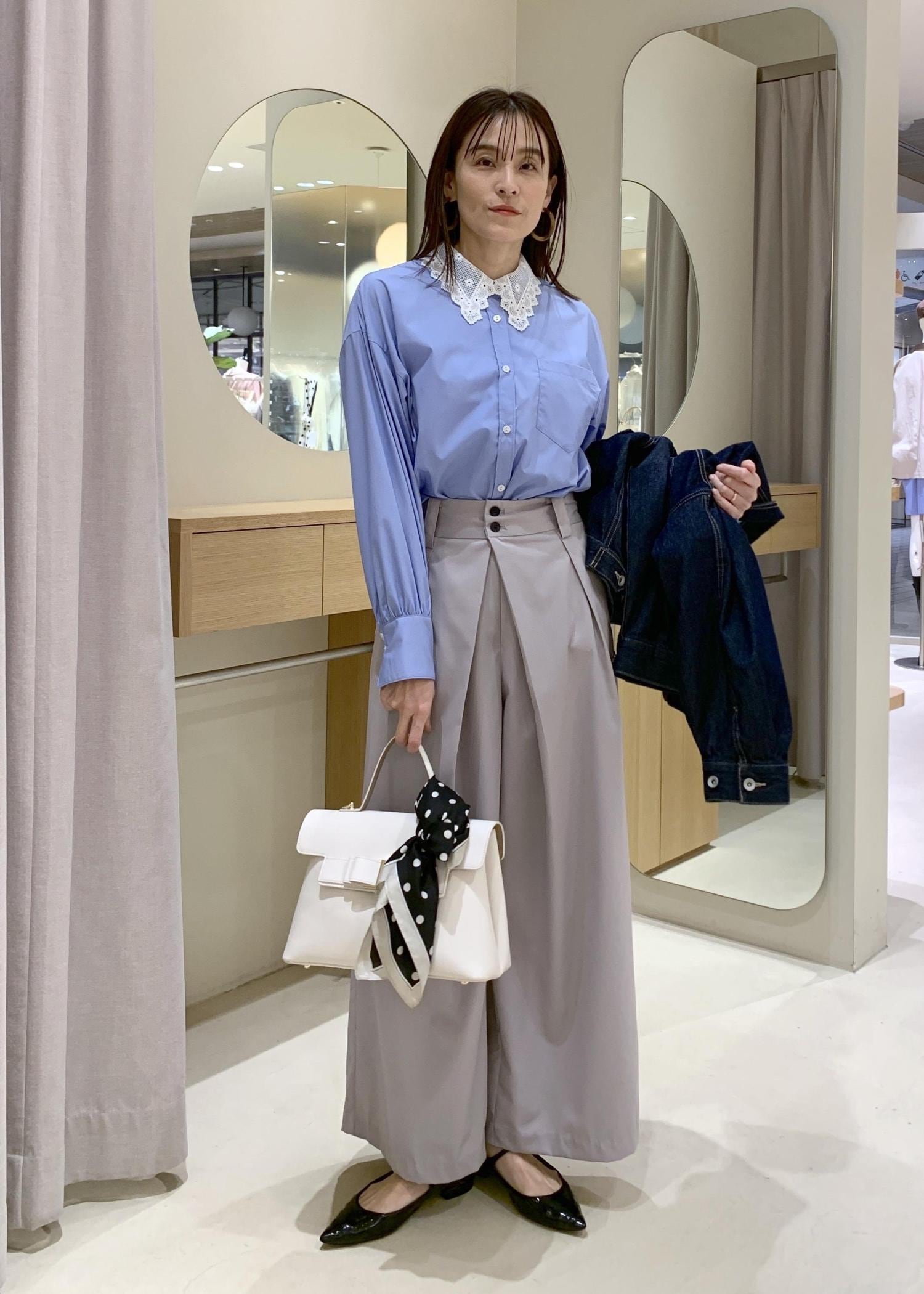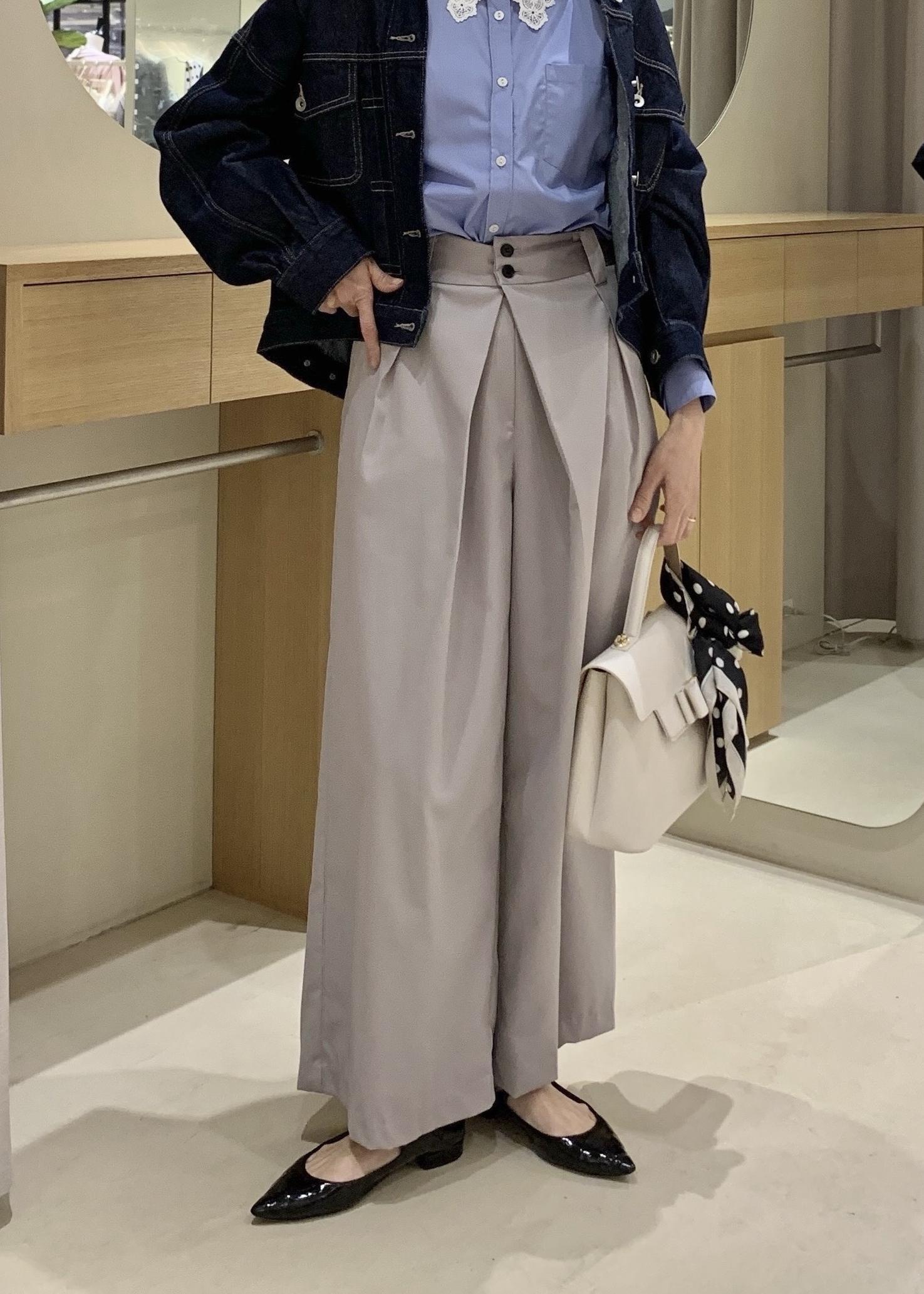 程よい甘さは子供っぽくなく、取り入れやすいです。ミニ丈なので、一枚で抵抗がある方は、私が着用したようにパンツ合わせのスタイリングがおすすめです。