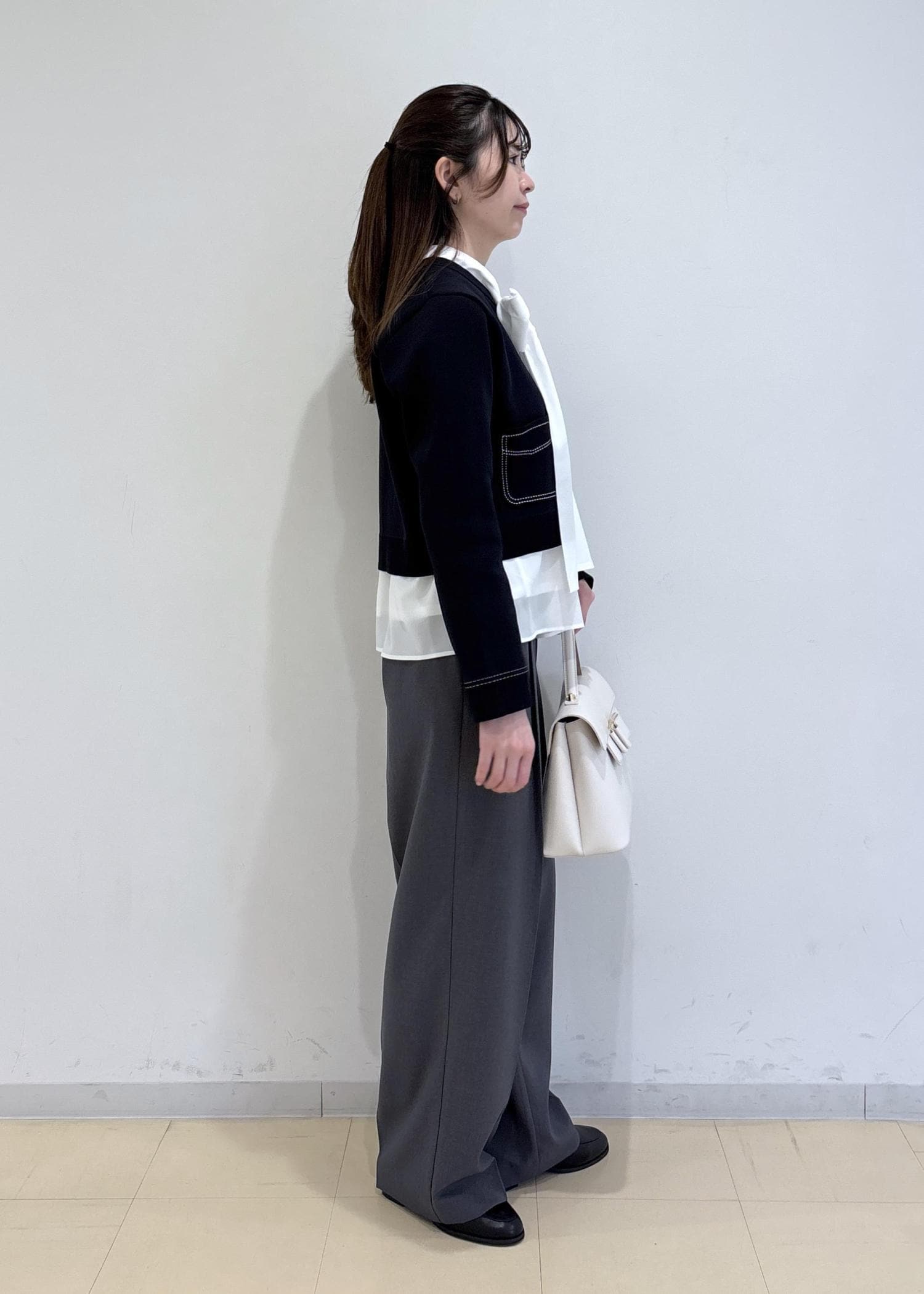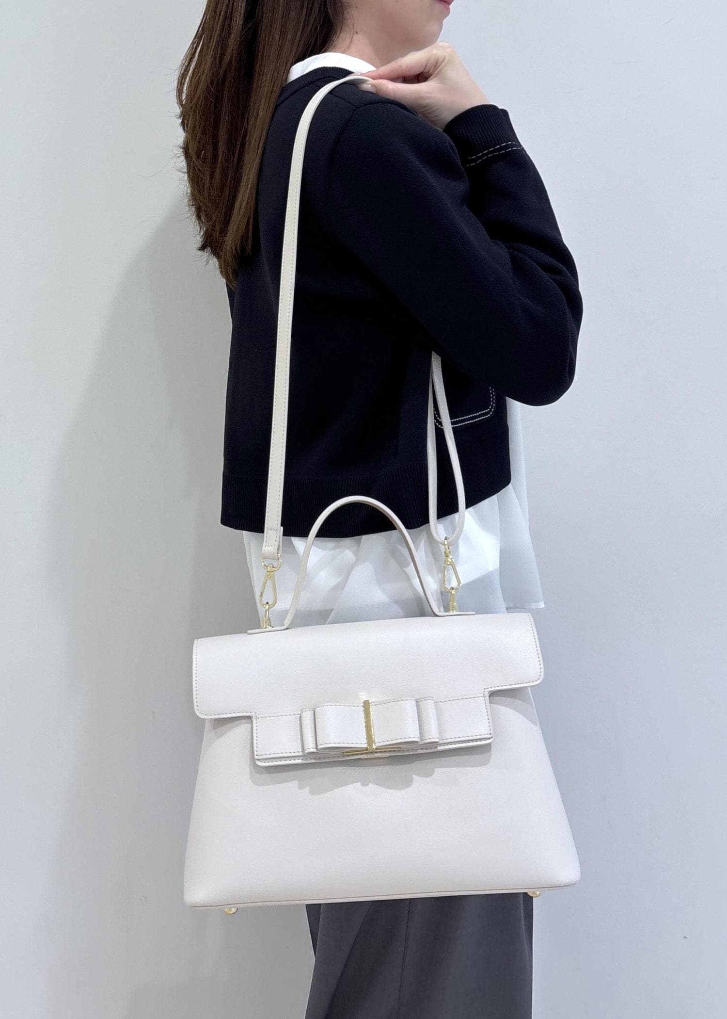 全体が暗くならないようにバッグはホワイトを選びました。