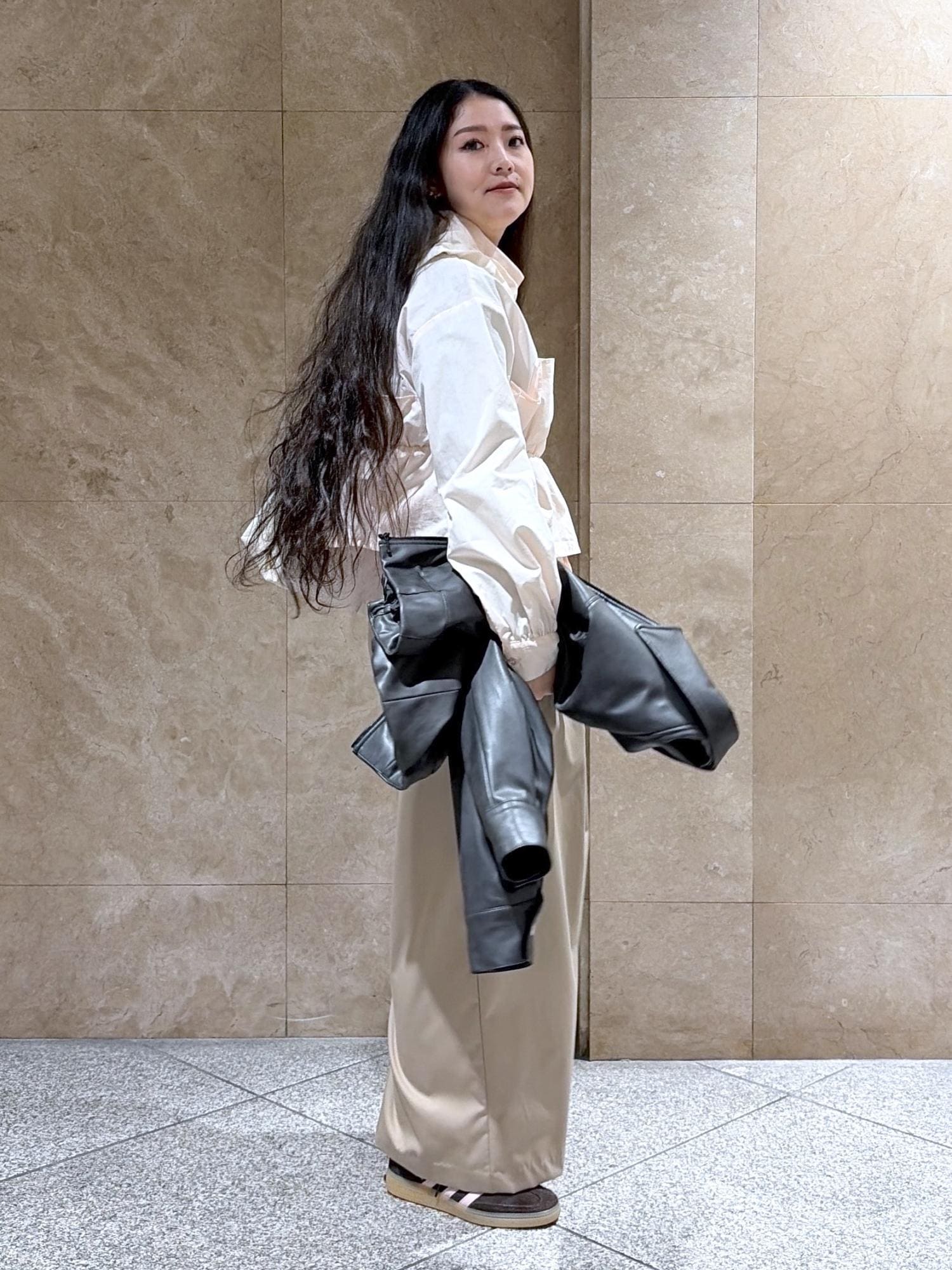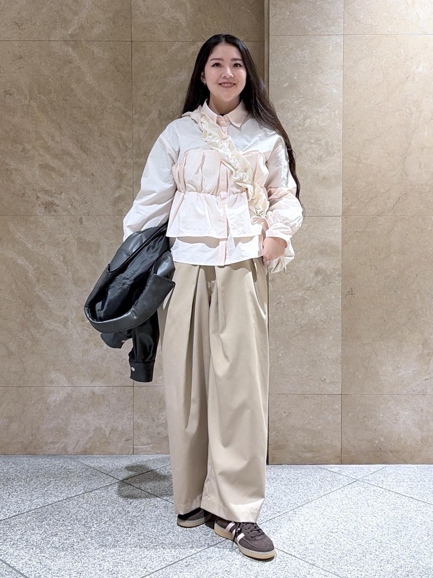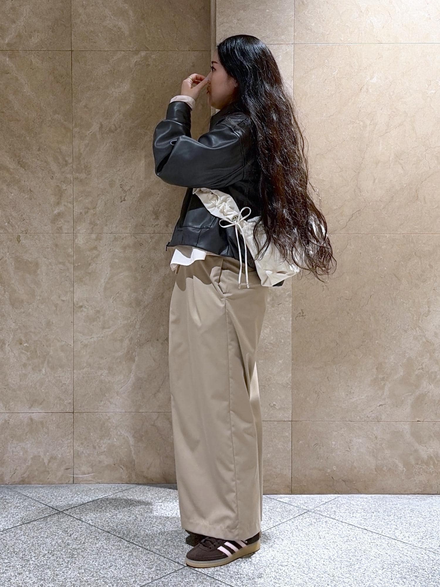丈感も少し短めで後ろのたるみ具合も可愛くてスカートにも合わせやすそうです◎ -