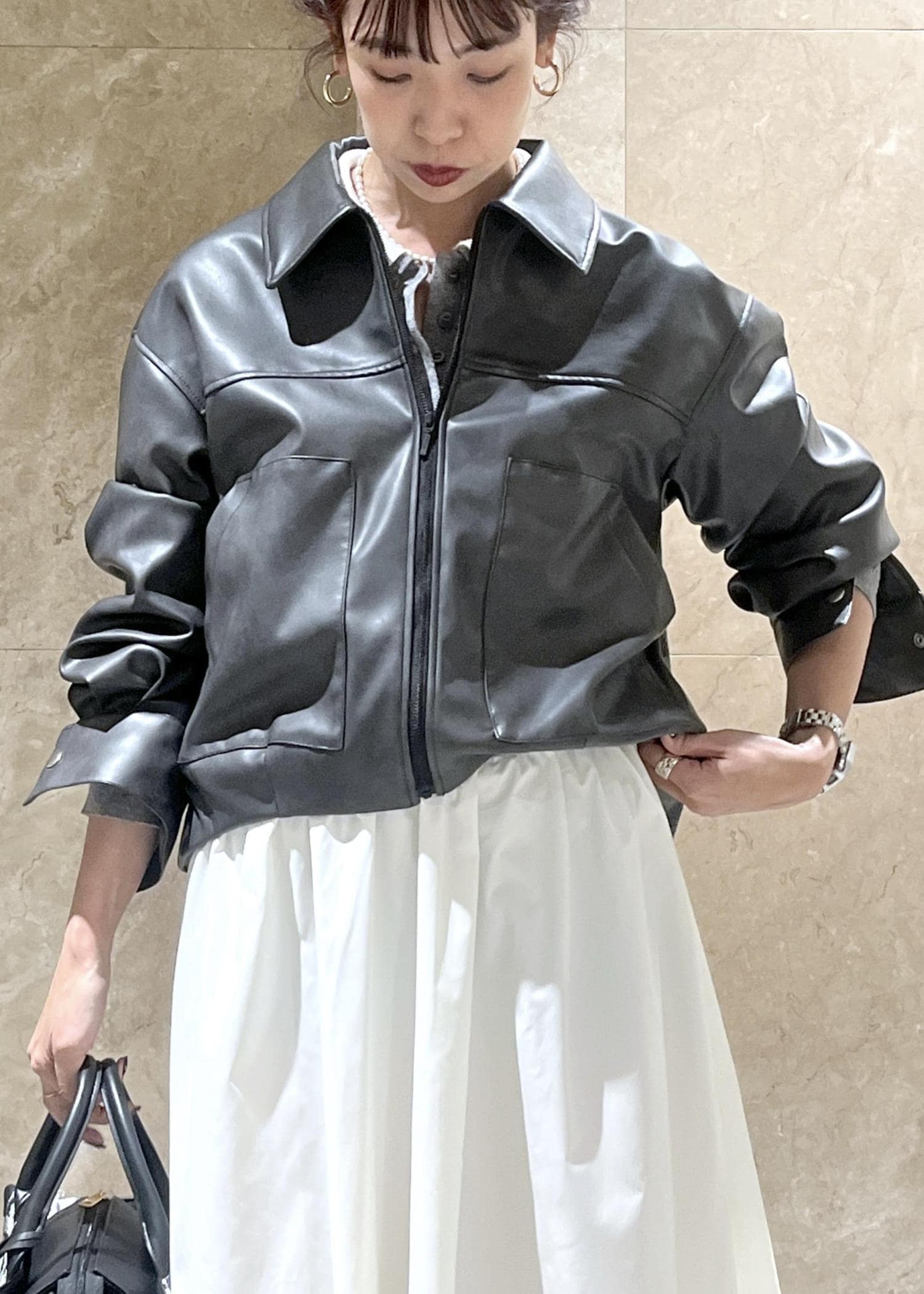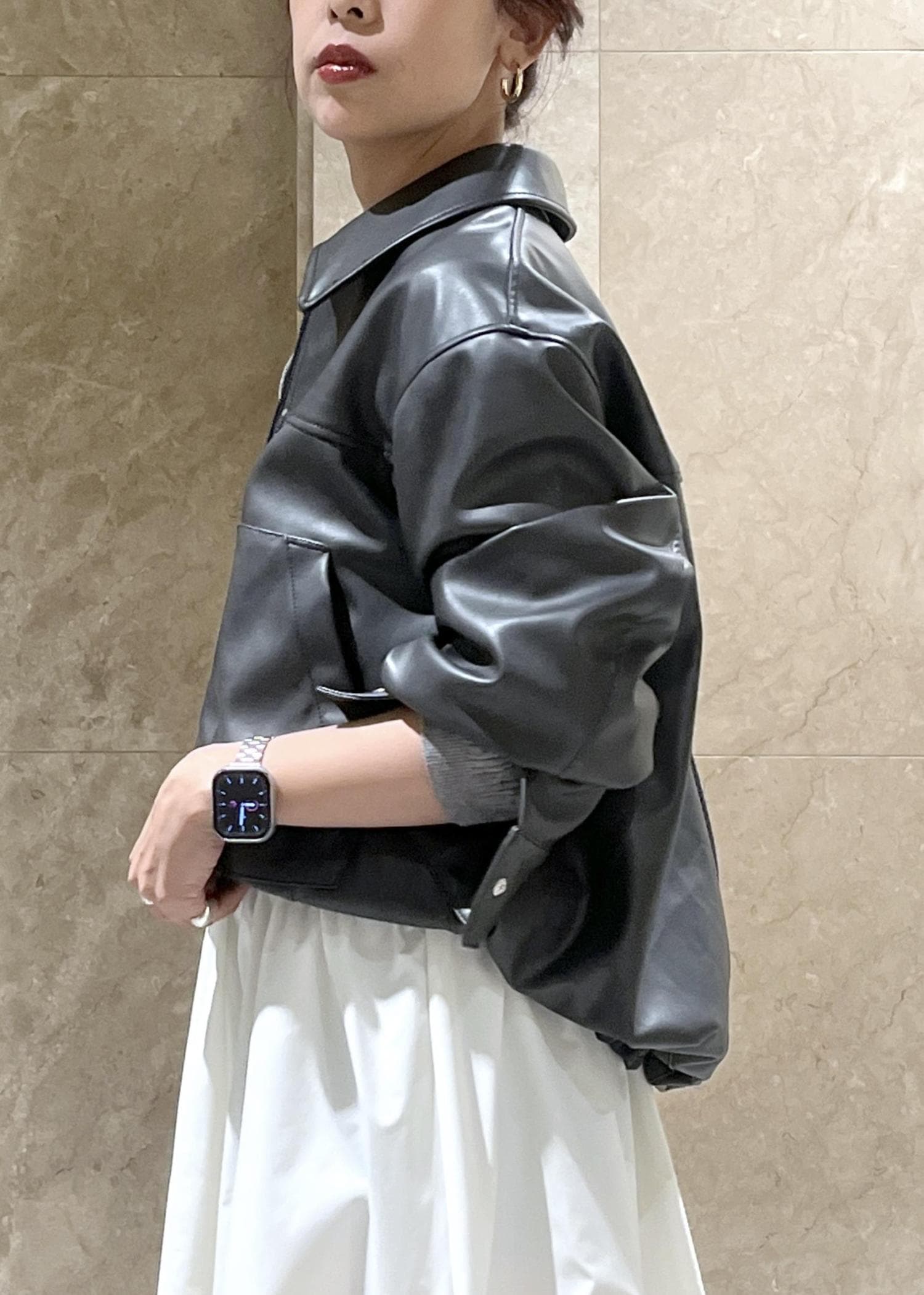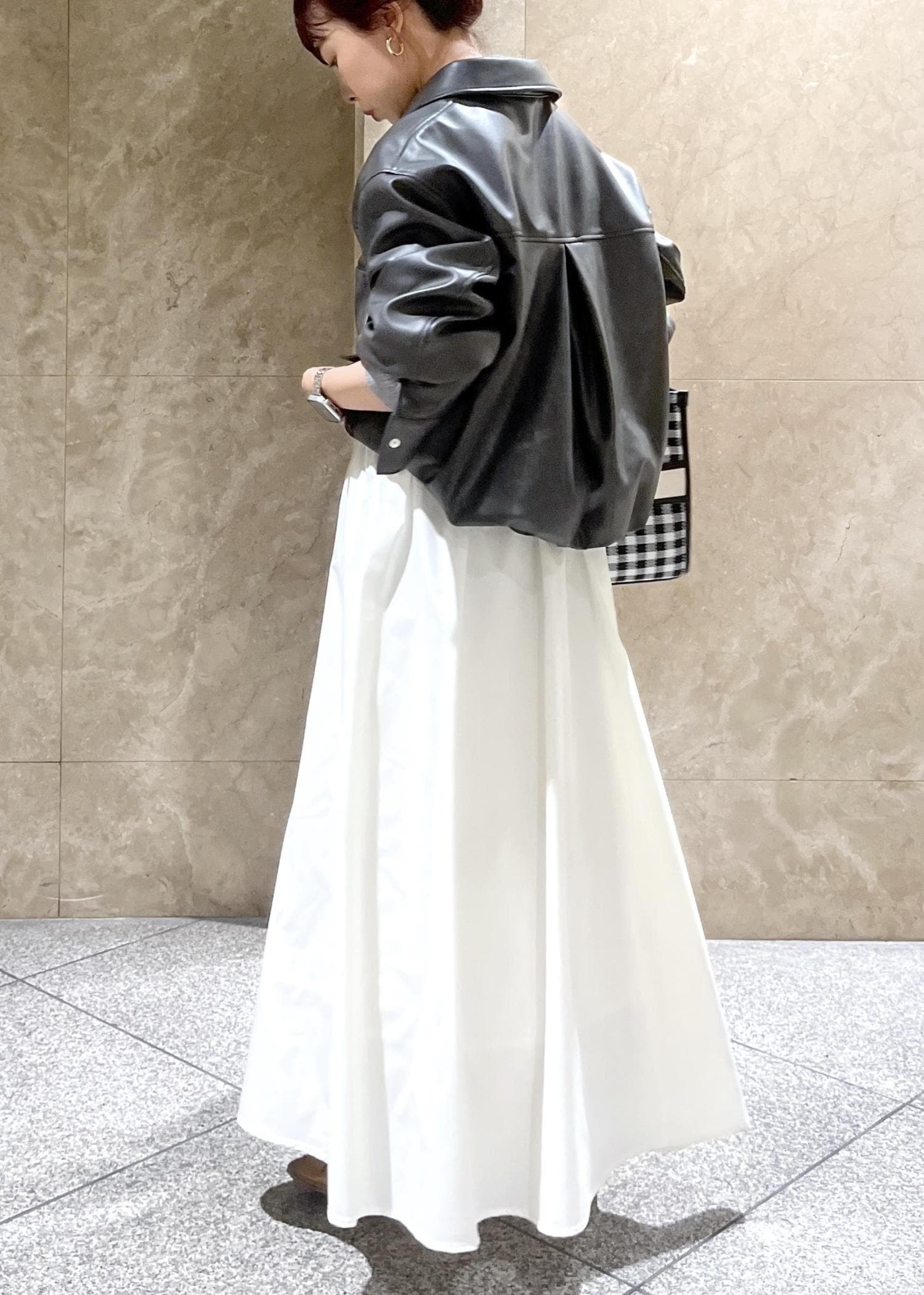 後ろの丸みのあるバルーンのシルエットが可愛らしく、レザー調の素材でもハード感もなし! -