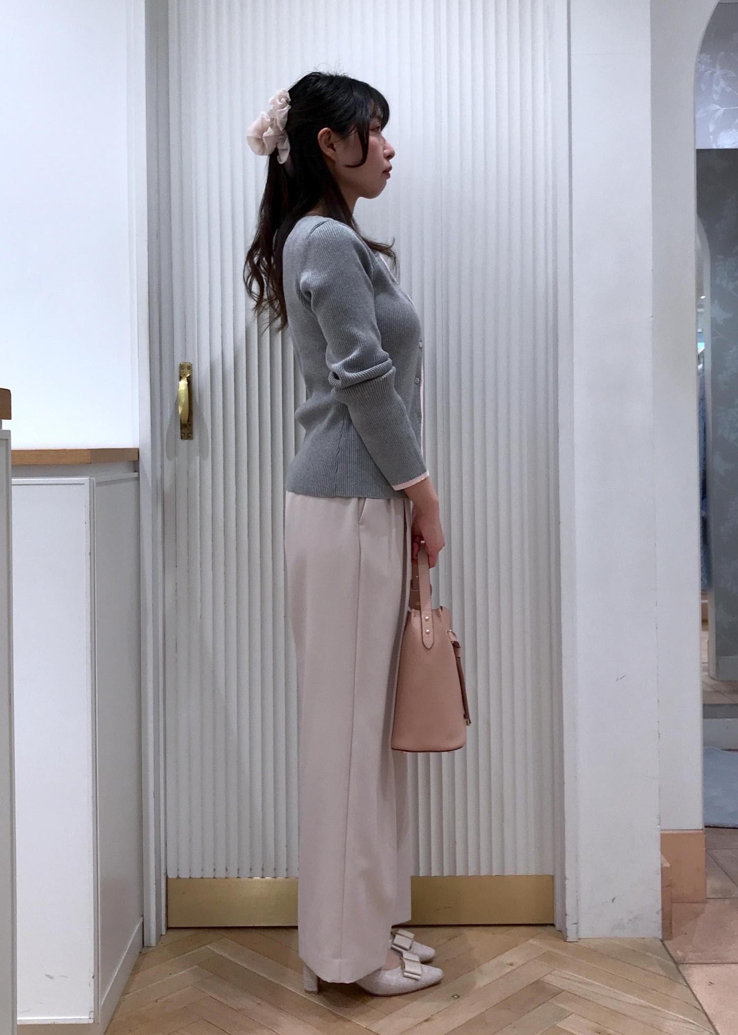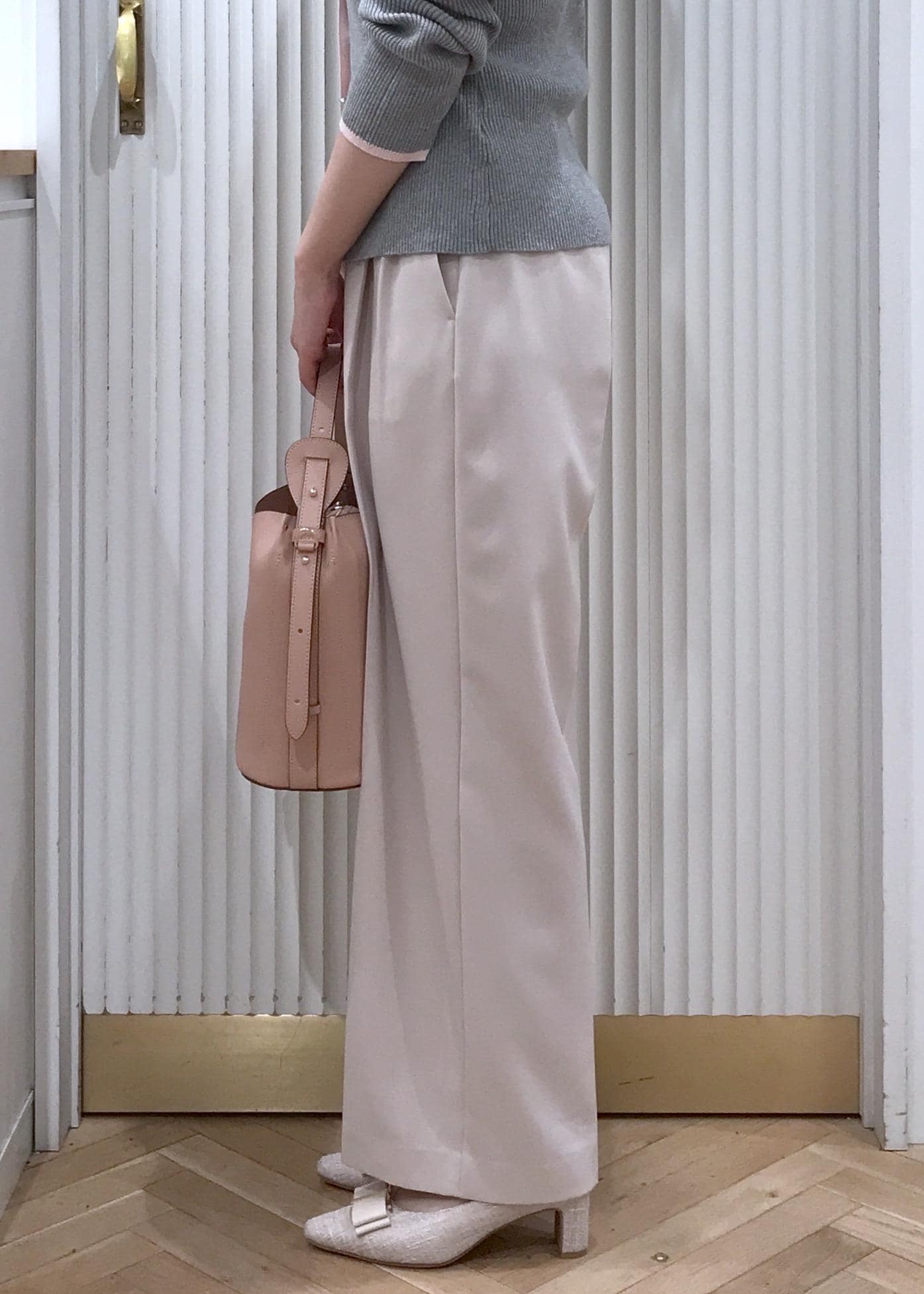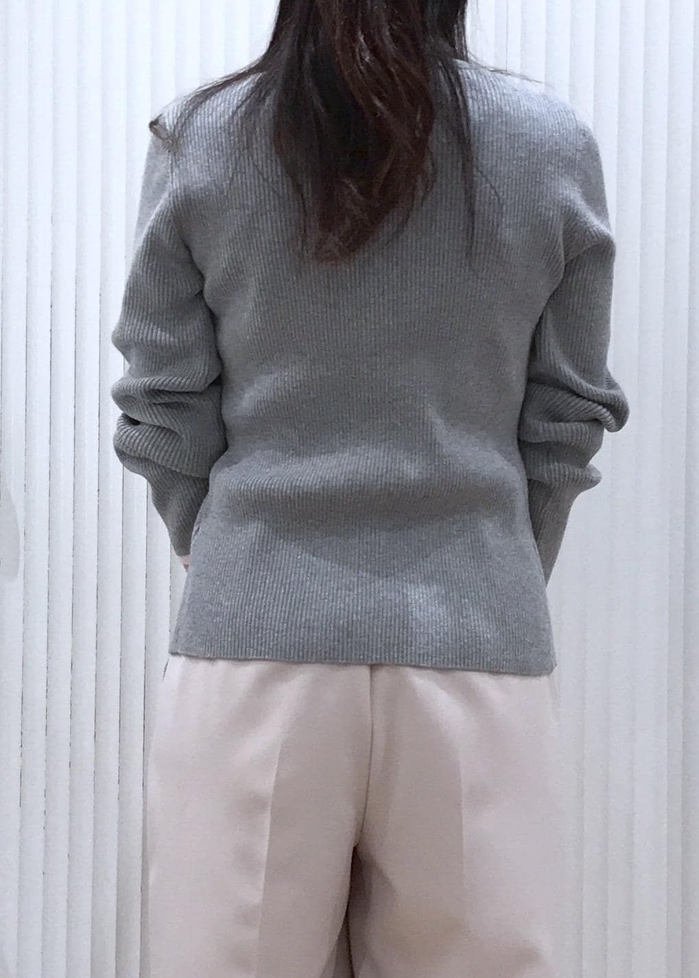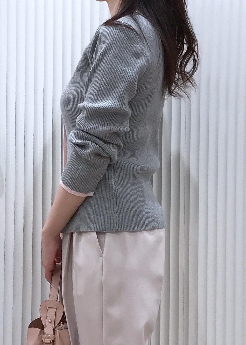 程良く身体のラインを拾ってくれるのでスッキリ感が出て、ワイドパンツ等のボリュームあるボトムやスカートにも合わせやすいですよ。