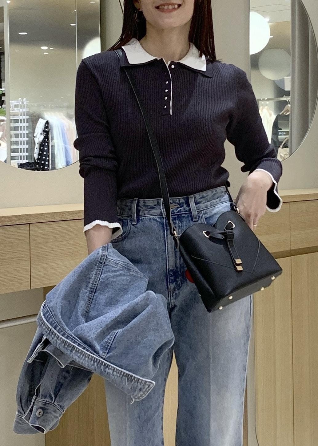 少し後ろに抜いて着用すると、こなれ感と首元の抜け感が出せますよ。