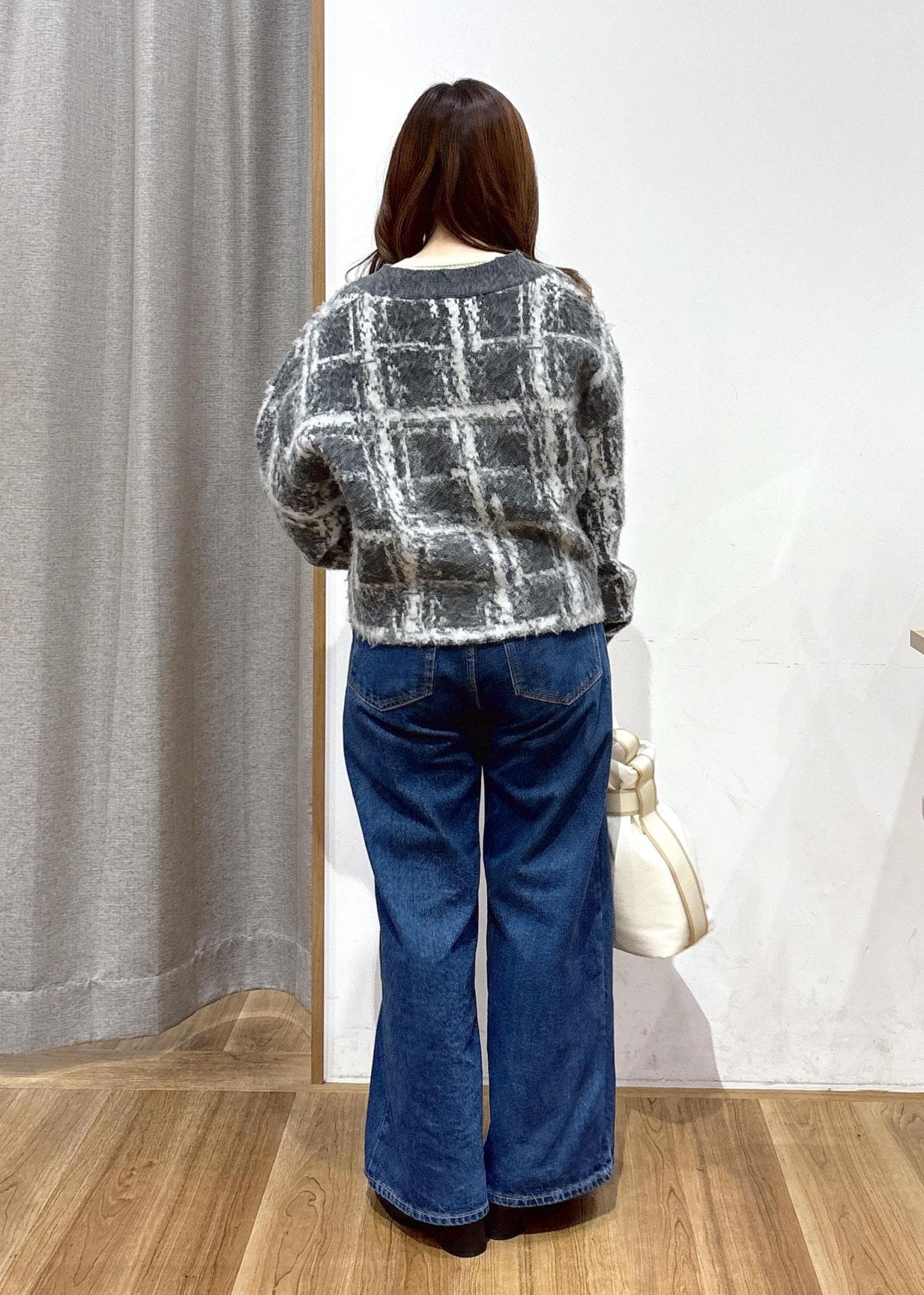 アウトレット 2BUY10%OFFVISチェックアソートシャギーニットカーディガン/セットアップ対応グレー / F¥2,636レビュー【着用感】