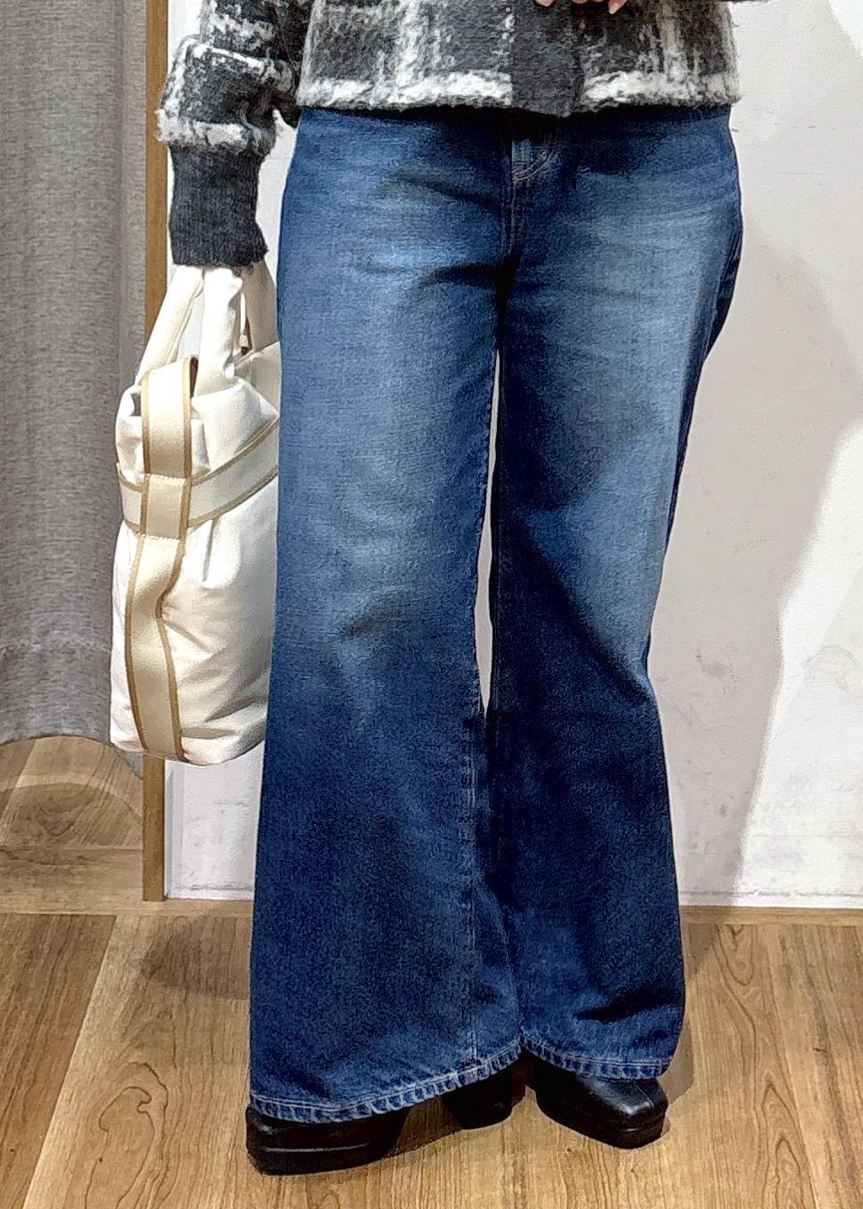 足を長く見せてくれるワイドパンツですが、低身長の方の場合は厚底のブーツなどと合わせるとよりすっきり着用いただけます◎
