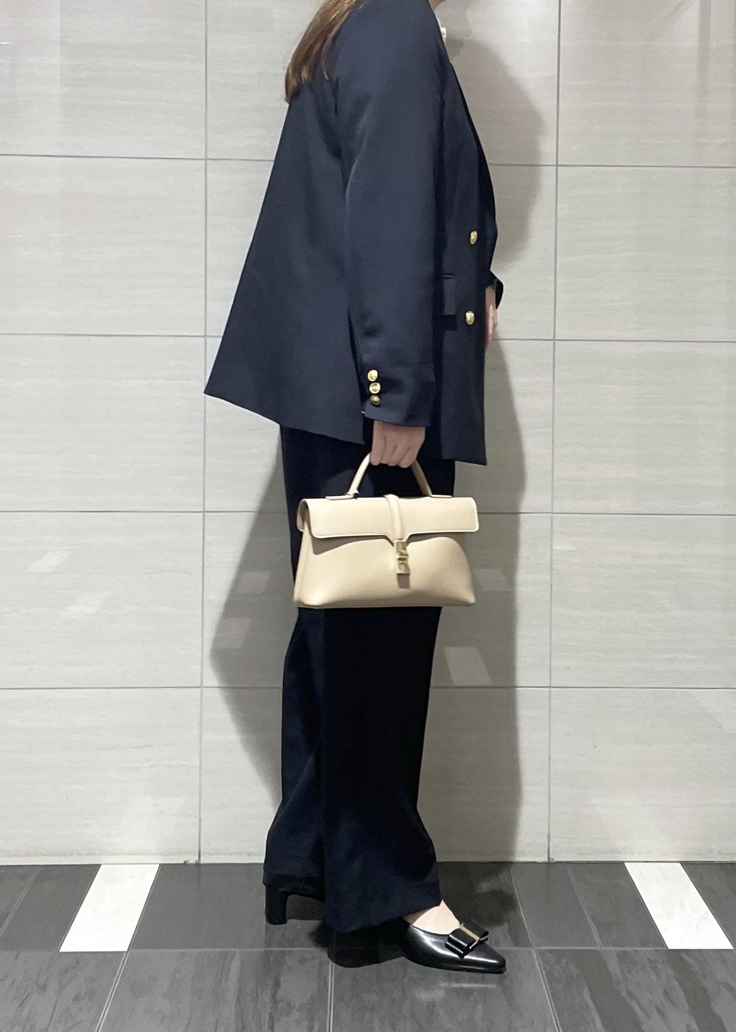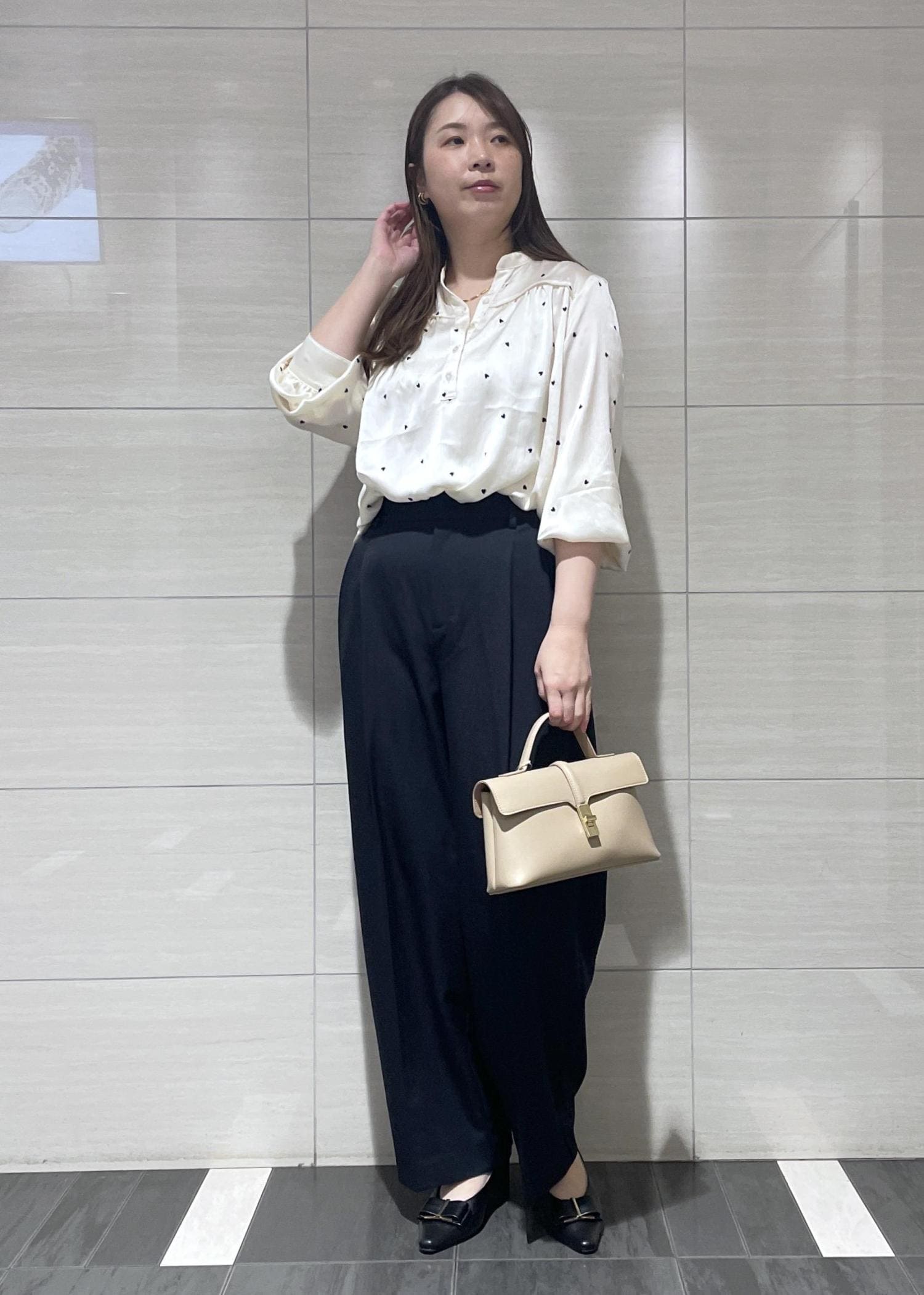 艶と落ち感がある素材なので上品な印象にしてくれますしウエストアウトで着てもスッキリ見えします◎ -