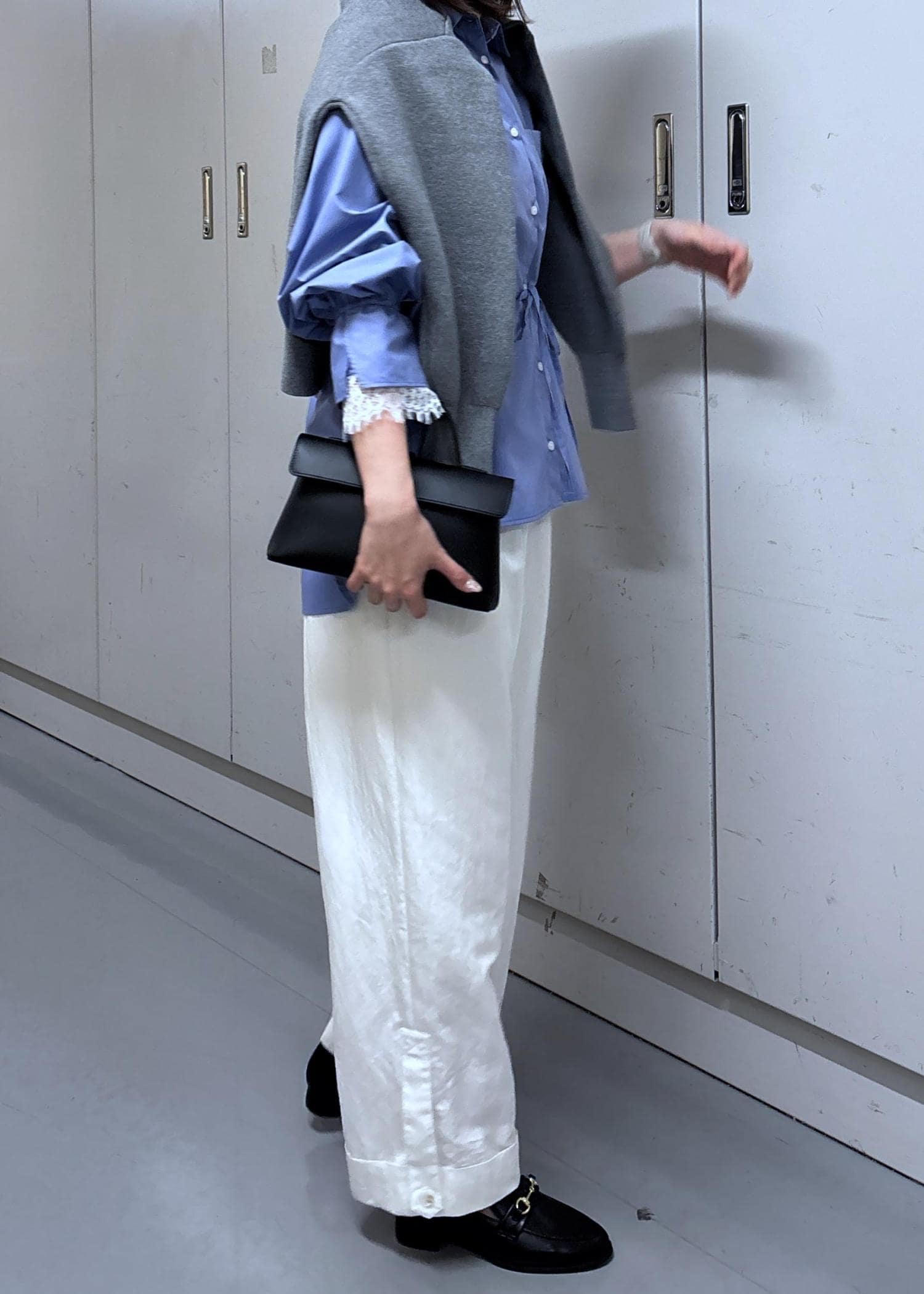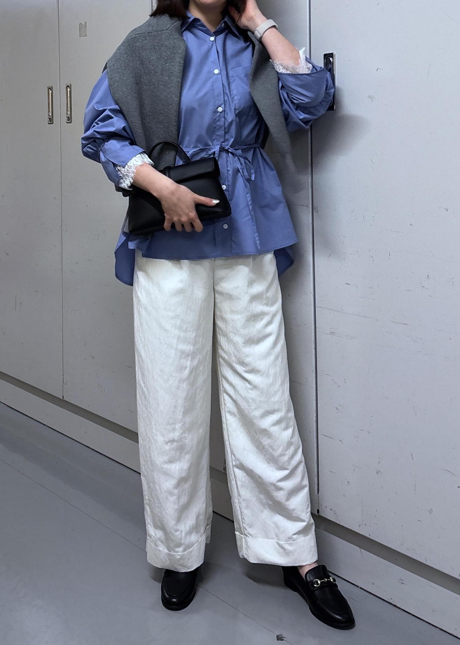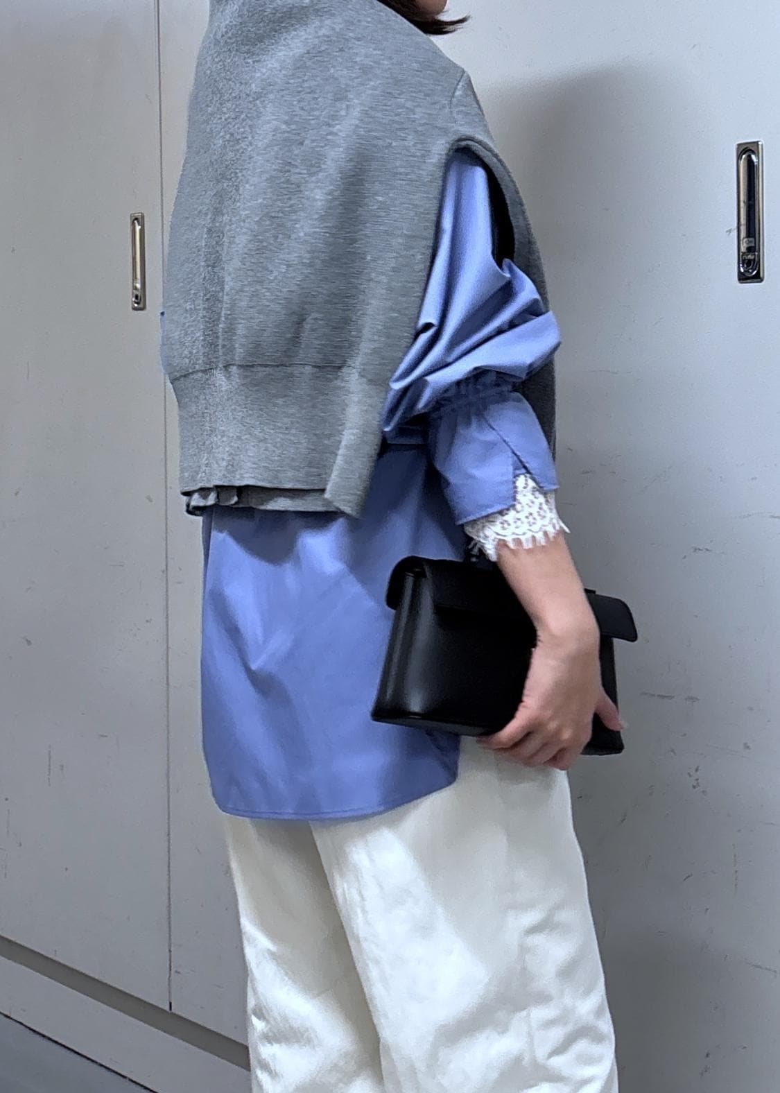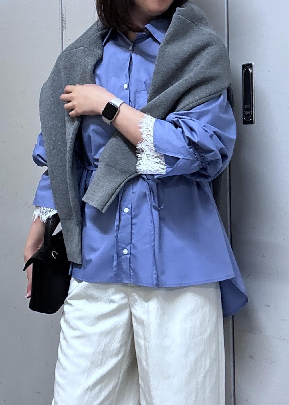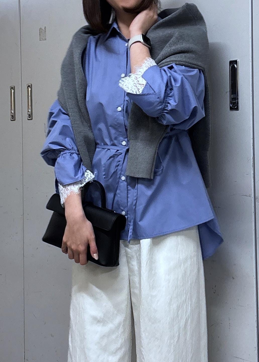 VISレーススリーブAラインシャツサックス / F¥5,929レビュー着丈はお尻まで隠れる長さで、透け感も無く安心です。