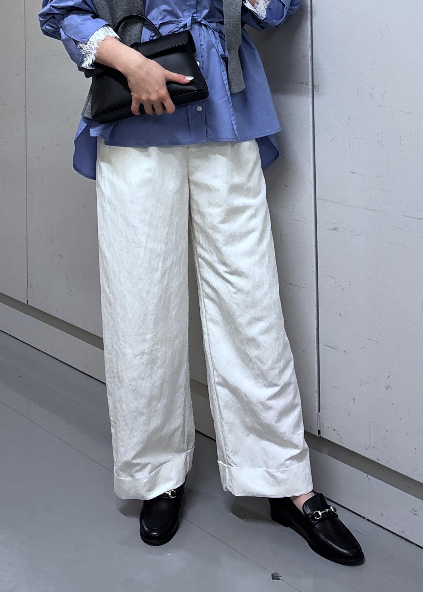 VISエアタンロールアップパンツ/イージーケア・防シワキナリ / M¥6,589レビュー後ろゴムなのでゆったりめに着れます。着丈は足の甲スレスレ当たらないくらいの長さでした。スポーティーなシャカシャカ素材なので、カジュアルに着るのがオススメです。