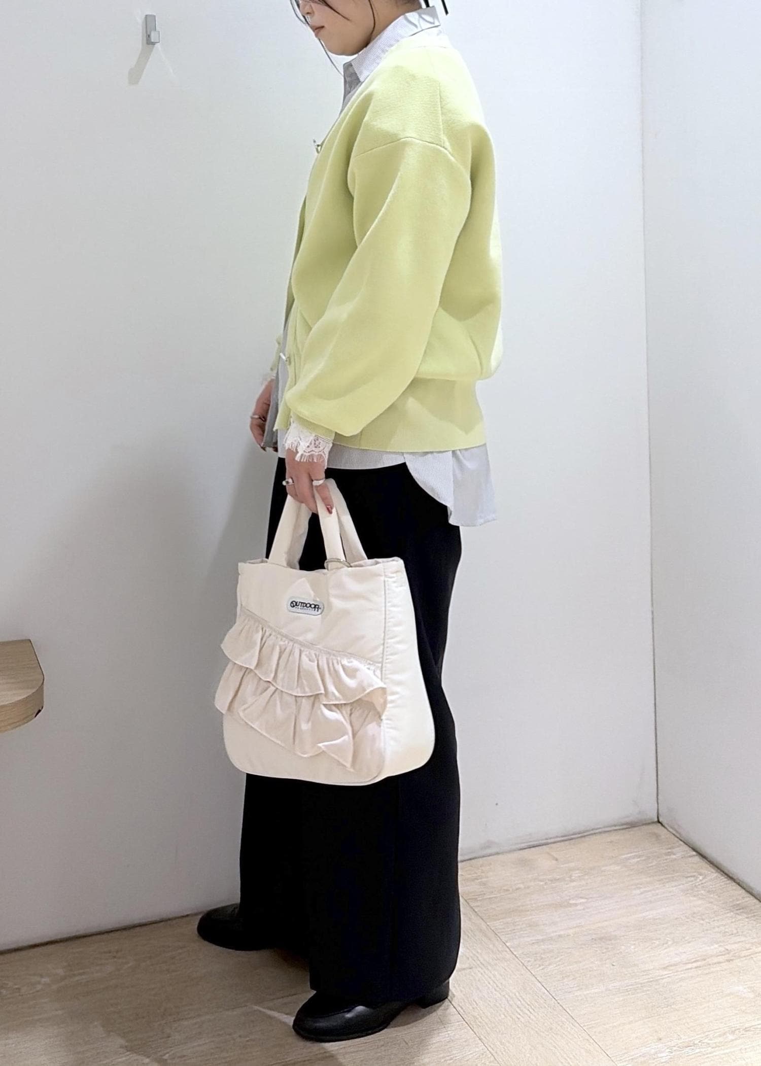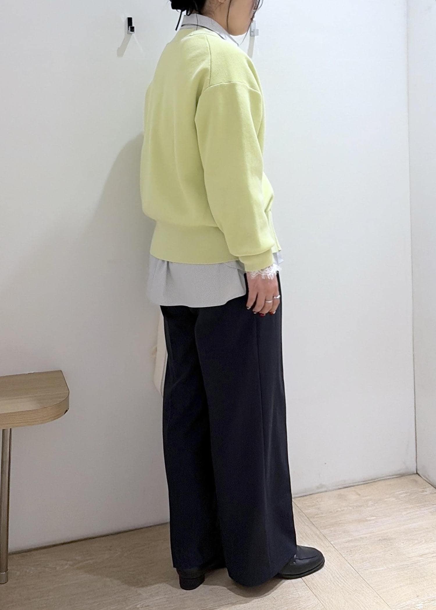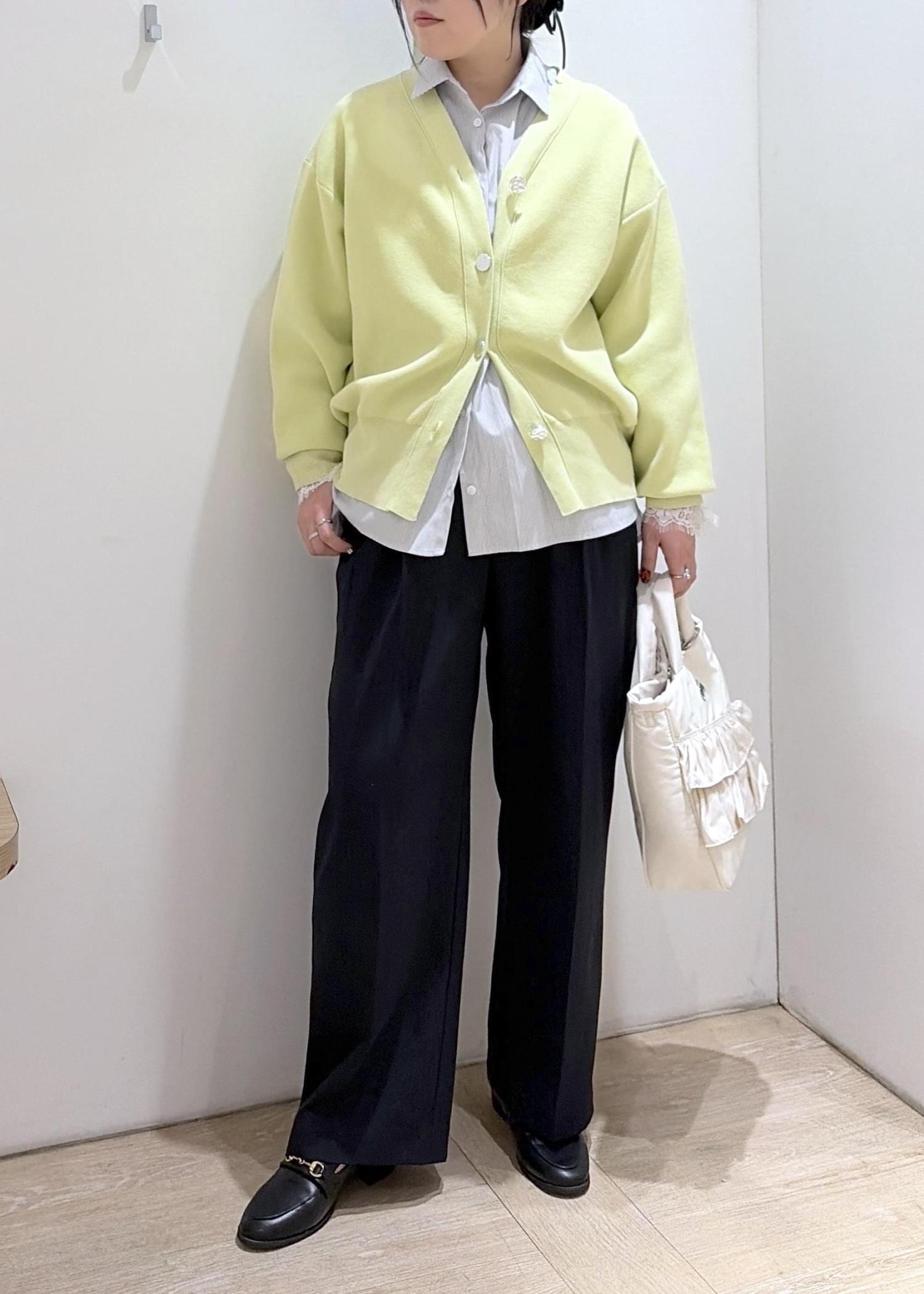 ライムグリーンのカーディガンがポイントです♪