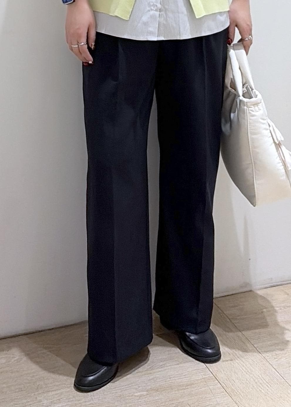 脚のラインを拾いにくく、スラッと見えやすいシルエットです。