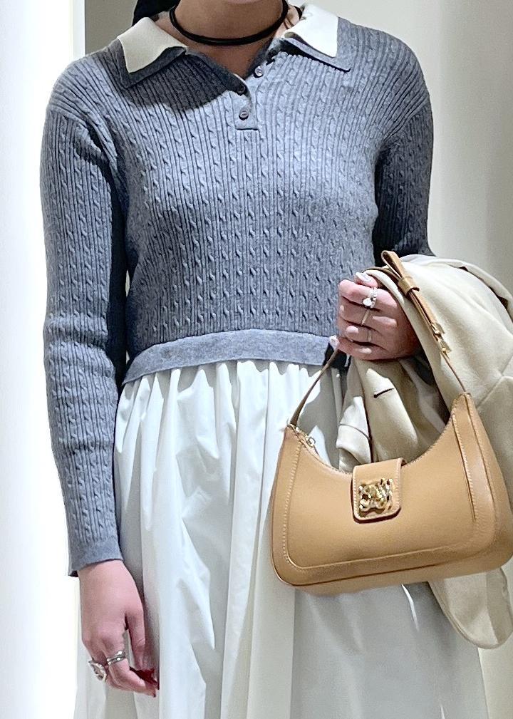 VISダブルカラーポロニットドッキングワンピースライトグレー / F¥8,899レビュー柔らかい素材感のニットで着心地がいいです。