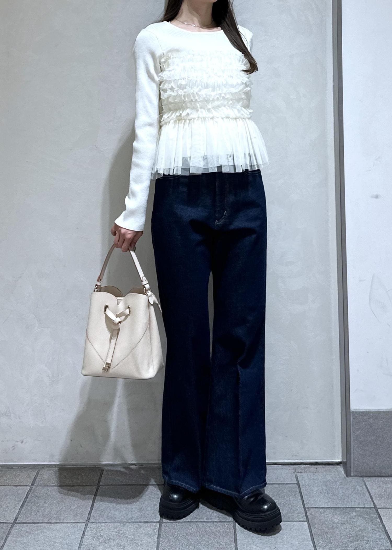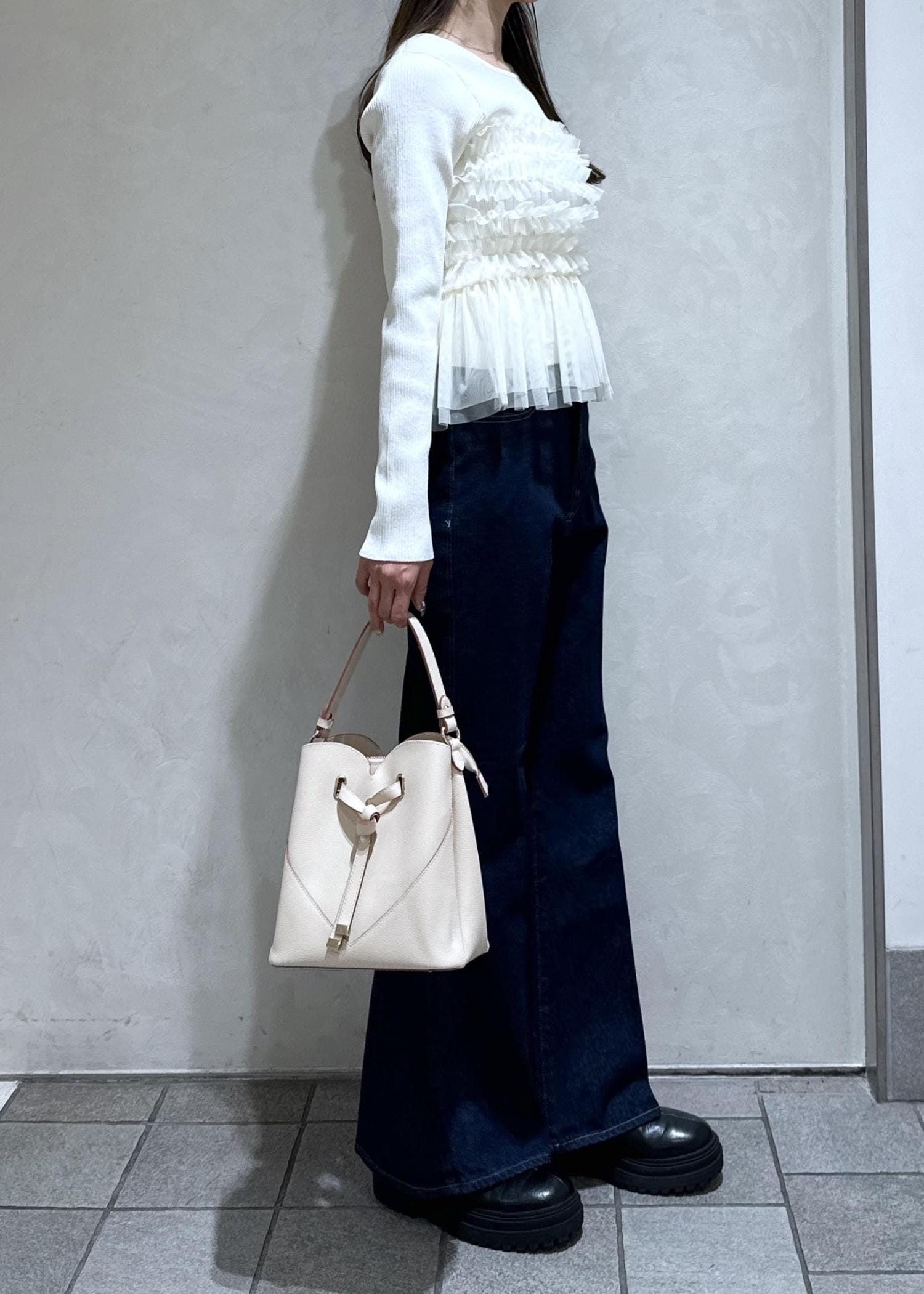 2BUY10%OFFVISチュールフリルドッキングニット/イージーケアオフホワイト / F¥6,589レビュー丈間は短めなのでスタイルup効果◎チュールのデザインが華やかなので一枚で着映えします♡