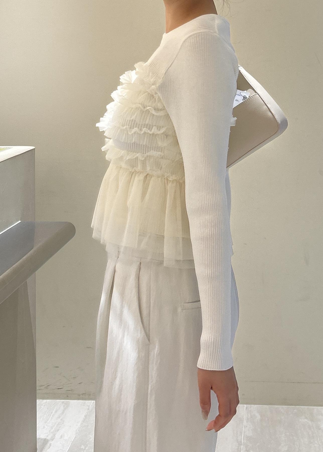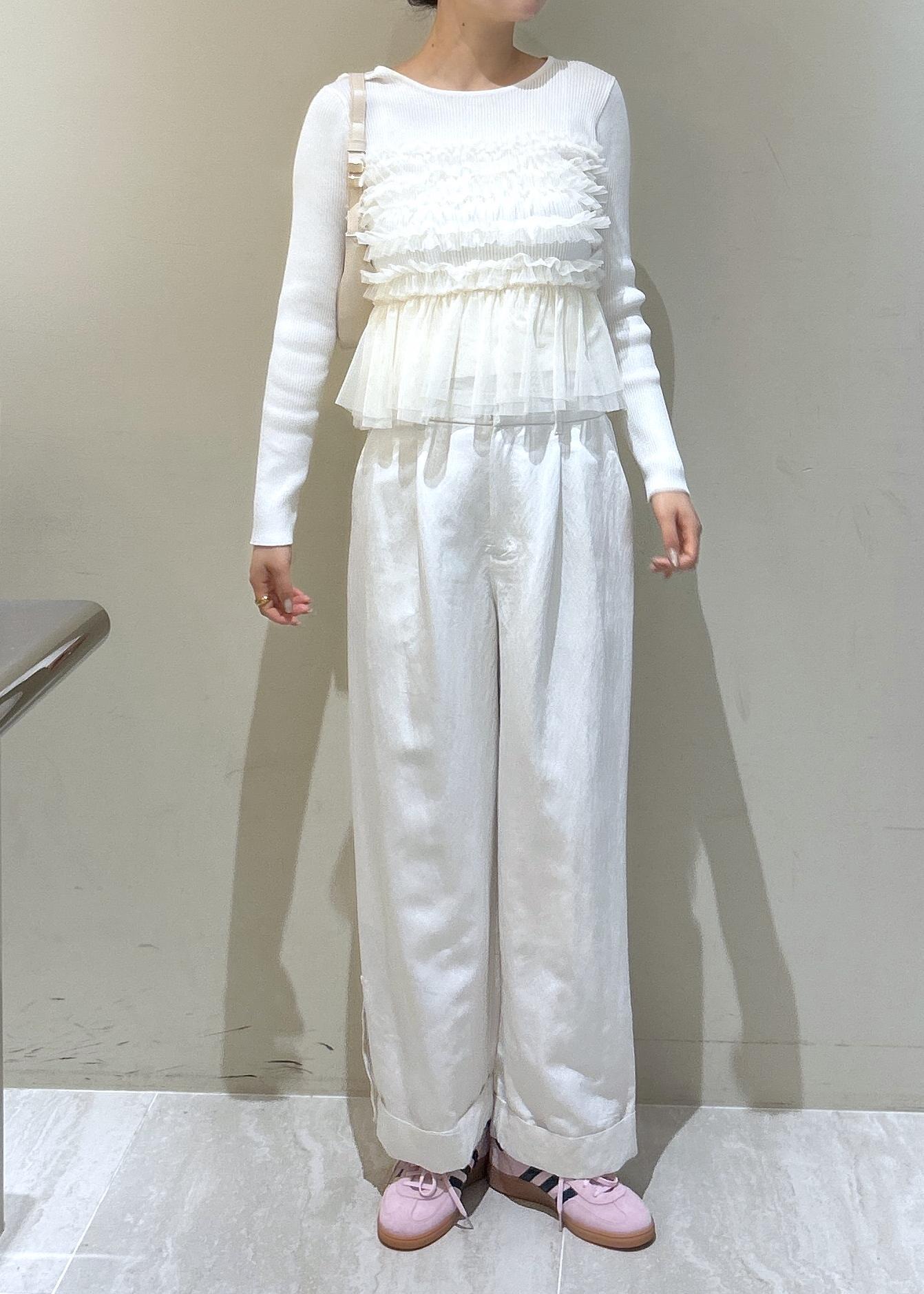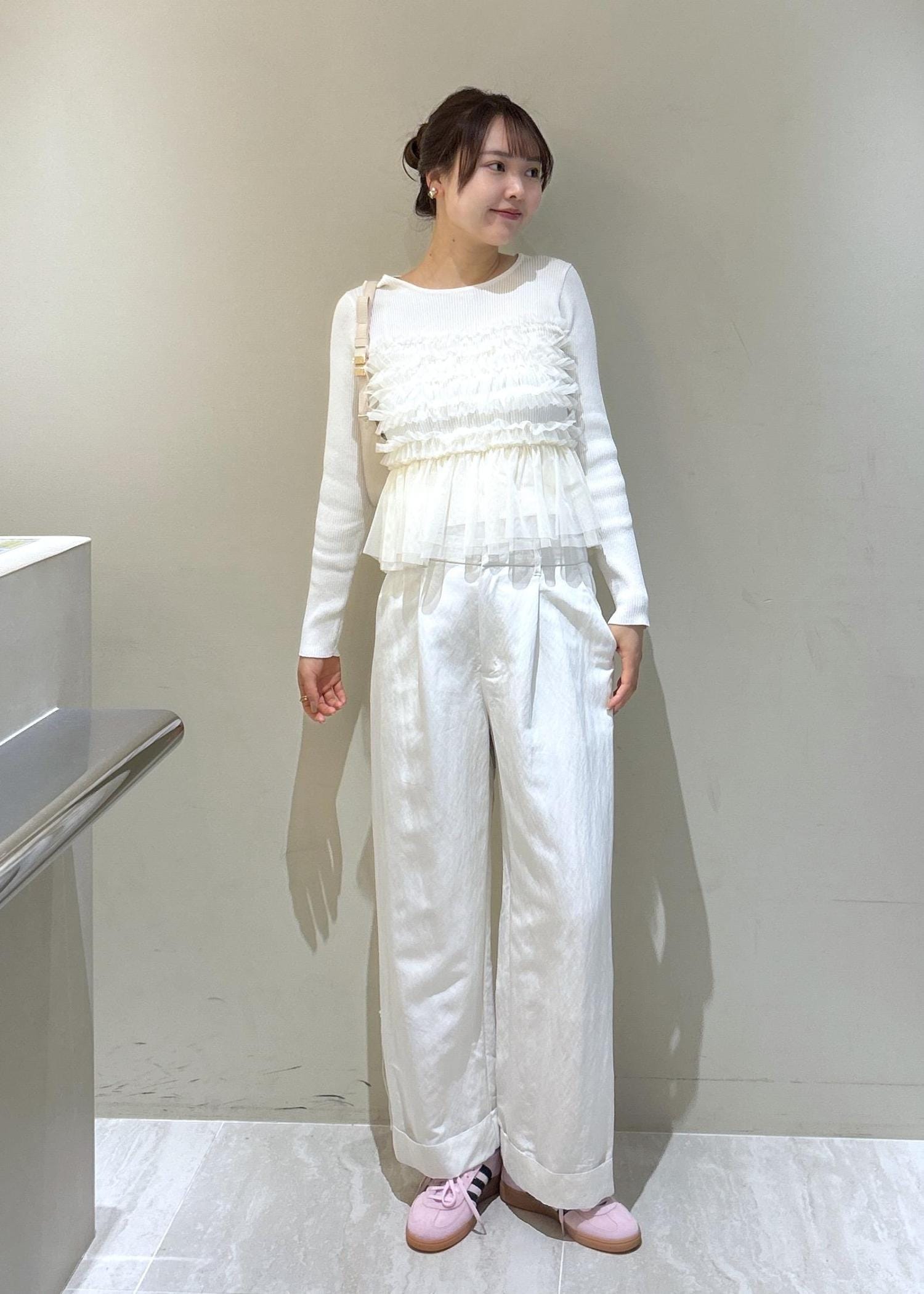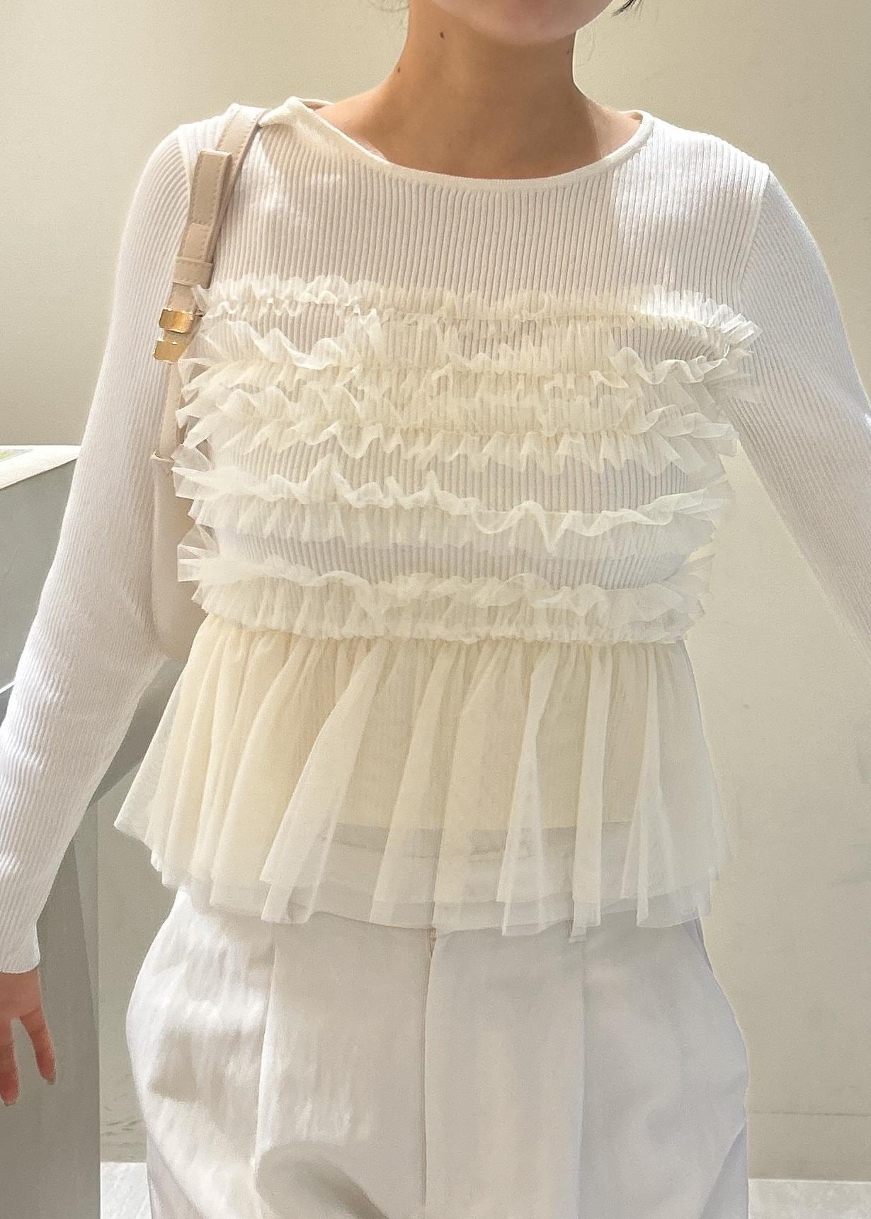 2BUY10%OFFVISチュールフリルドッキングニット/イージーケアオフホワイト / F¥6,589レビュー素材、生地▶︎薄手で柔らかい素材感