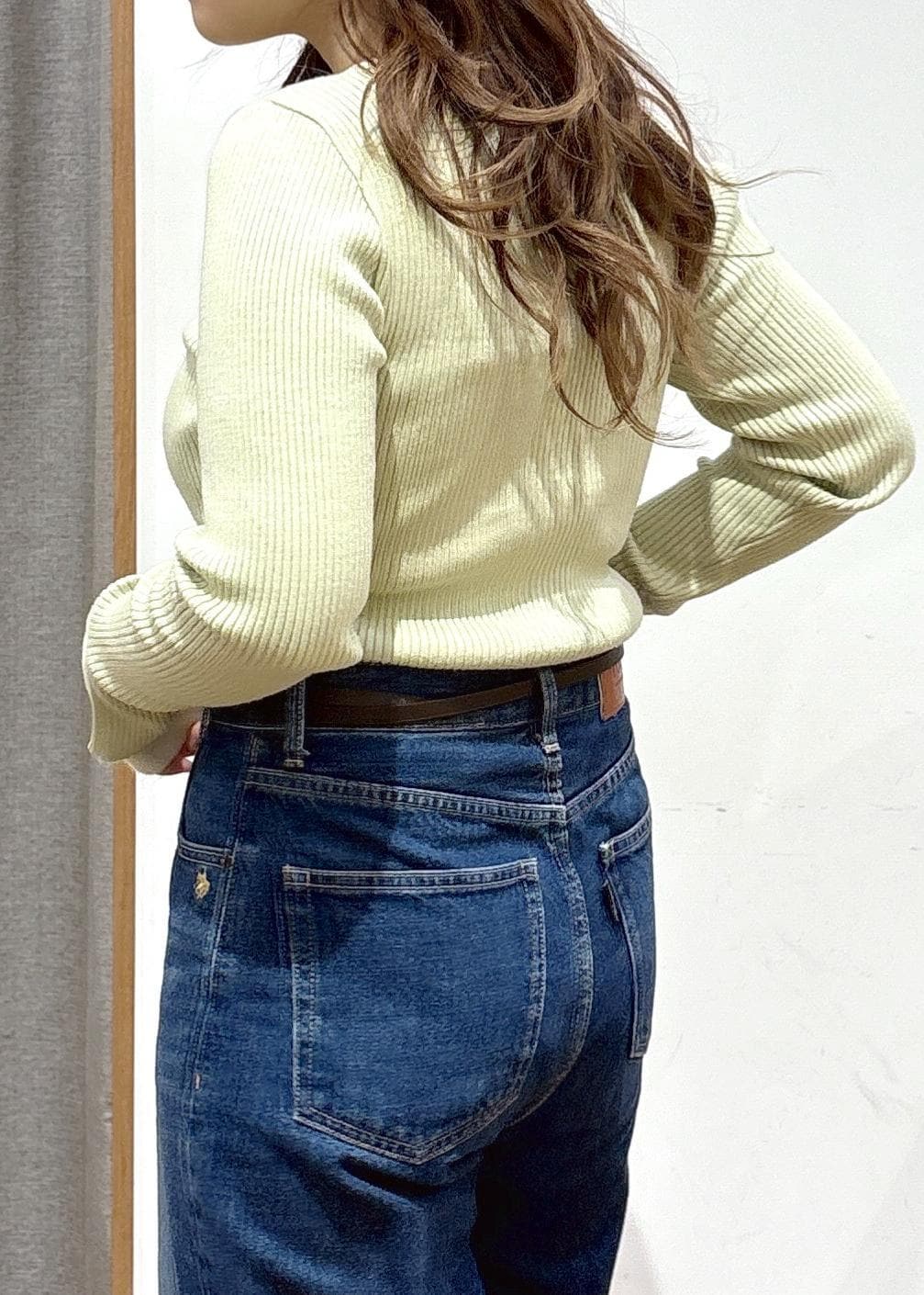 ウエストにトップスをインする場合や、短丈のトップスと合わせる場合はベルトがあると引き締まると思います! -