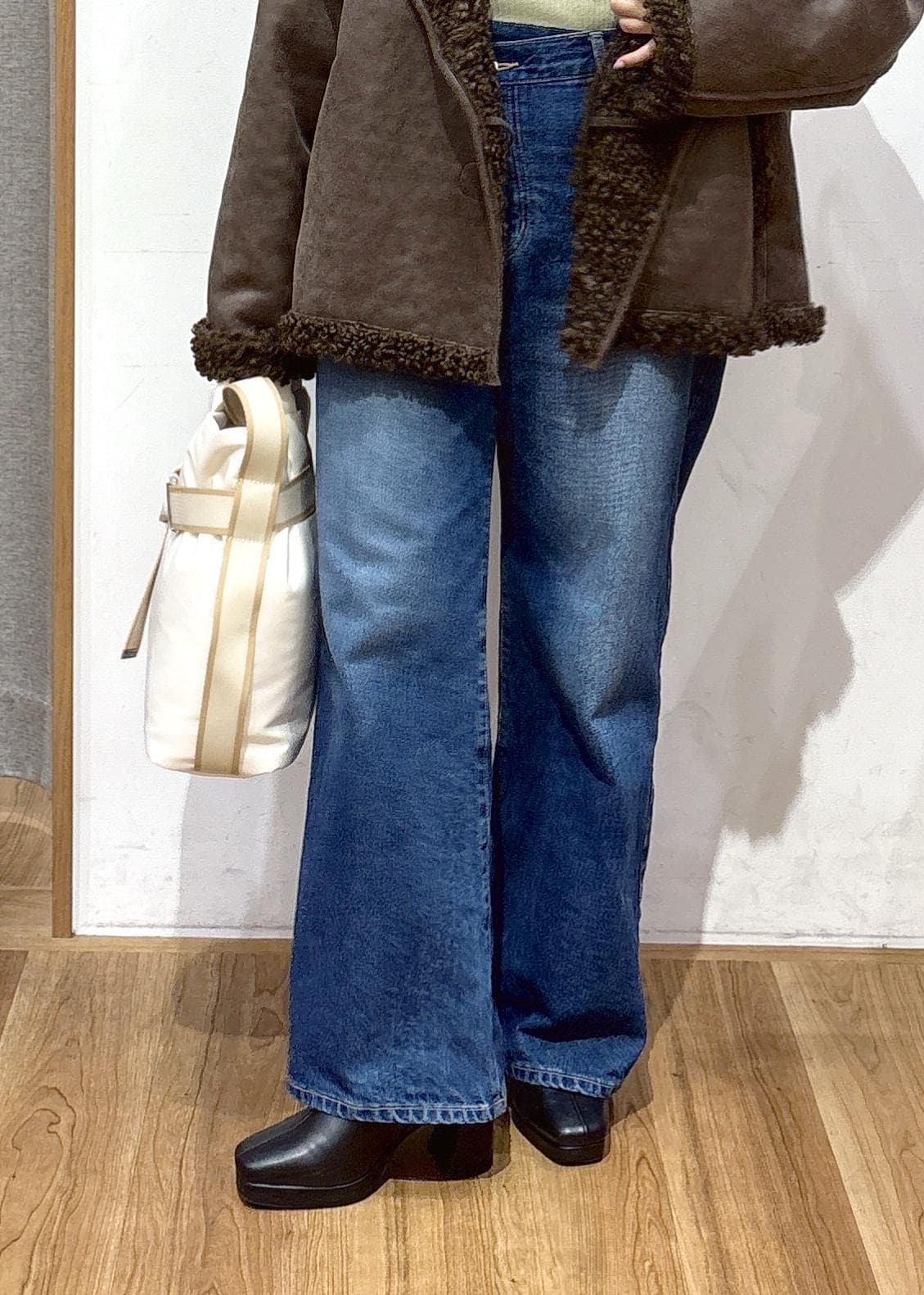 むっちりとした厚みがあるので、中から厚手のニットを合わせると少しだけ着膨れはします。
