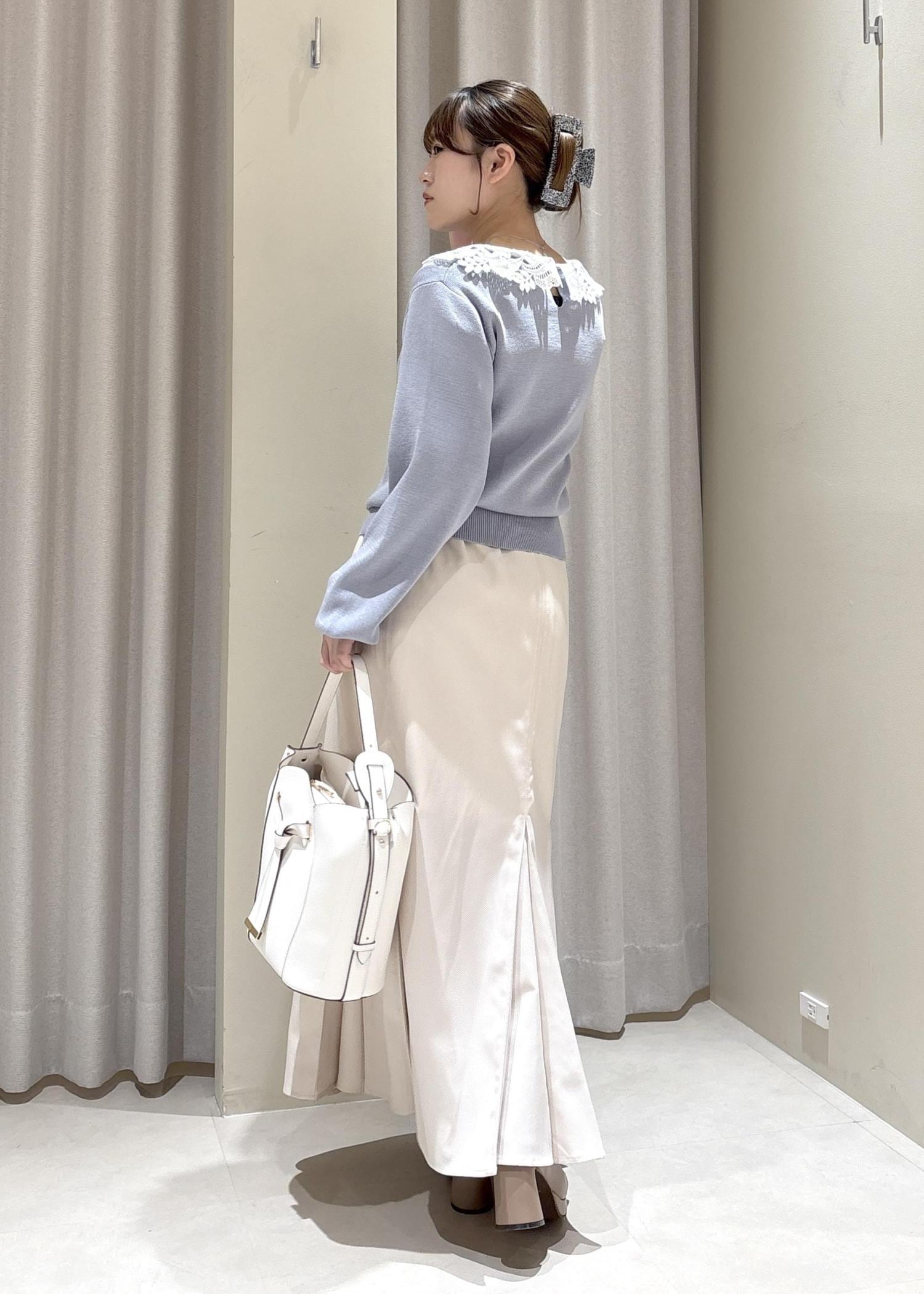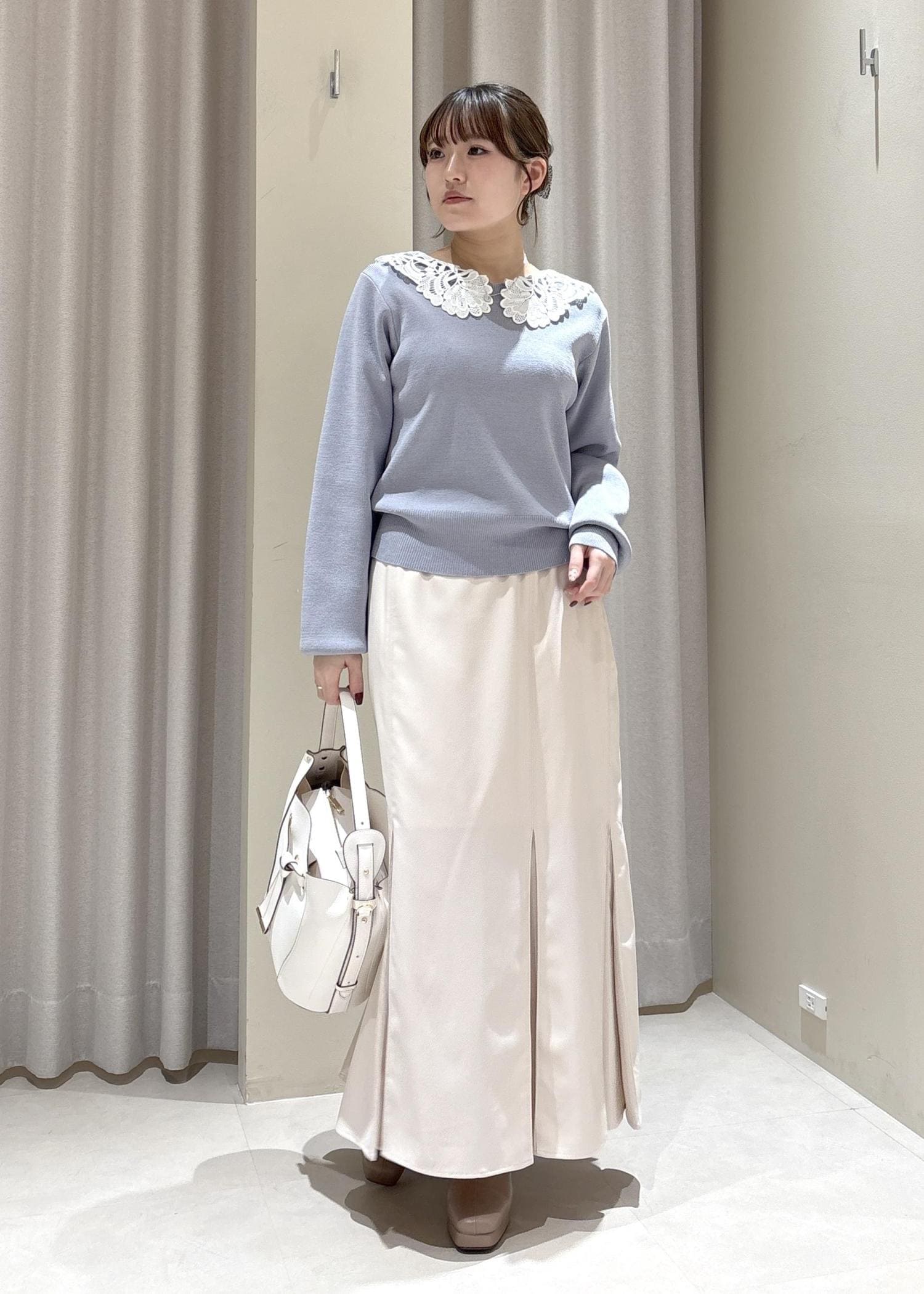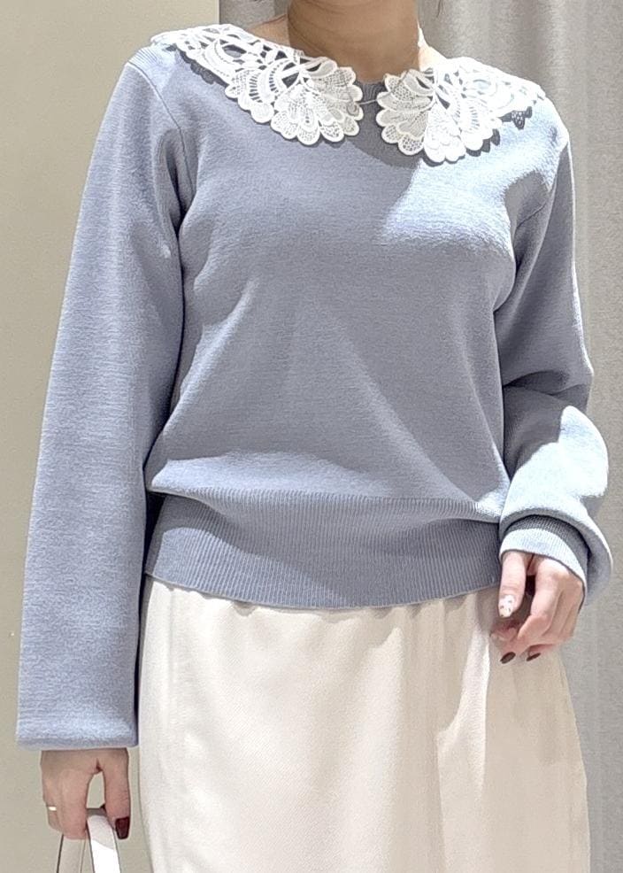VISレースカラーニットプルオーバー/イージーケアブルー系 / F¥6,589レビューレースの丸襟で女性らしいデザインになっています。カラーも品のあるカラーなので、スカートでもデニム、パンツでも合わせやすいです。薄めの生地なので春に使いやすいです。