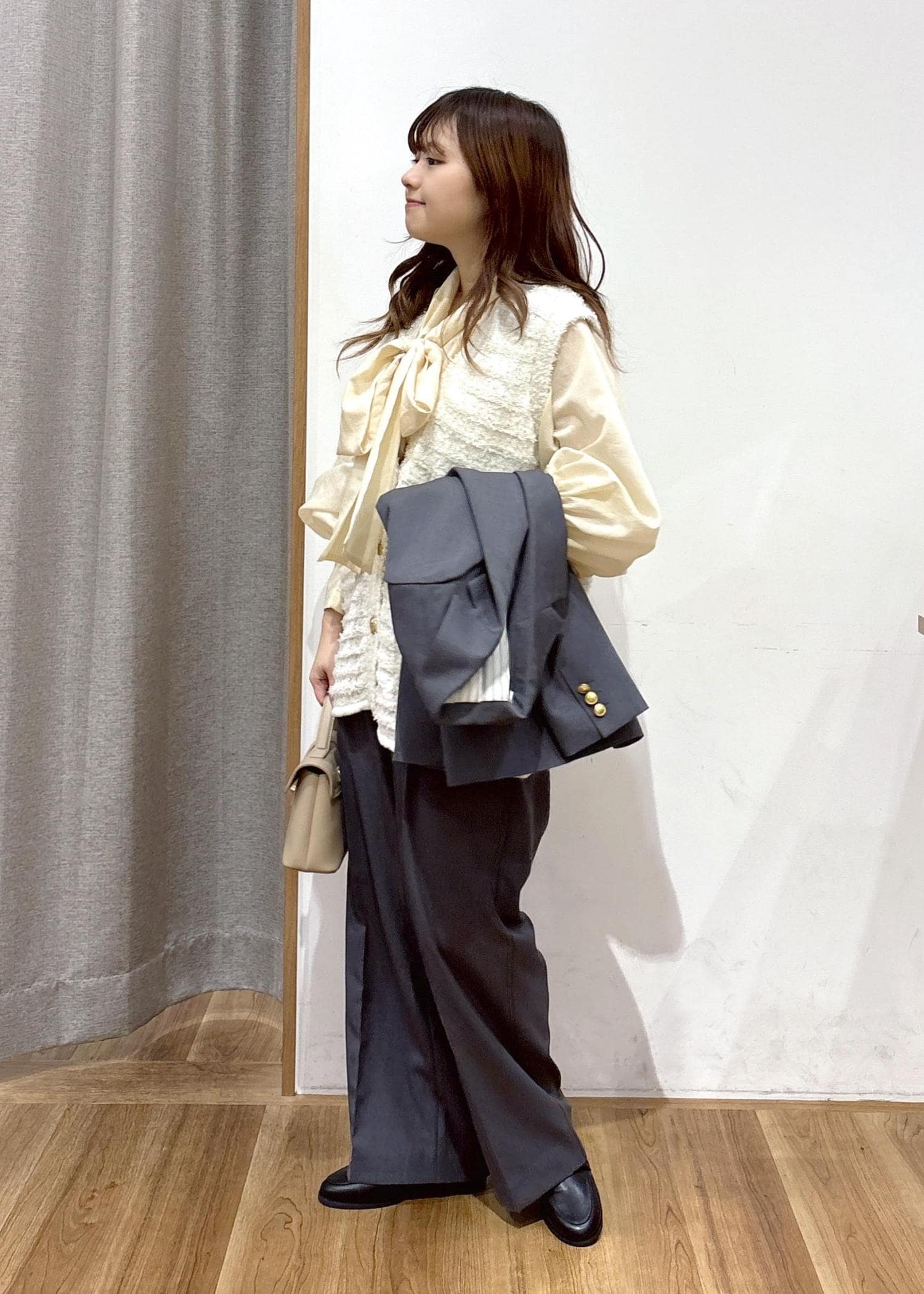 すっきりとしたサイズ感のボトムやジャケットは低身長の方でも着やすく、また普段使いにもピッタリです◎