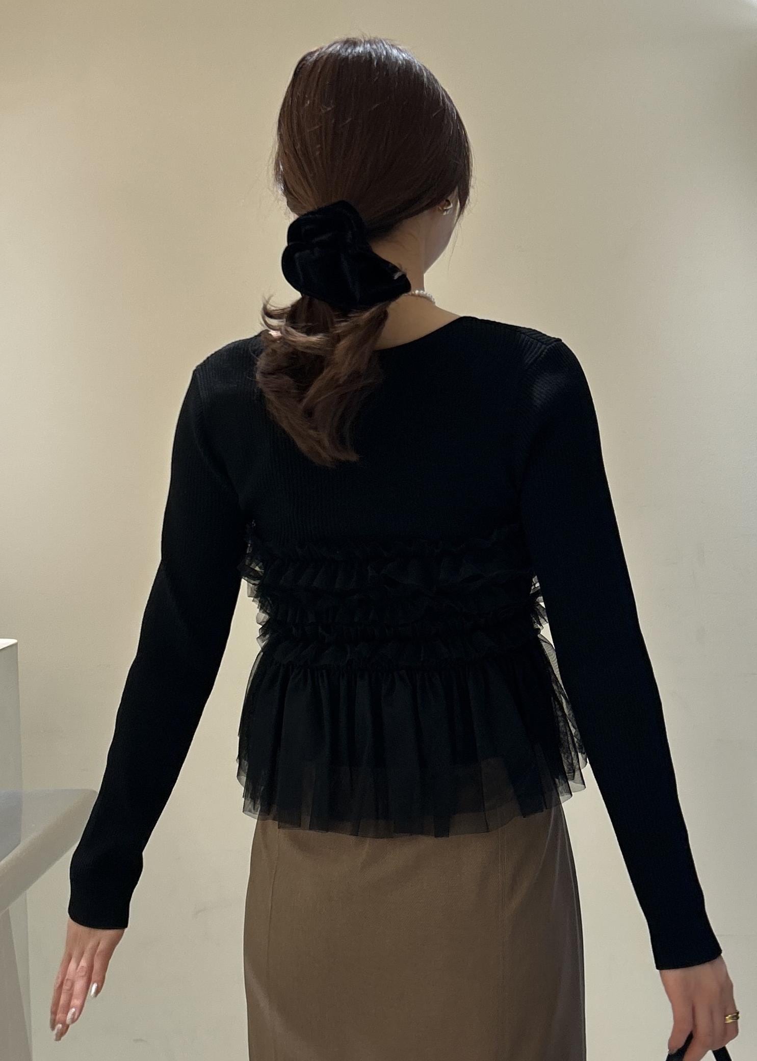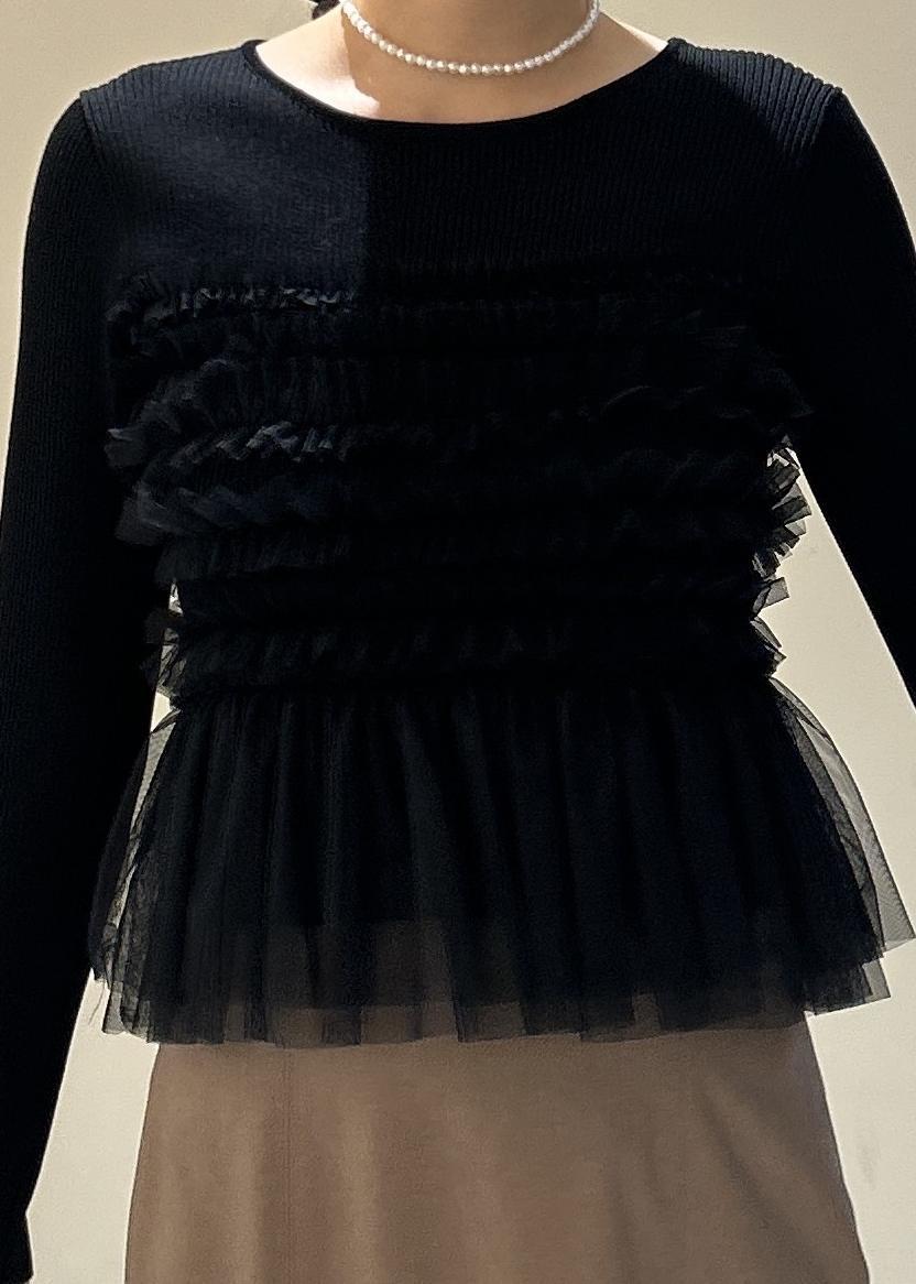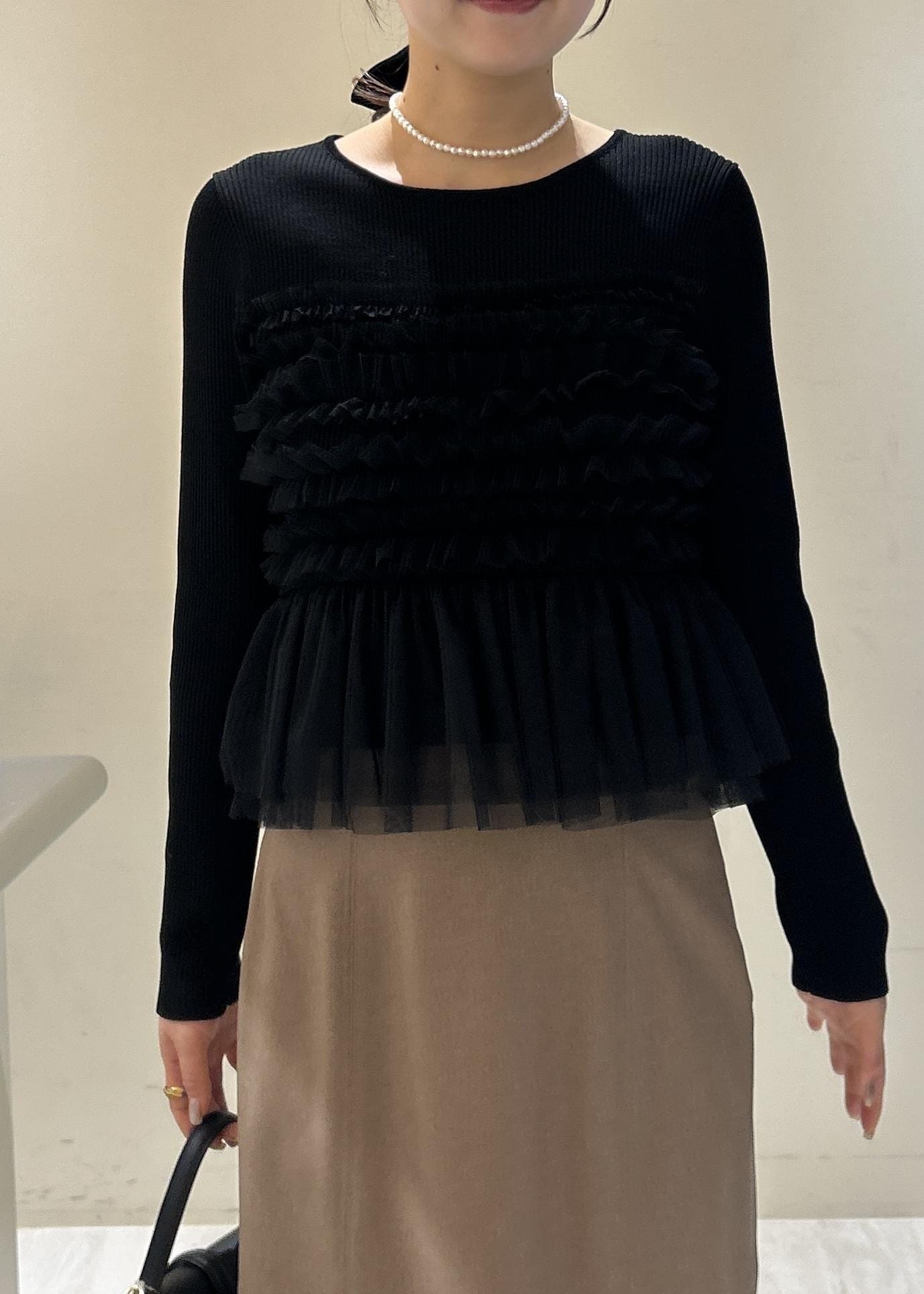 2BUY10%OFFVISチュールフリルドッキングニット/イージーケアブラック / F¥6,589レビュー素材、生地▶︎薄手で柔らかい素材感