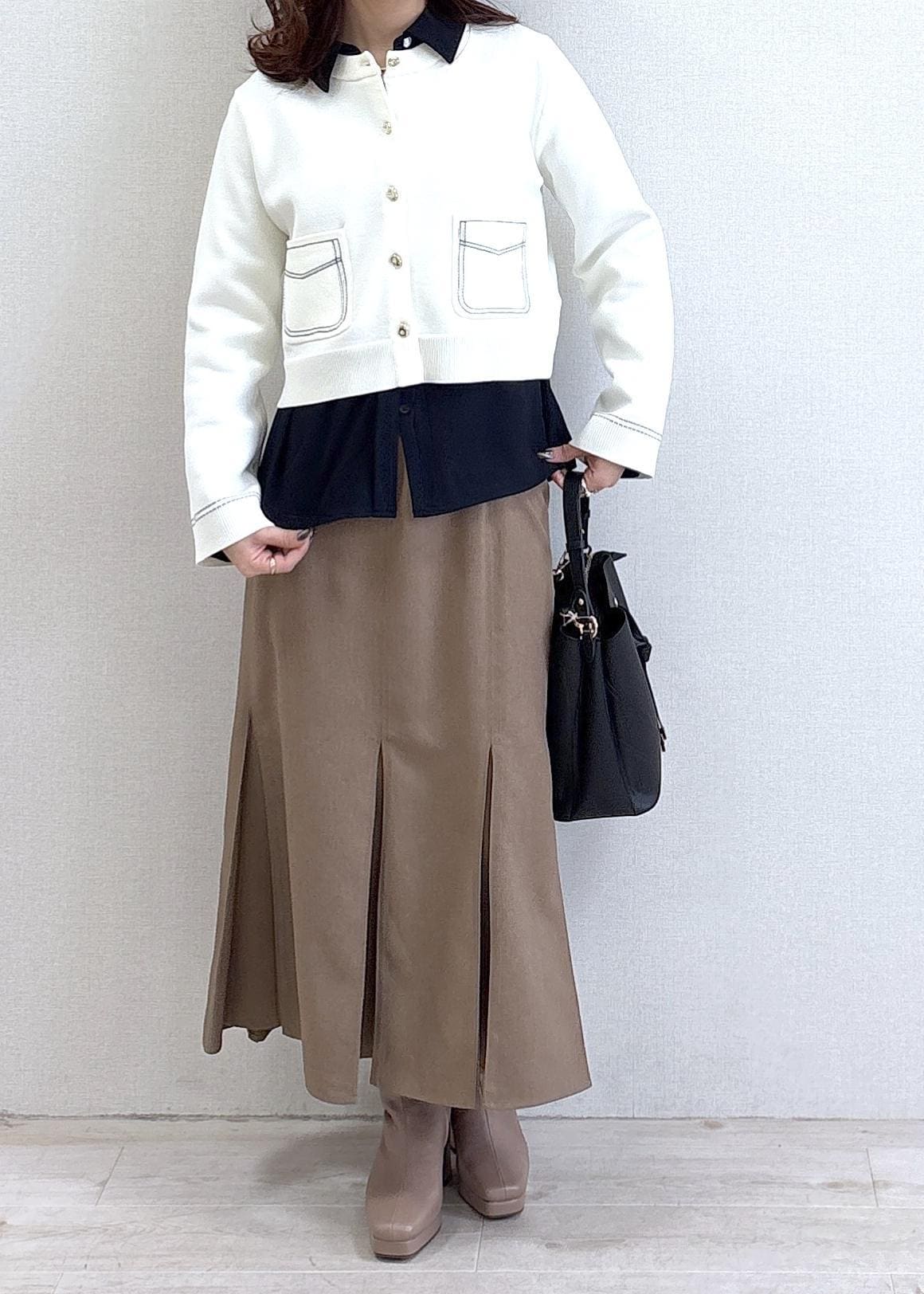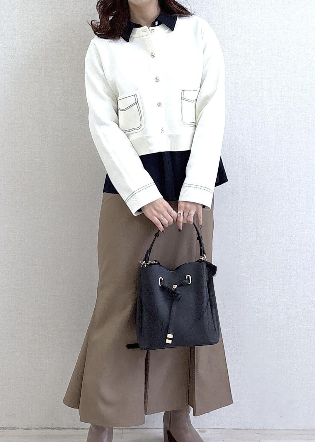 ニットやカーディガンのインナーとして着るだけで、コーデにメリハリときちんと感をプラスしてくれます。