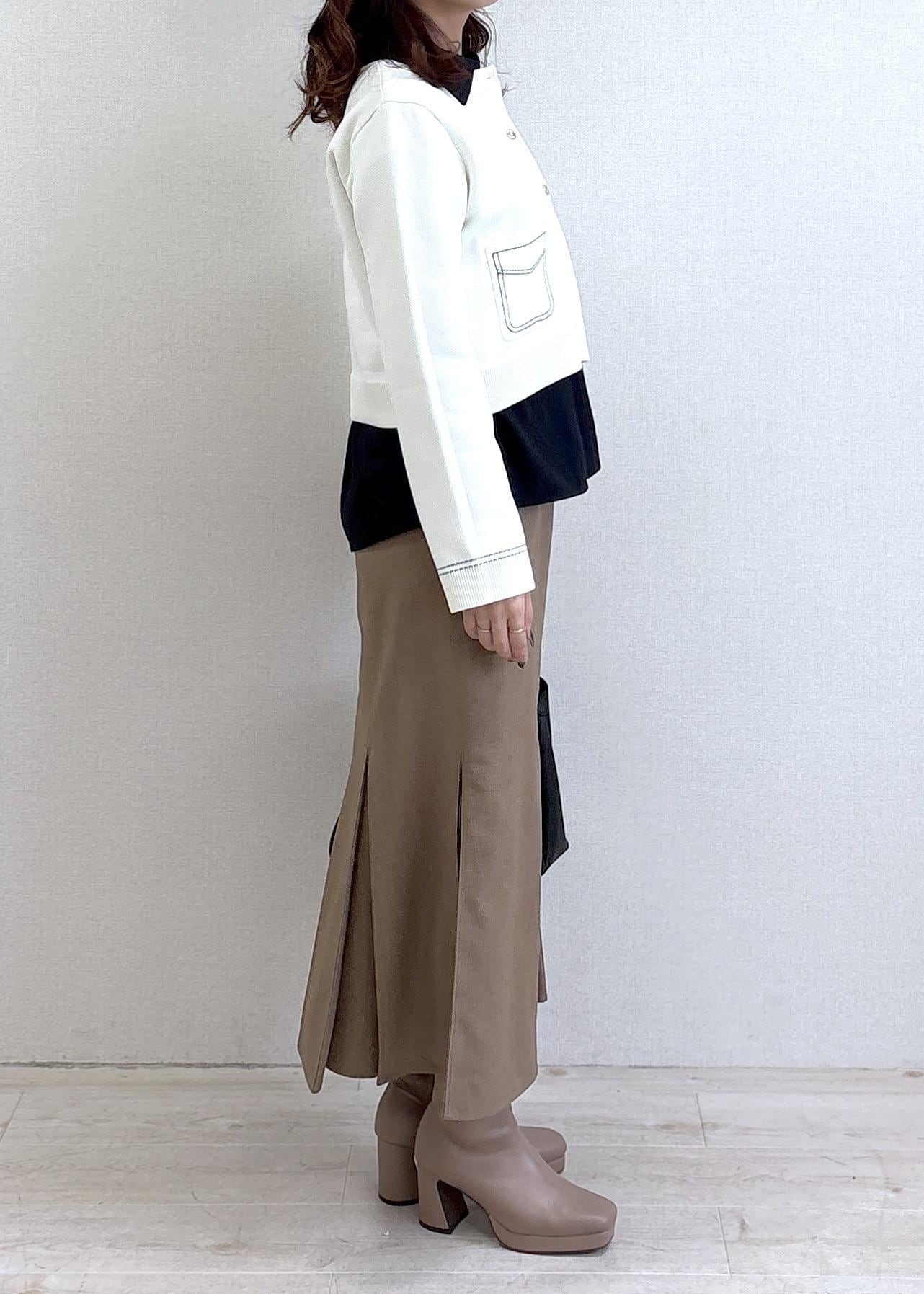 短め丈なのでボリュームのあるボトムともバランスが取りやすく、スタイルアップ効果も期待できます。 -