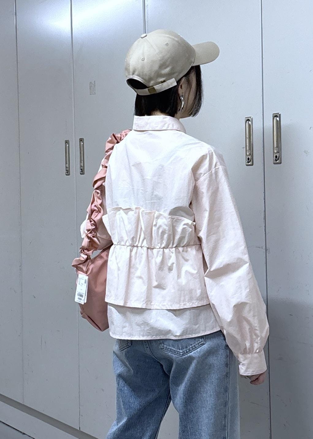 OUTDOOR PRODUCTS別注バッグもピンクを合わせて、デニムとピンクの春らしいコーディネートに♩