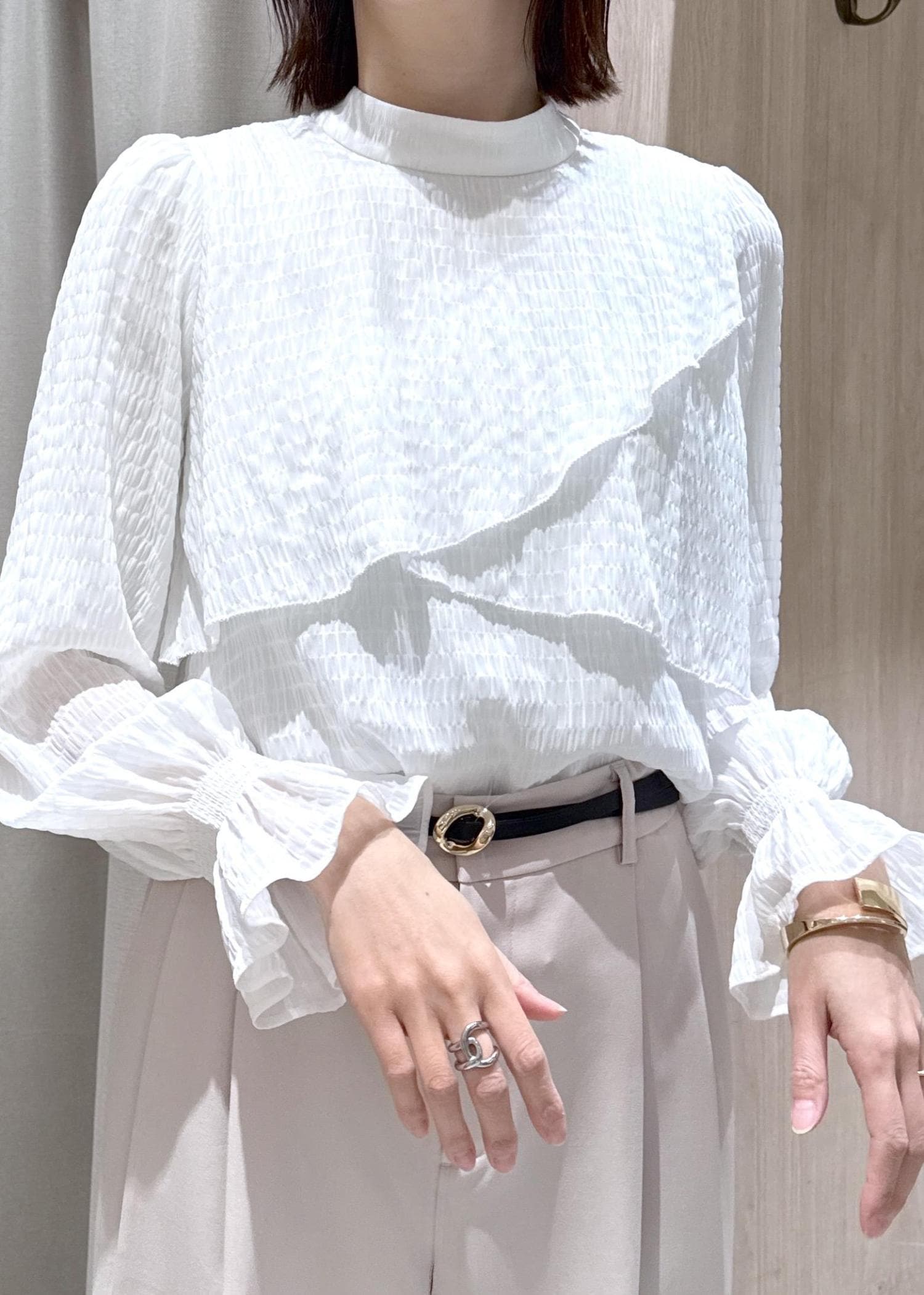 アシンメトリーなフリルが1枚で存在感のあるブラウスです!