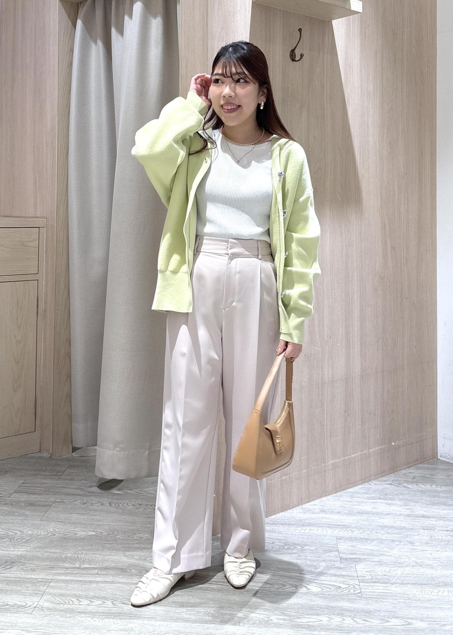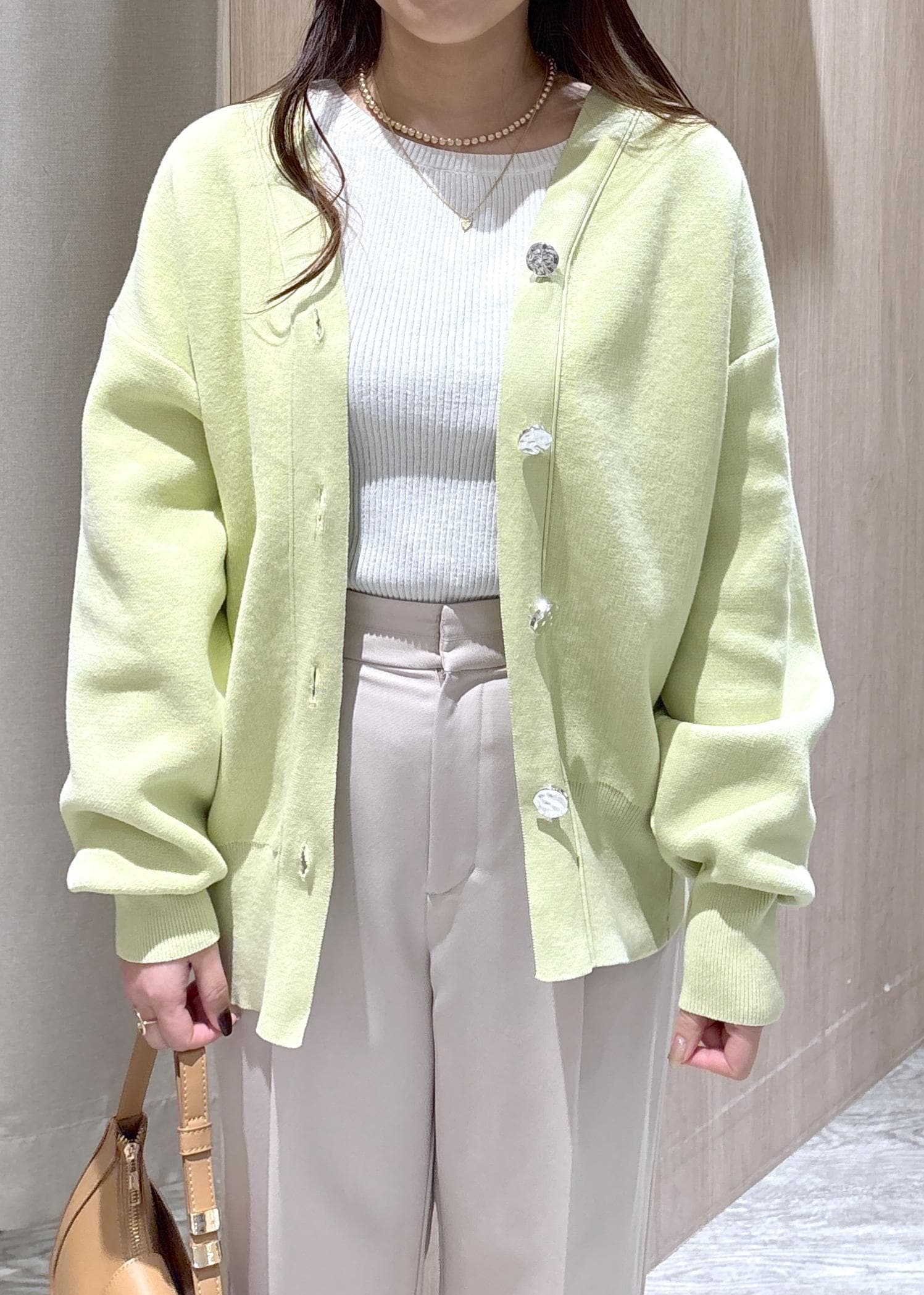 大きめのカーディガンはラフに羽織っていただけるので、肌寒い季節から春先まで使っていただけますよ!