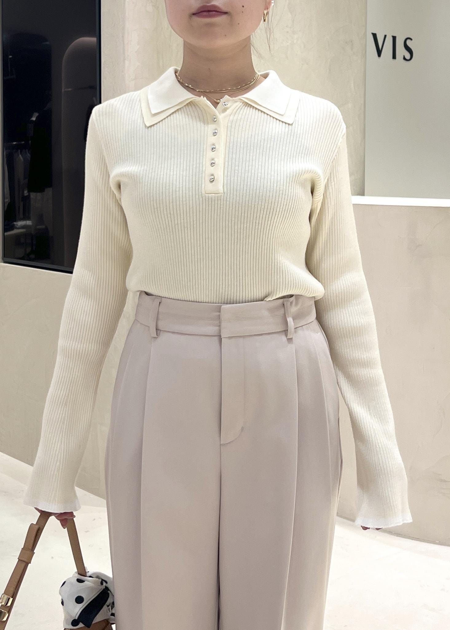 VISダブルカラーポロニットトップスオフホワイト / F¥5,489レビュー秋冬で大人気だった