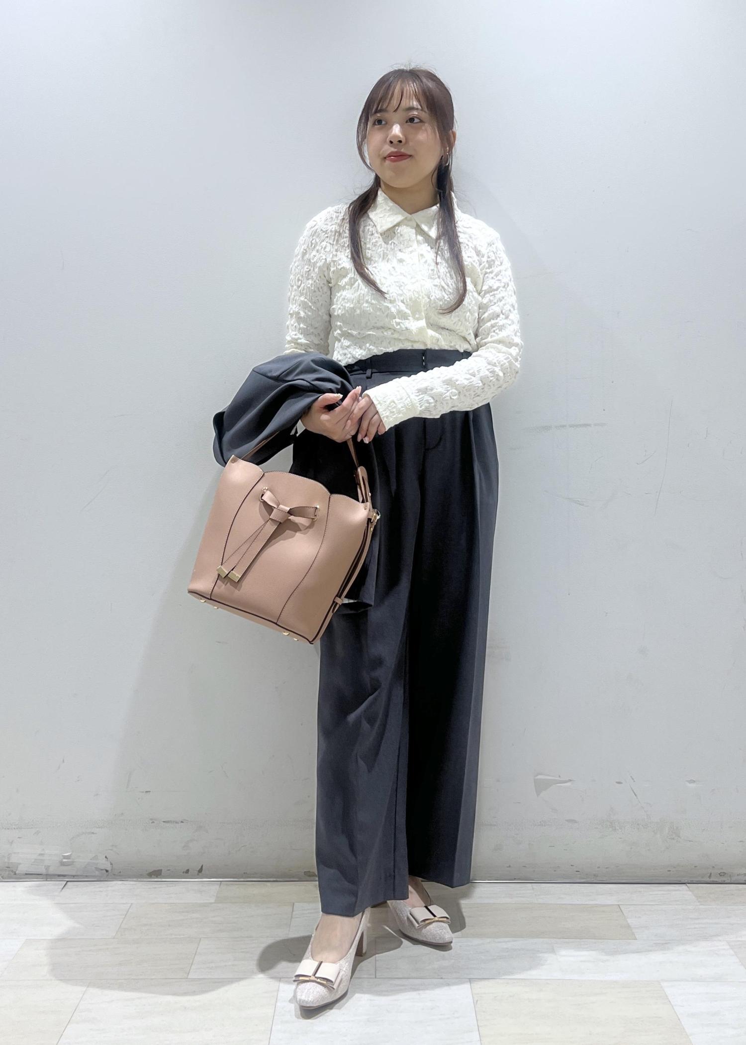 間口が広くなっており、これ1つでしっかり容量が入るサイズ感です。華やかなシルエットがとてもきれいなバッグです♪ -