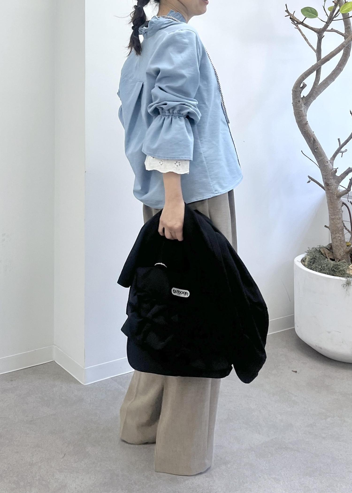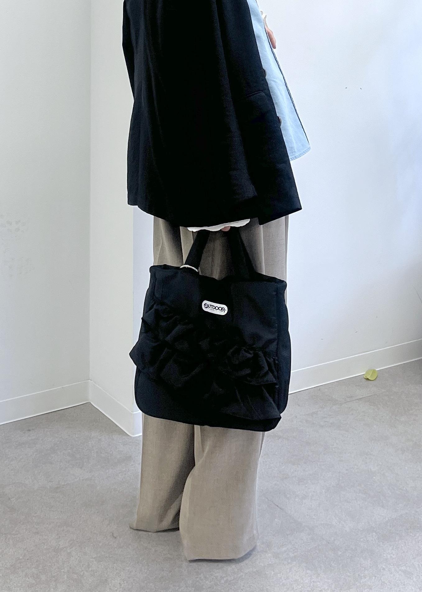 予約VIS【OUTDOOR PRODUCTS】VIS別注2WAYフリルトートバッグブラック / F¥8,580レビューoutdoorとのコラボバッグです。フロントのフリルがとっても可愛い!持つだけでコーディネートのポイントになります。ペットボトル、長財布、ポーチなどなどしっかり入れられます。大きすぎることなくほどよいサイズ感で◎小柄さんでもバランスよく待てます。