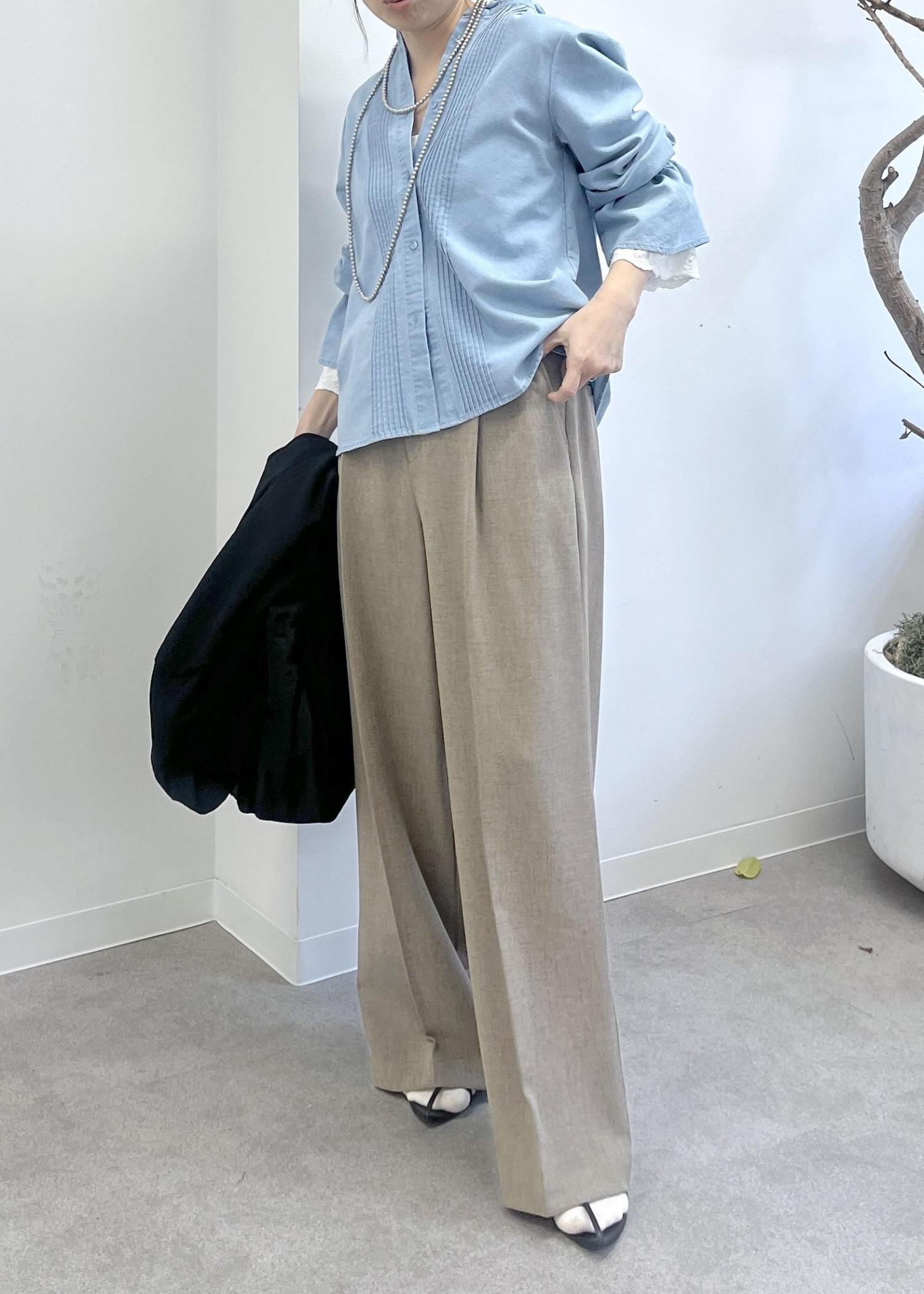 予約VISサマーツイードリボンベルトパンツ/UVケア・イージーケアベージュ系 / M¥6,589レビュー152cmでサンプルのためMサイズ着用し、着丈はペタンコ靴ですと床についてしまいました。ウエストも緩めでしたので、通常のSサイズがよさそうです。サマーツィード素材が新鮮!夏まで履きたくなるようなサラッとした涼しげなパンツ。オチ感がありストンっとキレイなストレートシルエットがどんなスタイリングにもあわせやすそうです。シワにもなりにくいのでヘビロテ間違いなしです!