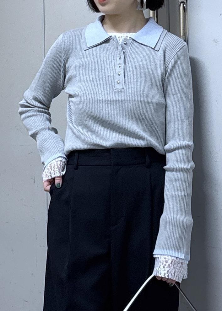 VISダブルカラーポロニットトップスライトグレー / F¥5,489レビュー人気トップスの春バージョンです!