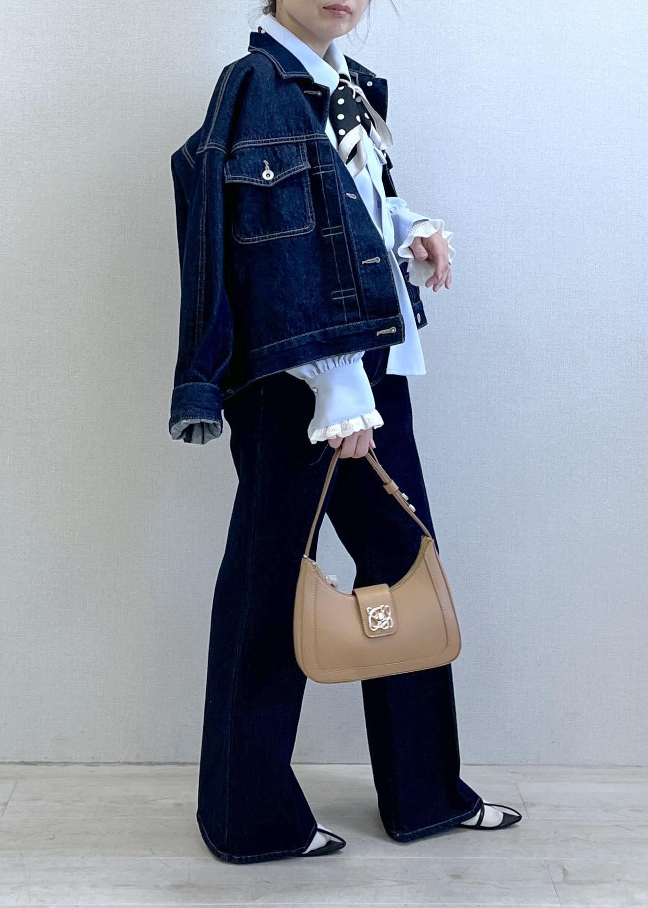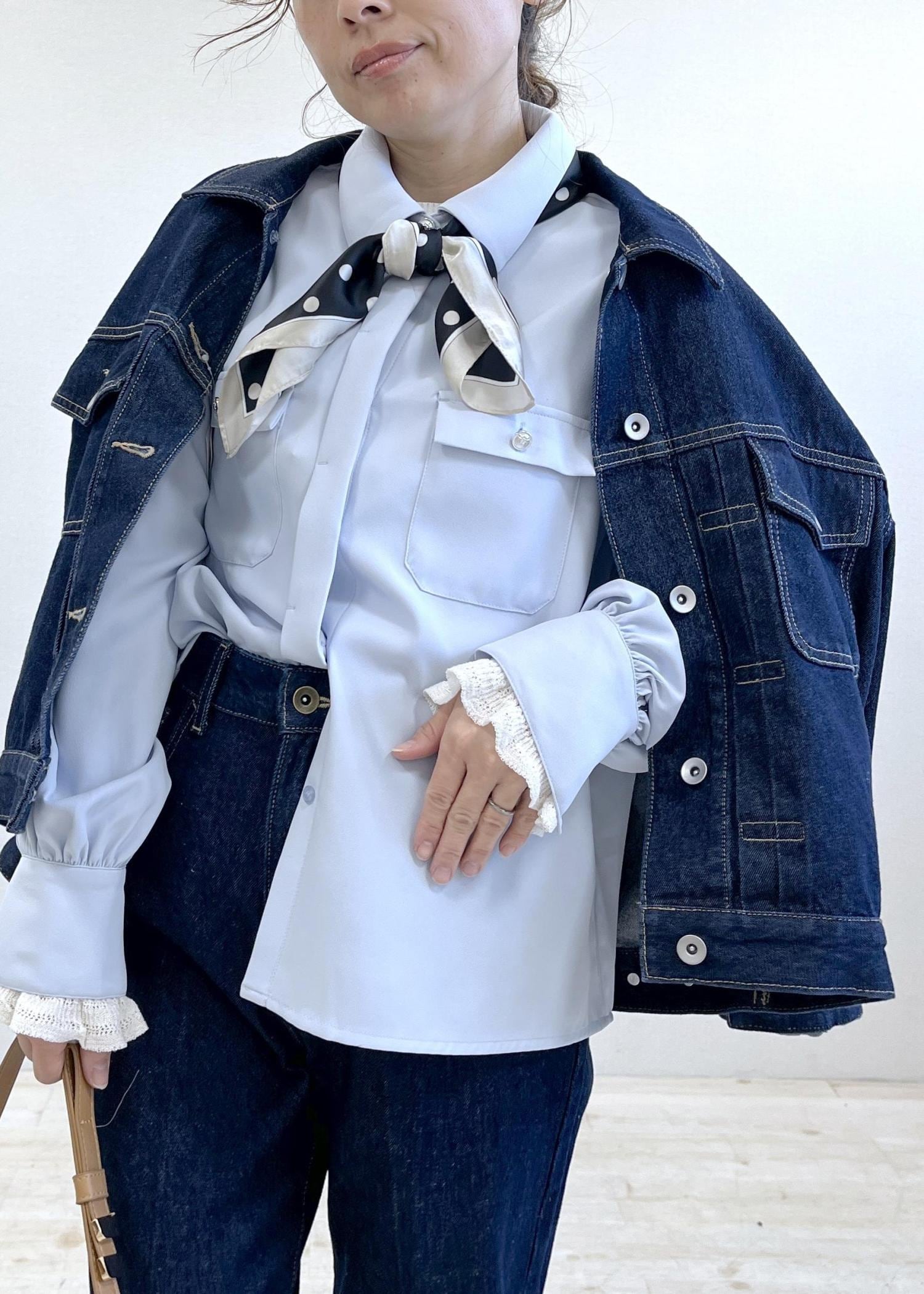 2BUY10%OFFVISボリュームスリーブデニムジャケットネイビー / F¥9,999レビュー152cmでFサイズ着用し、着丈はお尻に少しかかるくらいの丈。ゆったりオーバーサイズな楽ちんアウター。程よくハリ感のあるデニムですが、かたすぎることなく着心地◎いつもオーバーサイズのデニムアウターは着られてしまうことが多いのですが、バランスとりやすく後ろに抜いて着るのがお勧めです。スカートに、ワンピースにと春先のアウターとして大活躍しそう!