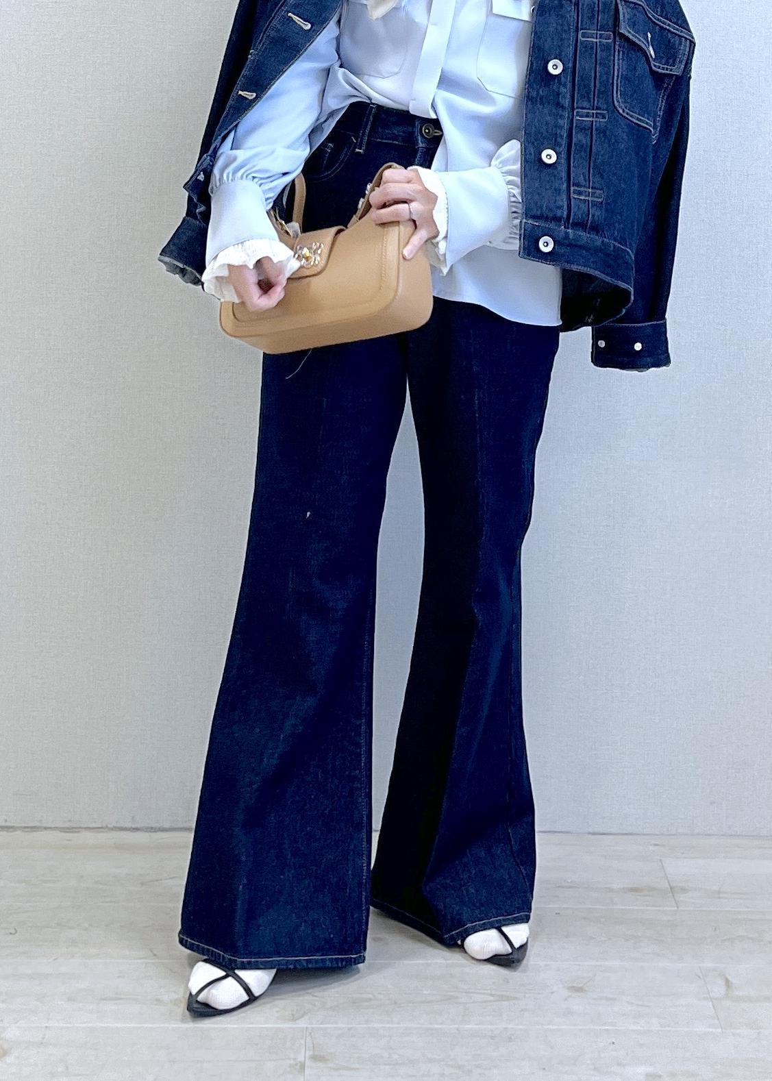 2BUY10%OFFVISフレアシルエットデニムパンツネイビー / M¥8,899レビュー152cmでMサイズ着用し、ペタンコ靴でも床につきませんでした。ウエストと太もも周りにややゆとりがあり、寒い時期はタイツを重ねても大丈夫そうなサイズ感です。もともと細身のシルエットなので、サイズアップしても違和感はありませんでした。ウエストジャストでピッタリめがお好きな方は通常のSサイズがよさそうです。今回は長めの着丈が良かったのでワンサイズUPしてます。フレアデザインで脚長効果◎