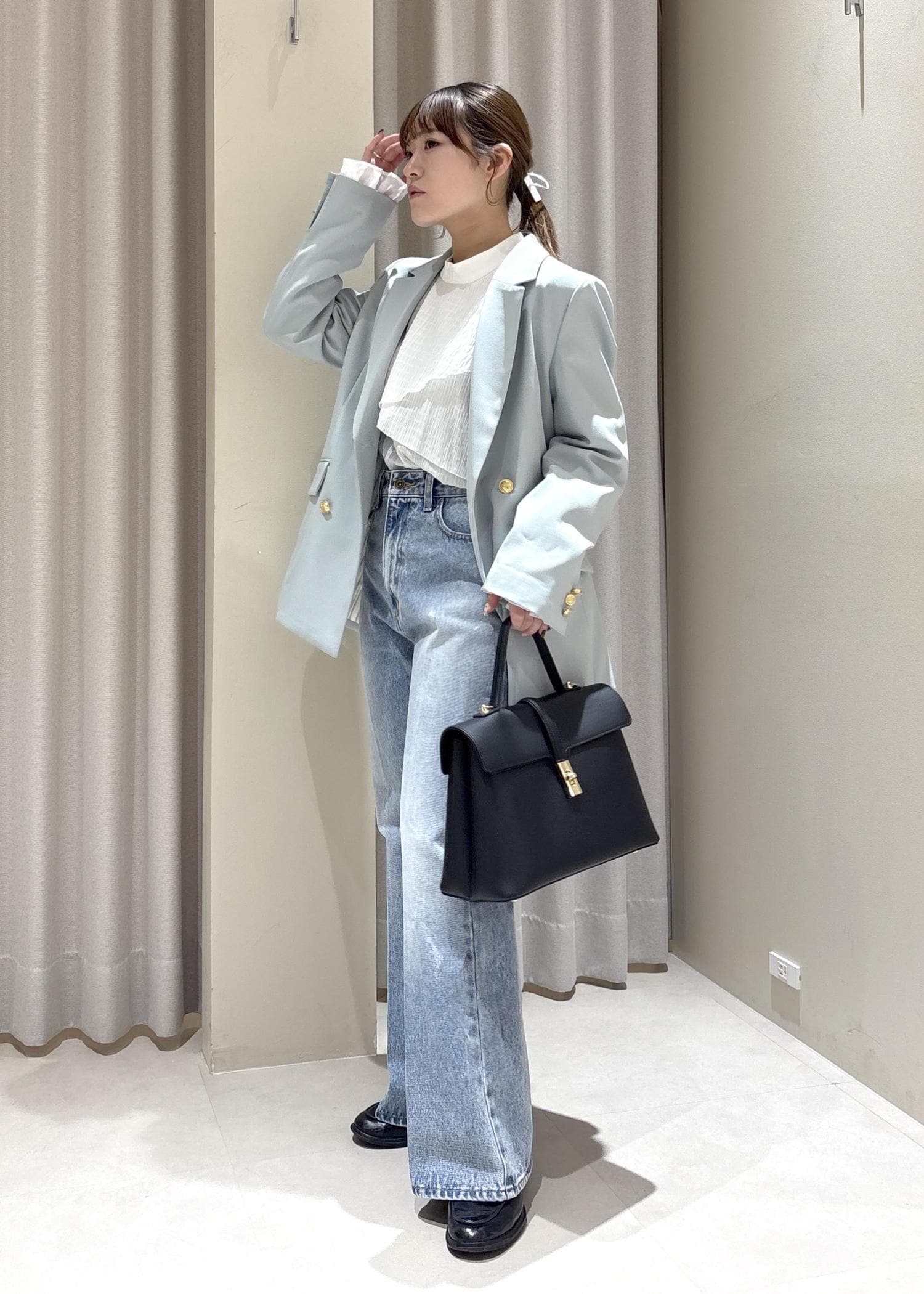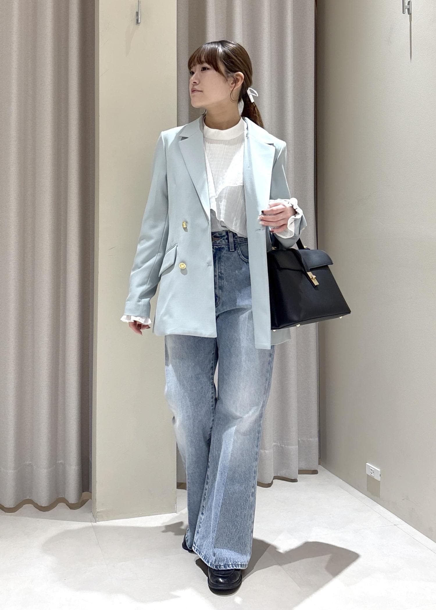 大きすぎずゆったりめのシルエットなのでオフィスカジュアルでも使って頂けます。 -