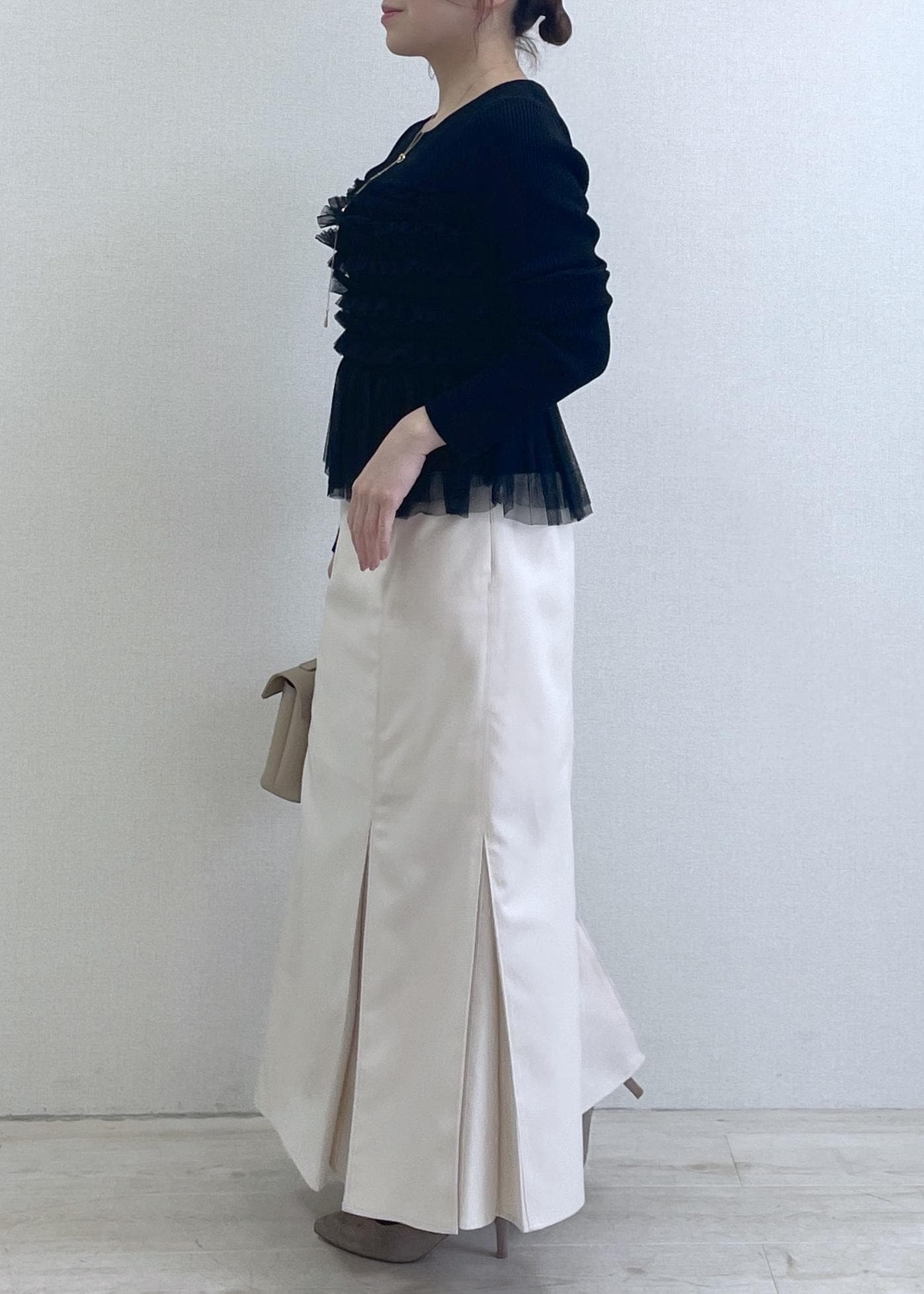 ジャストサイズで、チュールの部分が見た目ほどボリューム感がないのでスッキリ着用できます!