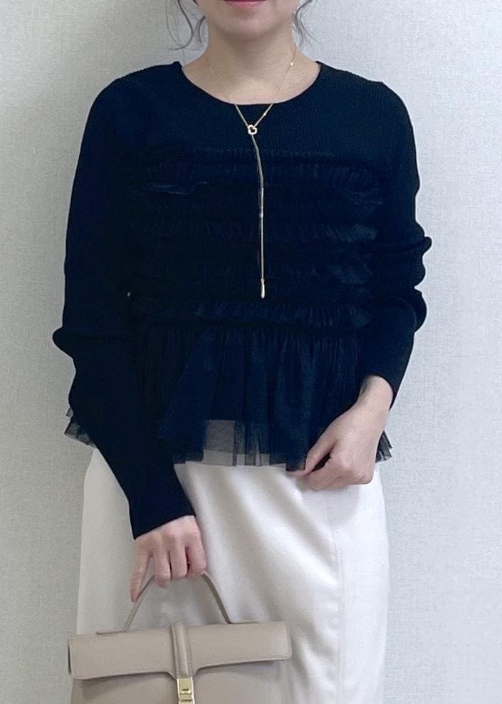 VISチュールフリルドッキングニット/イージーケアブラック / F¥6,589レビュー150cmでFサイズ着用です。