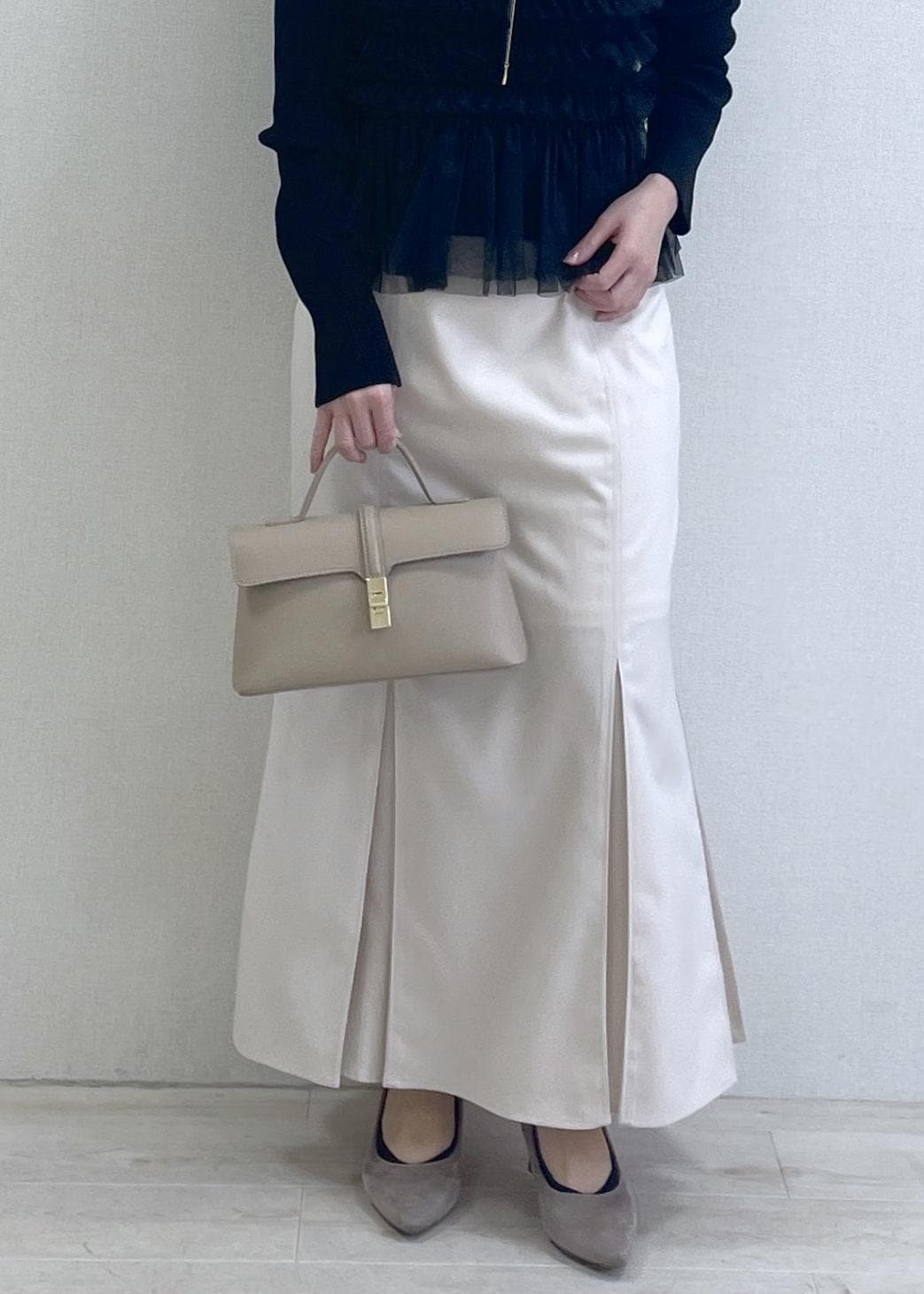 VISボックスプリーツマーメイドスカート/イージーケア・防シワベージュ / M¥6,589レビュー150cmでMサイズ着用です。