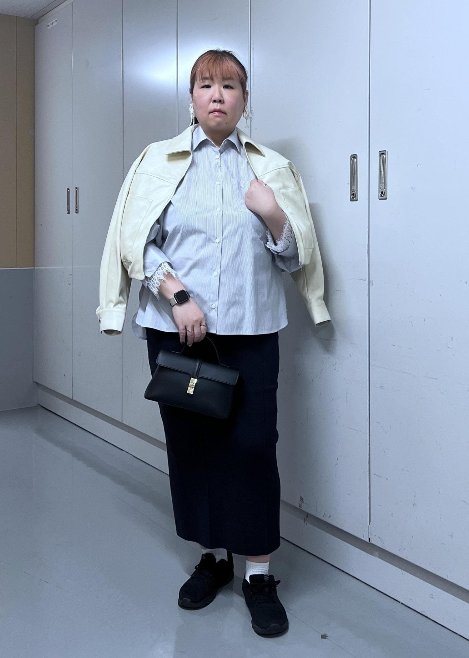 サイズ感はゆったりしていて、厚手のインナーでも着膨れしないので今の時期から着れます。 -