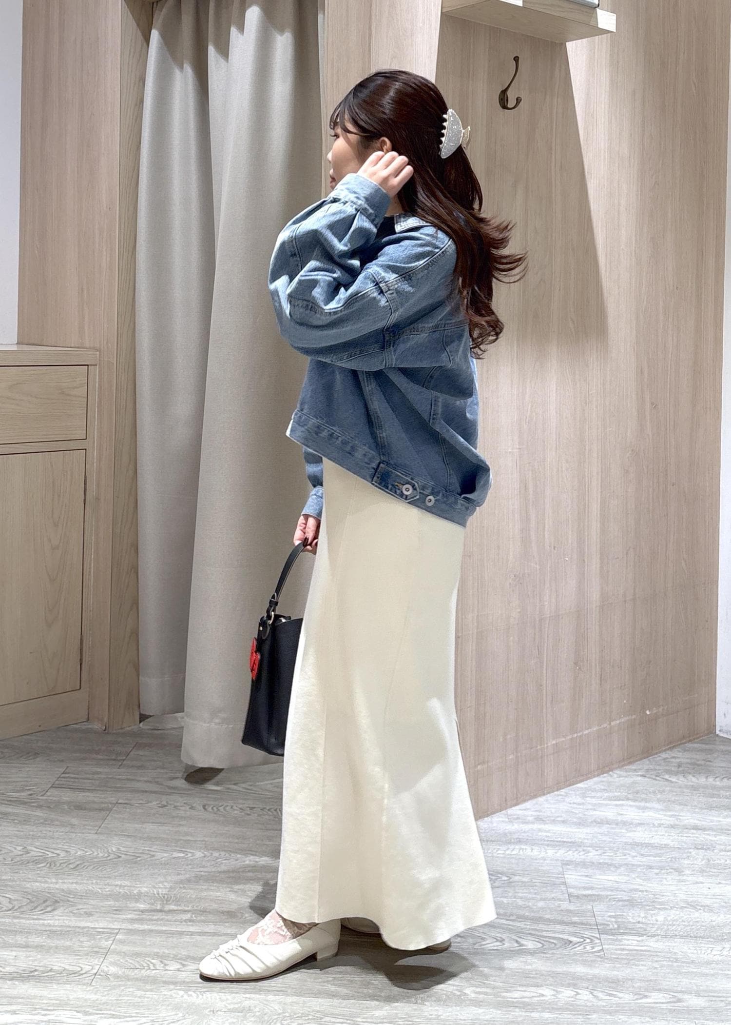 大きめシルエットで丈は腰が隠れるくらいの長さです。